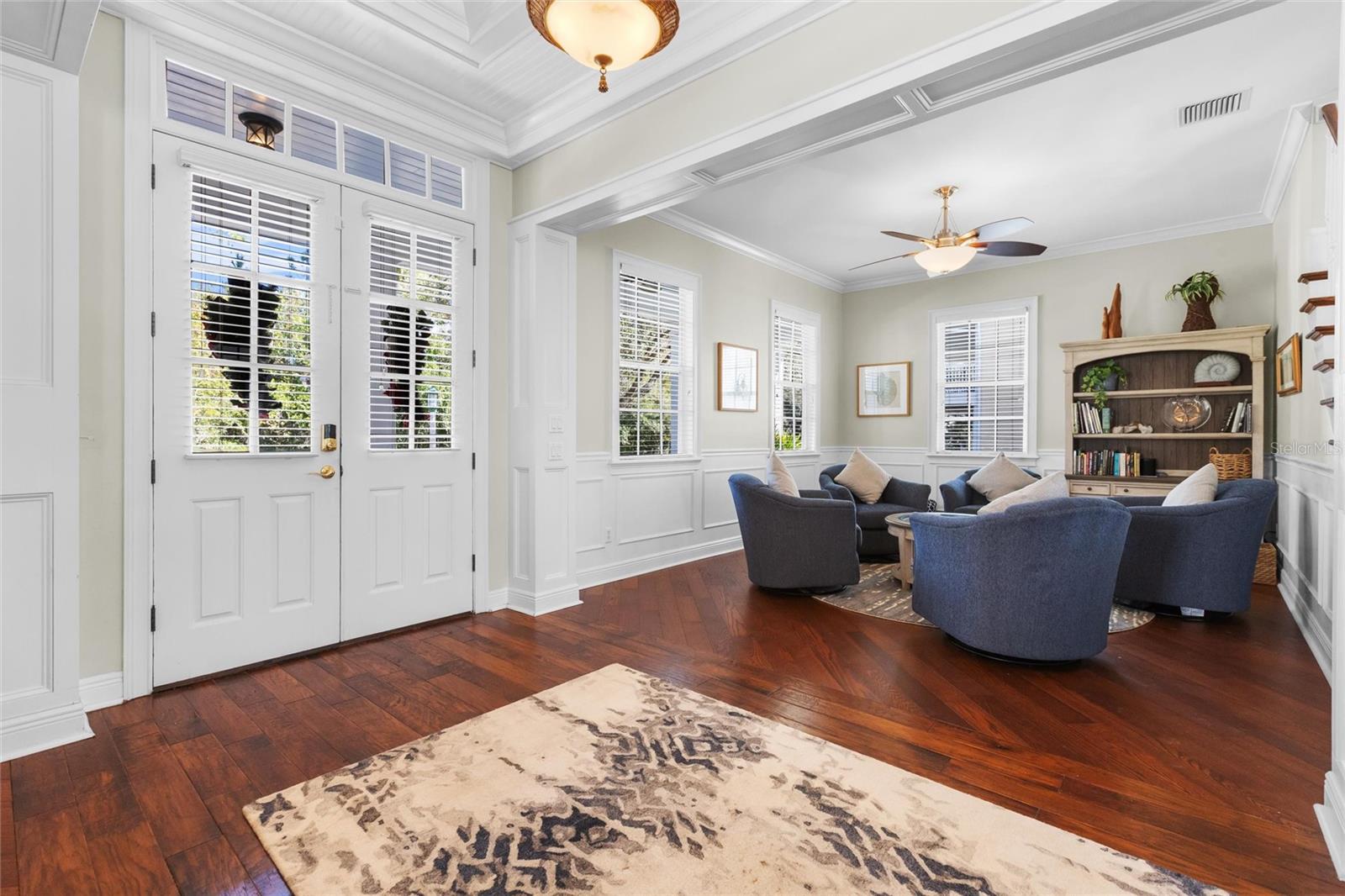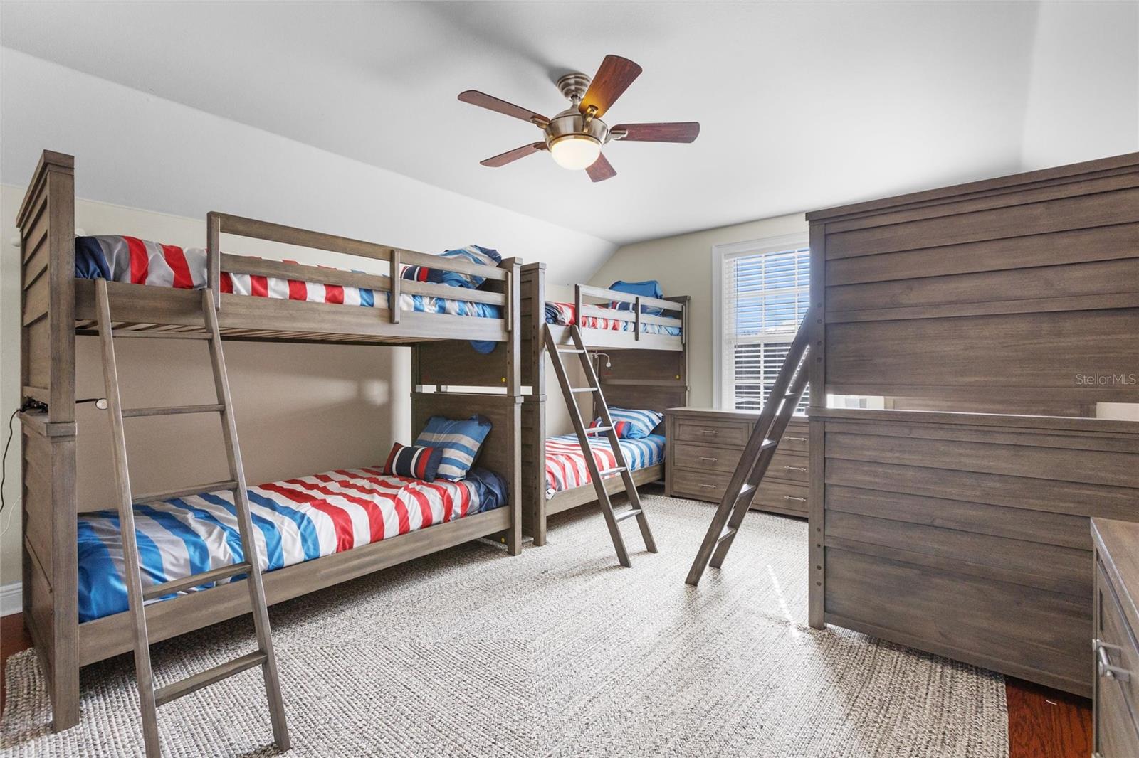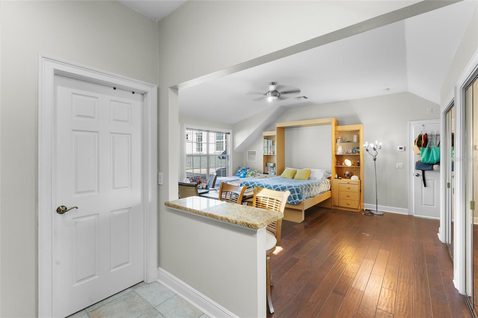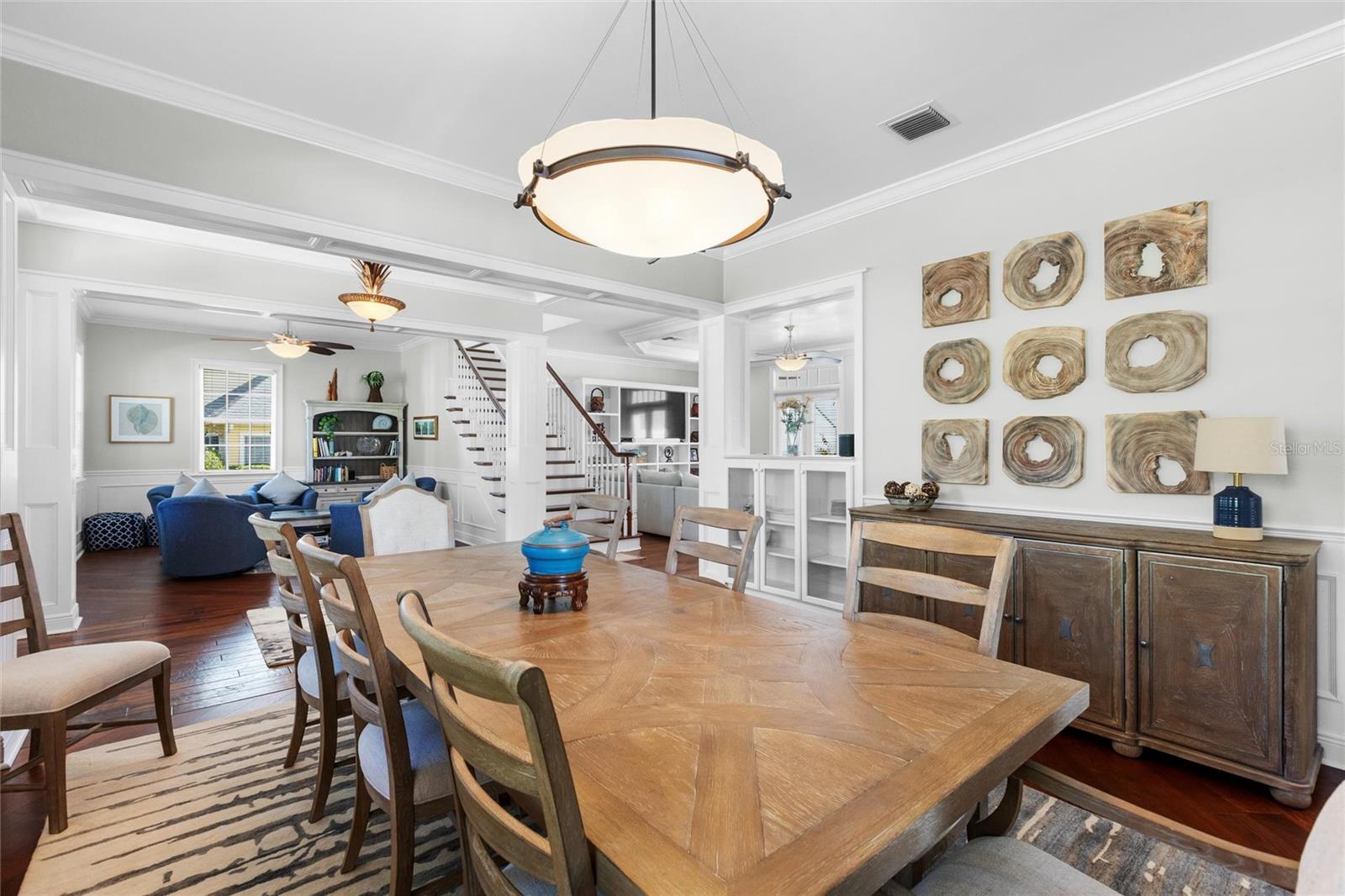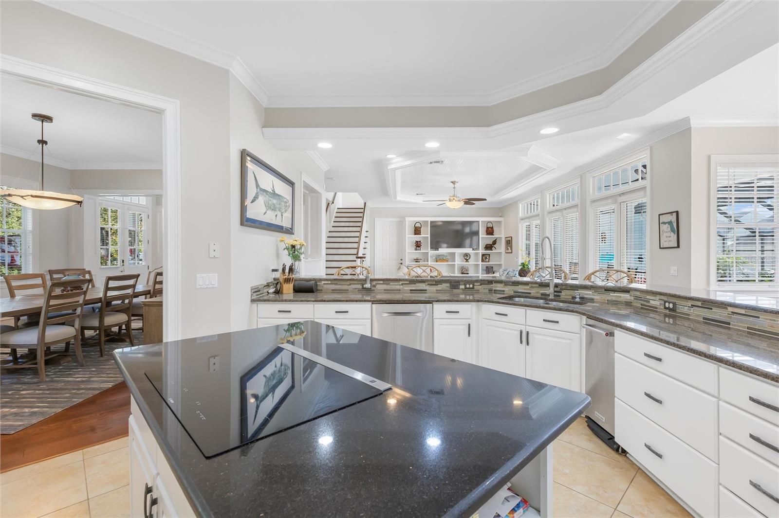 This custom-designed Estate coastal-style home, nestled in the heart of Celebration, Florida is located on one of the most coveted Main Village streets - just steps away from downtown restaurants & shops, and mere minutes from Walt Disney World. This exquisite 5-bedroom, 5.5-bathroom home offers over 5,000 square feet of living space and an array of recent enhancements including: two New Water Heaters (2024), Whole-home Water Softener system, Resurfaced Pool, an Outdoor Kitchen with stunning stone bar, grill, and mini-fridge — perfect for entertaining family and friends. ** BE SURE TO REVIEW THE 3D FLOOR PLAN - INTERACTIVE VISUAL TOUR ** The massive wrap-around Flagstone Porch faces lush conservation with a canopy of Mature Trees on a quiet street. Inside, the open floor plan showcases non-textured painted interiors and gleaming Wood Floors. The bright Chef’s Kitchen is a dream, featuring many new high-end appliances including a double refrigerator, oven (KitchenAid), cooktop and dishwasher (Bosch). Expansive wrap-around bar seating seamlessly connects the kitchen to the family room and eat-in area - with custom built-ins, a Gas Mini-Fireplace and picturesque views of the sparkling south-facing pool. The first-floor Primary Suite is your private retreat just off the family room, offering a sitting area, spa-like bathroom with its six-jet massage and rain shower, Two Walk-in Closets and a convenient stackable washer and dryer. Step directly from your suite to the screened patio and pool area for ultimate relaxation. Upstairs, three spacious bedrooms include a Second Primary Suite with a luxurious bath, and two bedrooms sharing a Jack-and-Jill bathroom. A versatile loft area at the top of the main staircase completes the second floor - perfect for relaxing or gaming. This property also features TWO OVERSIZED GARAGES with built-in shelving, accommodating up to FOUR VEHICLES. Above one garage is a bonus room with wood floors - perfect for an office, media room, or an additional bedroom. Above the other garage sits a studio apartment with private entrances from the pool patio or the garage interior, with a full kitchen, bathroom and closet space —ideal for guests or rental income. The backyard is a true oasis, boasting a Resurfaced Heated pool - with Waterfall and Spa - surrounded by lush landscaping, and an expansive patio with a newly added Outdoor Kitchen and Bar for al fresco dining.
