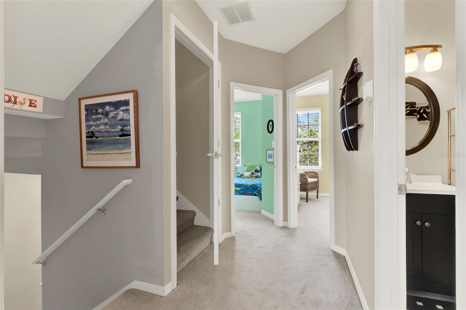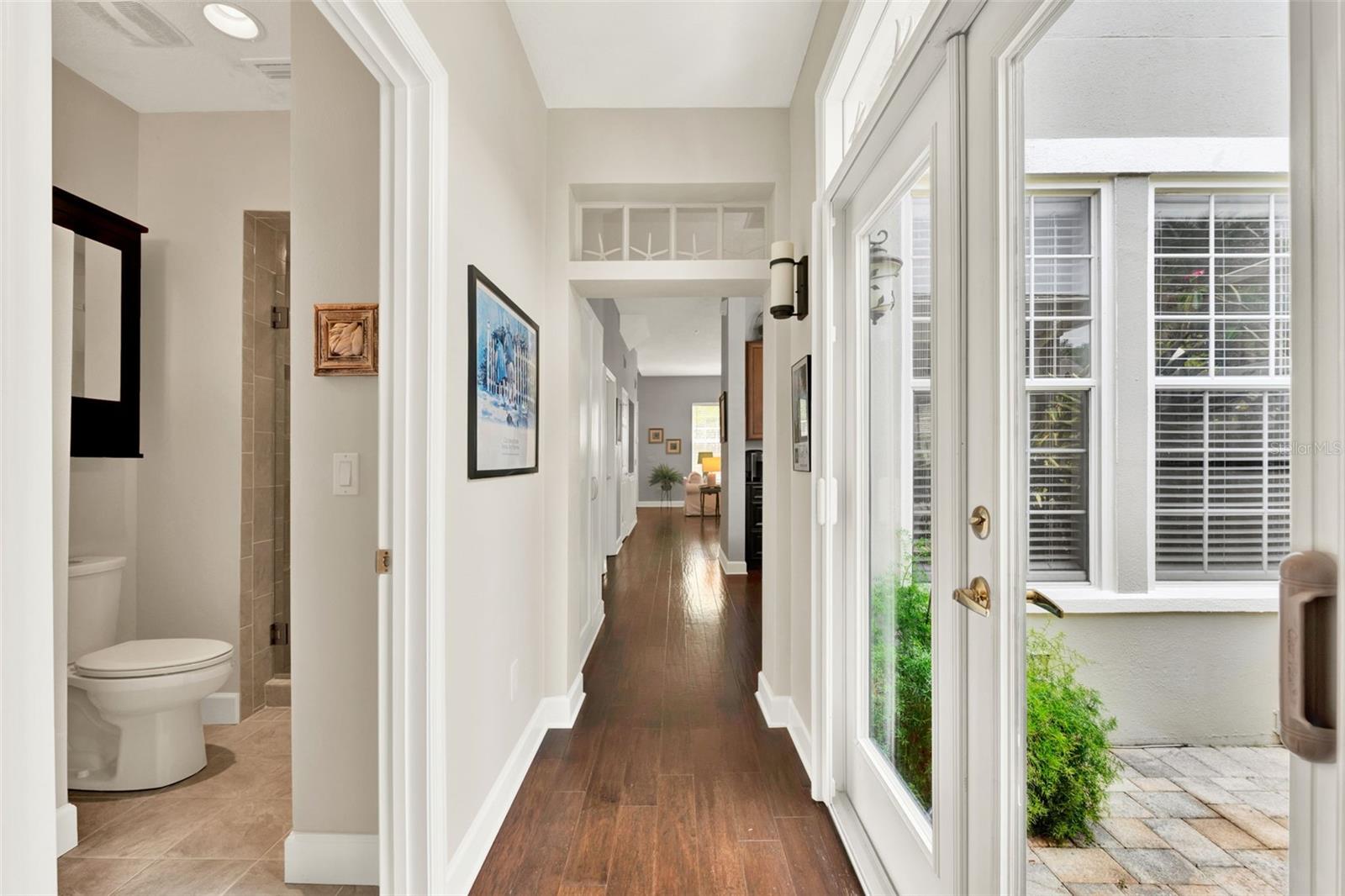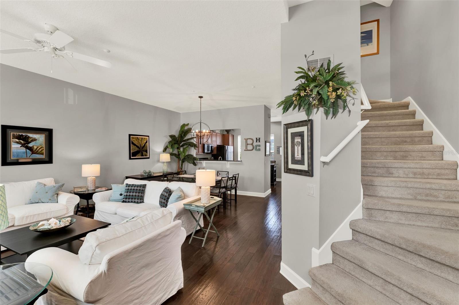 Hang on to your hats!!!! This home is absolutely STUNNING, and you would be lucky to live in this amazing home!! You can spread out comfortably with Two primary ensuites with walk in closets. For extra connivence there is a primary ensuite on the first floor and the second primary ensuite is on the second floor along with two other bedrooms. Third floor has an extra-large ensuite. Along with all these bedrooms in the main house there is a garage apartment. The kitchen has been updated, and has room for a eat in space. The dining area is a perfect area for entertaining friends or family. Living room space is a cozy comfortable area as you enter the home. First floor has gorgeous engineered hardwood floors, the upper floors are covered in luxurious carpet. Other upgrades, the continuous hot water system which allows you to have hot water almost instantly at all the bathrooms and kitchen. For you comfort there are 3 thermostats one on each floor and thee a/c units. For getting some great Florida sun there is a cute courtyard , great space for reading or relaxing and enjoying the beautiful sunshine. Fenced landscaped back yard with so much color and greenery and big enough for a outdoor grill and table to enjoy the outside. The two-car garage boasts a garage apartment as well.