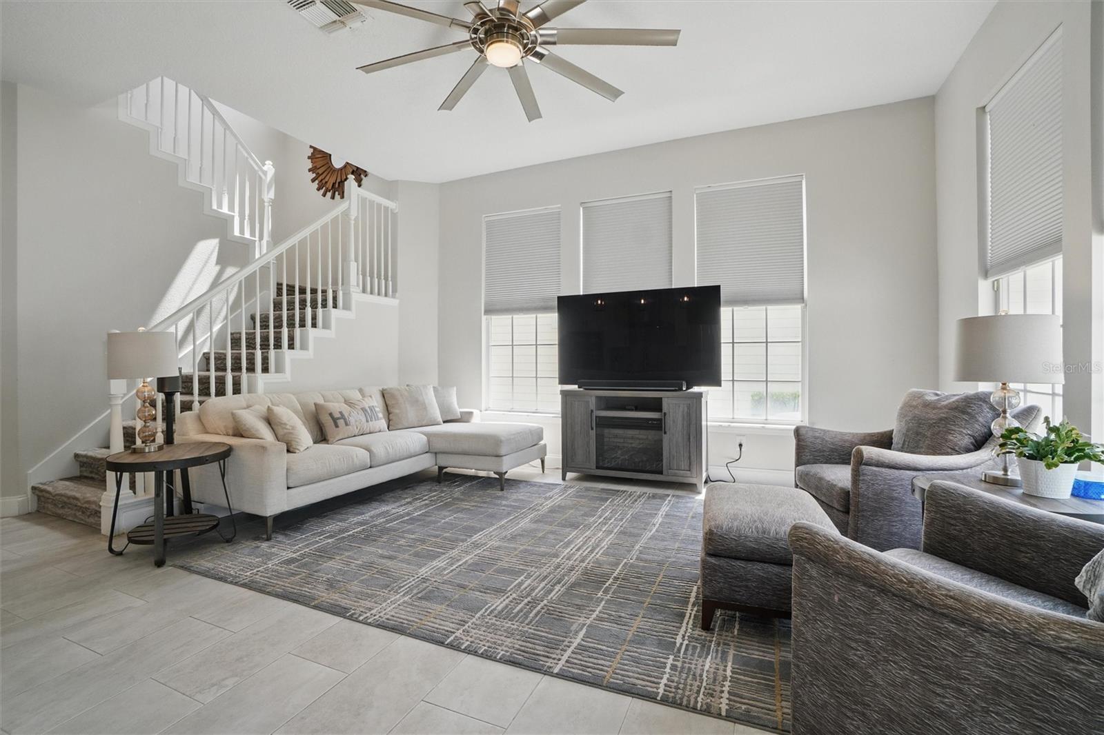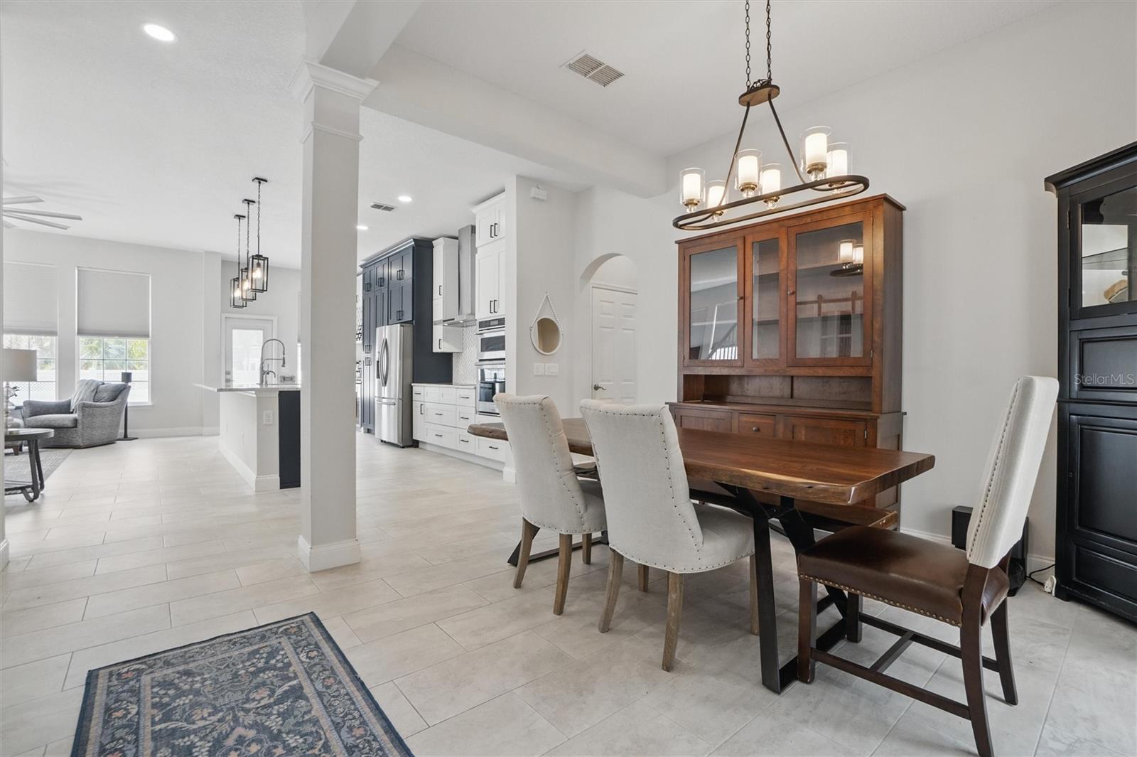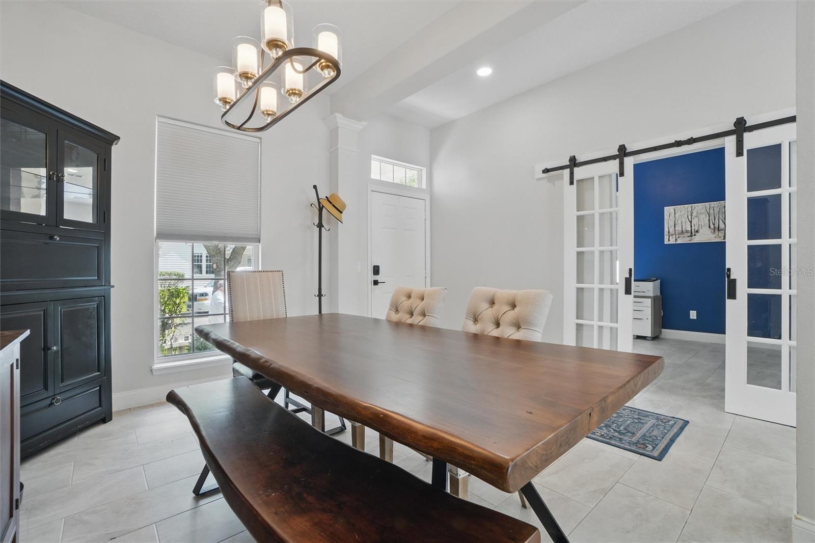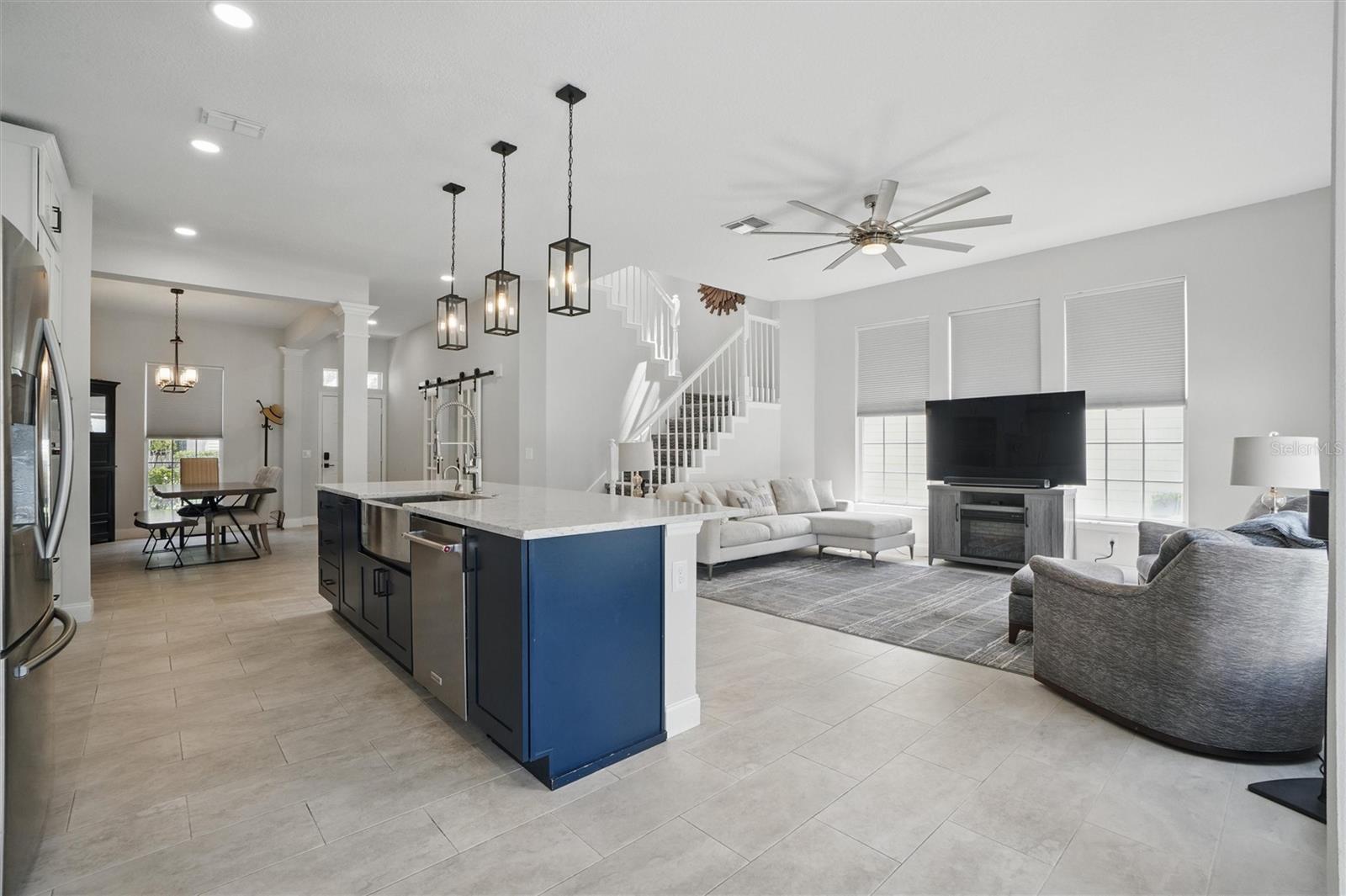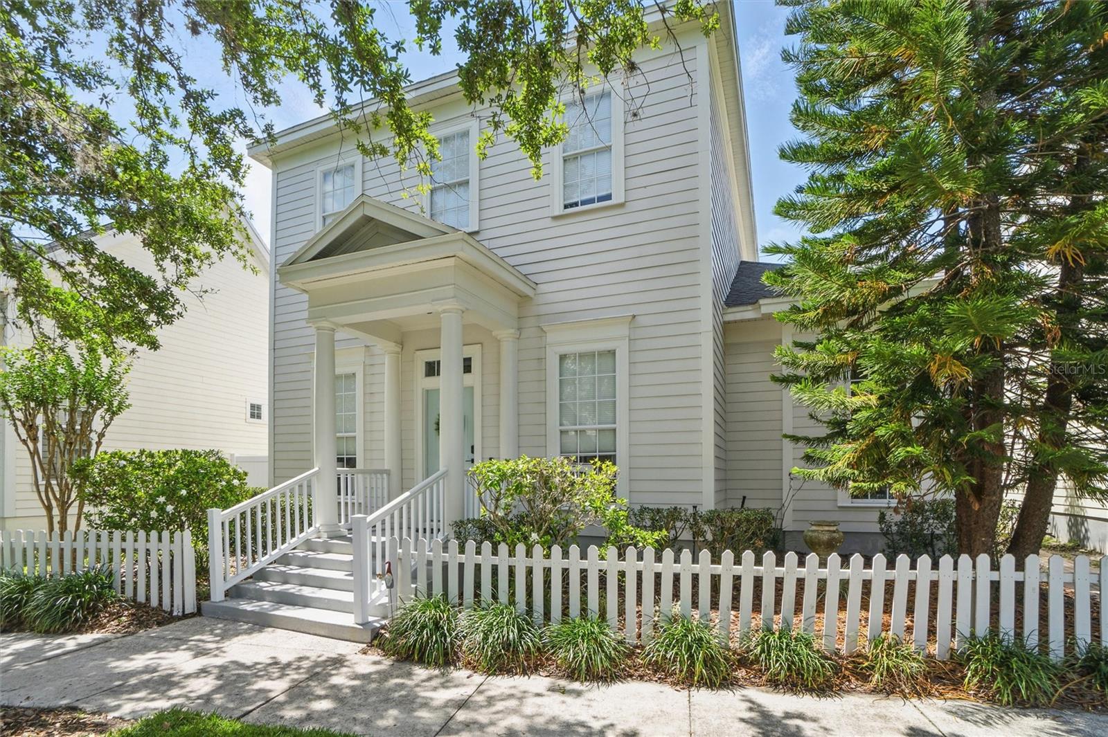 This beautifully Remodeled 3-4 Bedroom Home with standout Design Features, is located on a quiet Street, just around the corner from Celebration's North Village Arboretum and Preservation. The Open Floor Plan provides copious natural light. The FIRST FLOOR FEATURES: Handsome Barn Doors lead to a Large HOME OFFICE with rolling library ladder to access the floor-to-ceiling built-in Bookshelves - it can also be used as a first floor bedroom, The DINING AREA is to the right [approx. 12'x9'], a CUSTOM Expanded KITCHEN that has a Center Island of gleaming light Granite and with seating for casual dining, amazing floor -to-ceiling storage cabinets with soft close drawers, pullout shelving, an oversized Stainless Sink with Instant Hot Water dispenser, a Five Burner Bosch 36" INDUCTION cooktop, a full Stainless Steel Range Hood, a backsplash of custom herringbone subway tiles, statement Pendant Lighting, a double door Beverage Refrigerator, KitchenAid double convection oven, microwave and Dishwasher. and a built-in Wine Rack above a dedicated coffee bar/wine bar area. Adjacent to the Kitchen is The LAUNDRY ROOM with ELFA customizable Organization System, and a custom HALF BATH. THE SECOND LEVEL access is via a stately staircase and features: The PRIMARY BEDROOM and a Modern Bath that features a double vanity, quartz countertops, updated plumbing, XL Glass enclosed walk-in Shower and large Walk in Closet with custom ELFA System. Two additional spacious Bedrooms also feature Container Store ELFA storage and Hanging systems, an additional MULTIPURPOSE ROOM can serve as a Den, Office, Playroom, Exercise Room, or Media Room. The GARAGE includes a GLADIATOR wall-mounted storage and an Organizational System. The Parking Pad offers parking for additional vehicles. The FENCED BACK YARD has more than enough space [see the photos] to use your Imagination - for a POOL, a Playground for outdoor activities, a Garden... it offers Privacy to expand your Outdoor Entertainment! ENERGY EFFICIENT: 2020 ROOF replacement, 2021 AC System with UVC Light for enhanced Purification and 2021 Home Renovations. North Village features a Popular Resident - Only POOL and Recreation Area and two recently refurbished Playgrounds, and a sand VOLLEYBALL court. The Publix Shopping Center and multiple eateries are a 3–5-minute drive away as well as the popular Daycare Center. This home is located near shopping areas, restaurants, and entry to I-4 East and West. Home is Move-in ready to Enjoy!