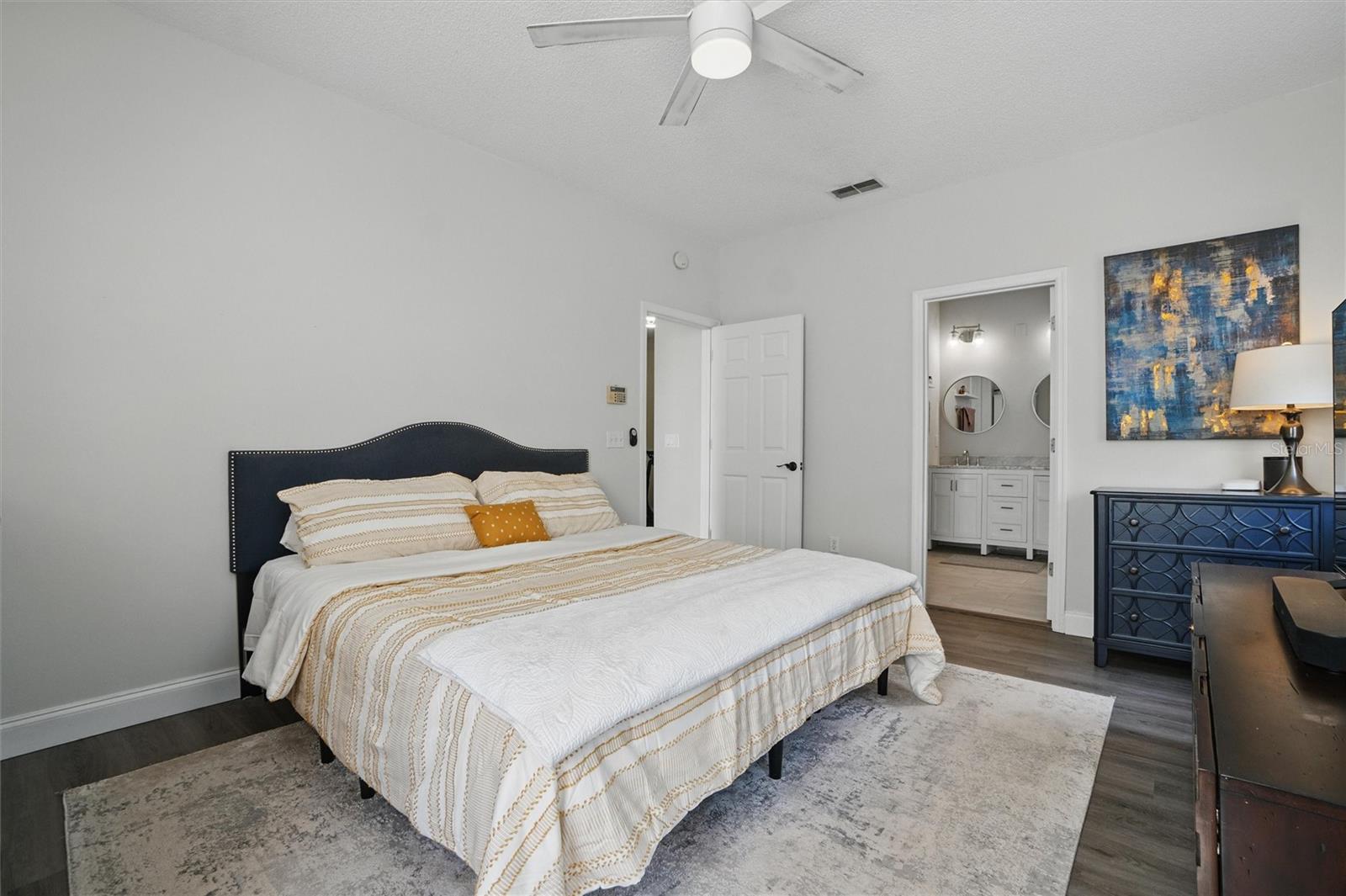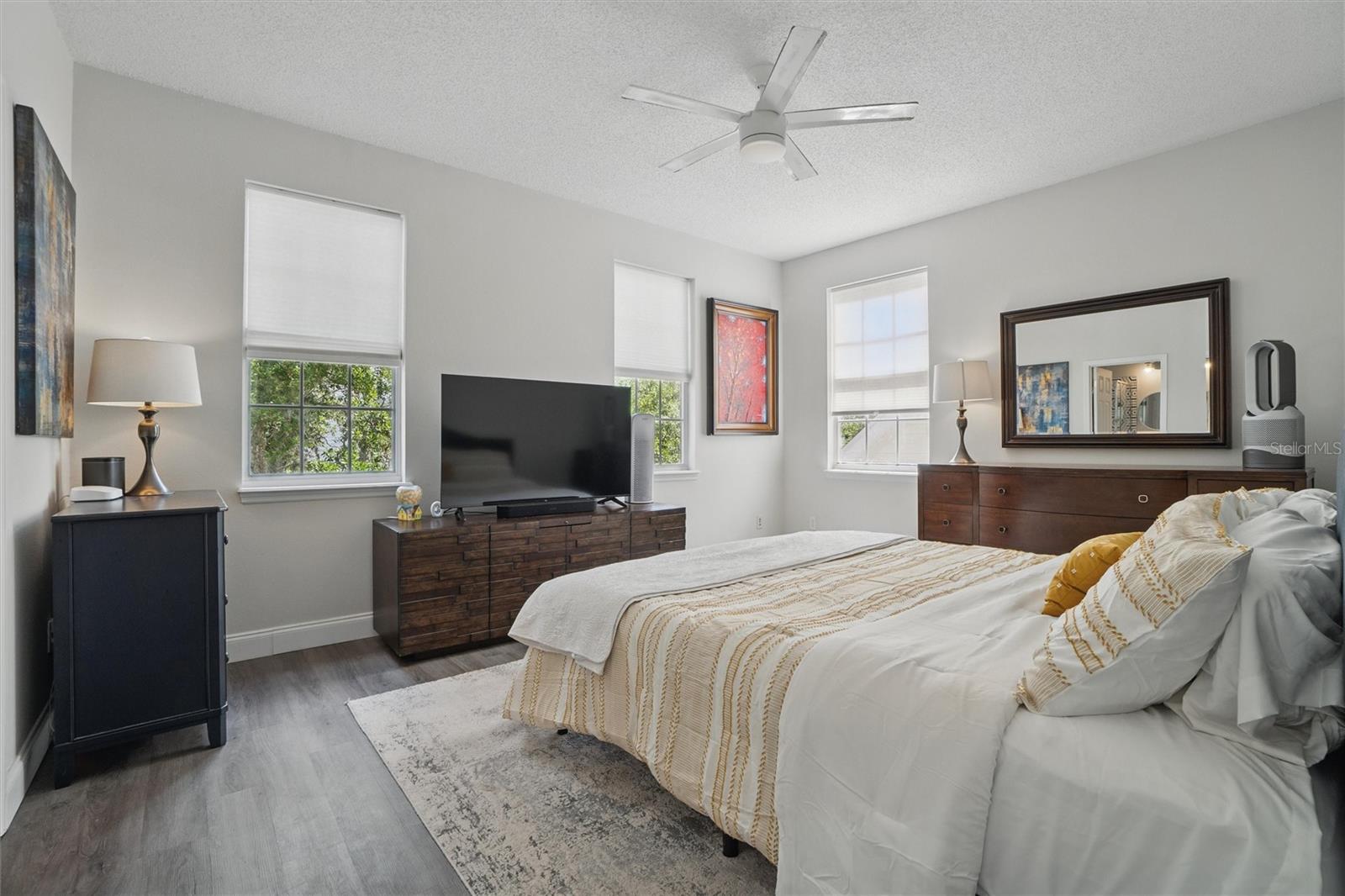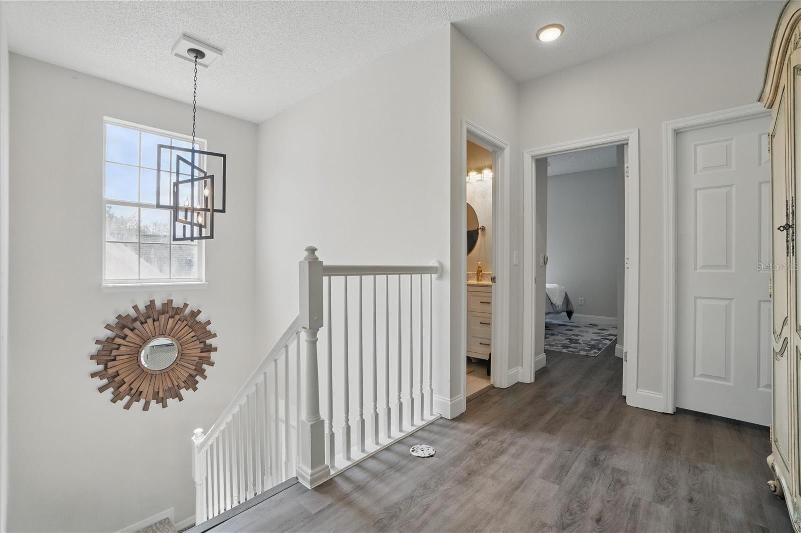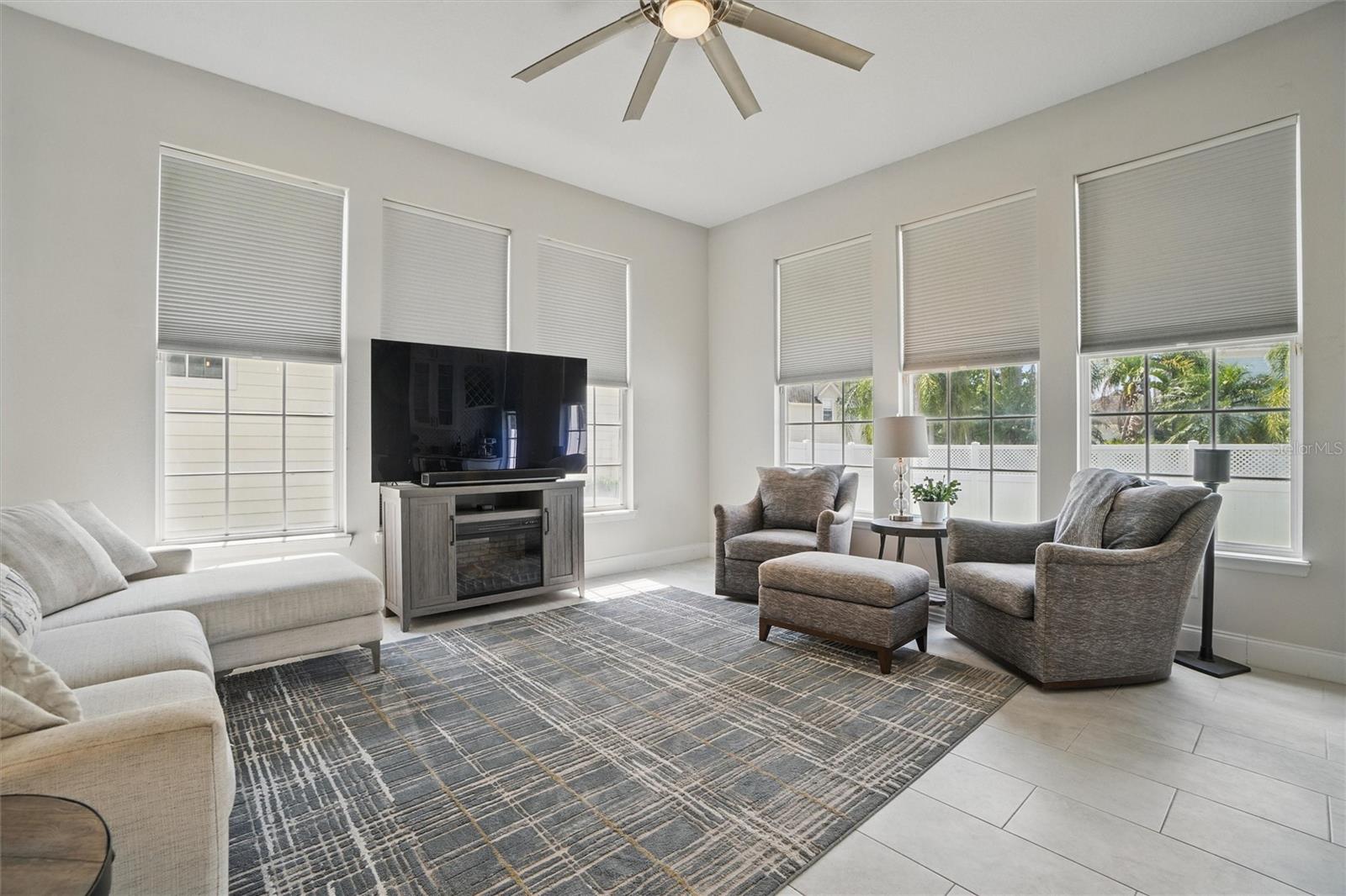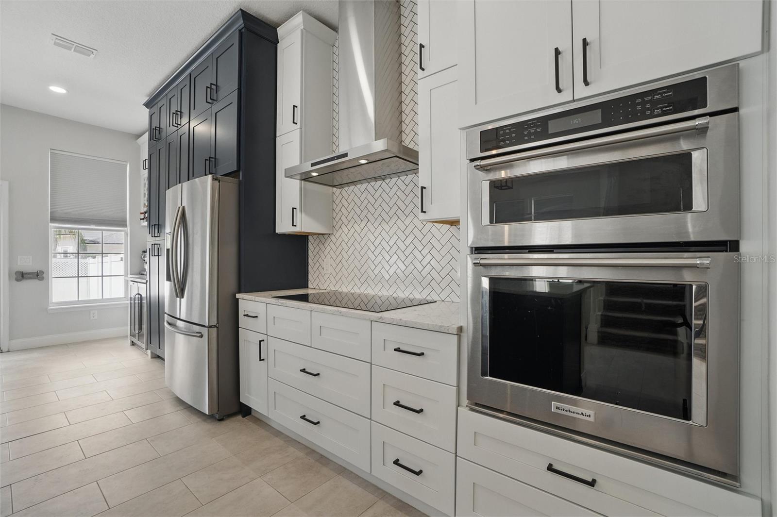 This beautifully Remodeled 3-4 Bedroom Home with standout Design Features, is located on a quiet Street, just around the corner from Celebration's North Village Arboretum and Preservation. The Open Floor Plan provides copious natural light. The FIRST FLOOR FEATURES: Handsome Barn Doors lead to a Large HOME OFFICE with rolling library ladder to access the floor-to-ceiling built-in Bookshelves - it can also be used as a first floor bedroom, The DINING AREA is to the right [approx. 12'x9'], a CUSTOM Expanded KITCHEN that has a Center Island of gleaming light Granite and with seating for casual dining, amazing floor -to-ceiling storage cabinets with soft close drawers, pullout shelving, an oversized Stainless Sink with Instant Hot Water dispenser, a Five Burner Bosch 36" INDUCTION cooktop, a full Stainless Steel Range Hood, a backsplash of custom herringbone subway tiles, statement Pendant Lighting, a double door Beverage Refrigerator, KitchenAid double convection oven, microwave and Dishwasher. and a built-in Wine Rack above a dedicated coffee bar/wine bar area. Adjacent to the Kitchen is The LAUNDRY ROOM with ELFA customizable Organization System, and a custom HALF BATH. THE SECOND LEVEL access is via a stately staircase and features: The PRIMARY BEDROOM and a Modern Bath that features a double vanity, quartz countertops, updated plumbing, XL Glass enclosed walk-in Shower and large Walk in Closet with custom ELFA System. Two additional spacious Bedrooms also feature Container Store ELFA storage and Hanging systems, an additional MULTIPURPOSE ROOM can serve as a Den, Office, Playroom, Exercise Room, or Media Room. The GARAGE includes a GLADIATOR wall-mounted storage and an Organizational System. The Parking Pad offers parking for additional vehicles. The FENCED BACK YARD has more than enough space [see the photos] to use your Imagination - for a POOL, a Playground for outdoor activities, a Garden... it offers Privacy to expand your Outdoor Entertainment! ENERGY EFFICIENT: 2020 ROOF replacement, 2021 AC System with UVC Light for enhanced Purification and 2021 Home Renovations. North Village features a Popular Resident - Only POOL and Recreation Area and two recently refurbished Playgrounds, and a sand VOLLEYBALL court. The Publix Shopping Center and multiple eateries are a 3–5-minute drive away as well as the popular Daycare Center. This home is located near shopping areas, restaurants, and entry to I-4 East and West. Home is Move-in ready to Enjoy!