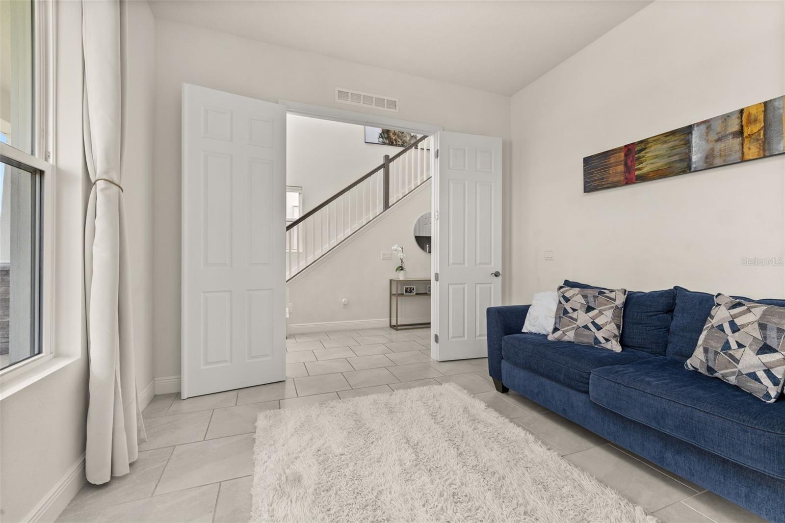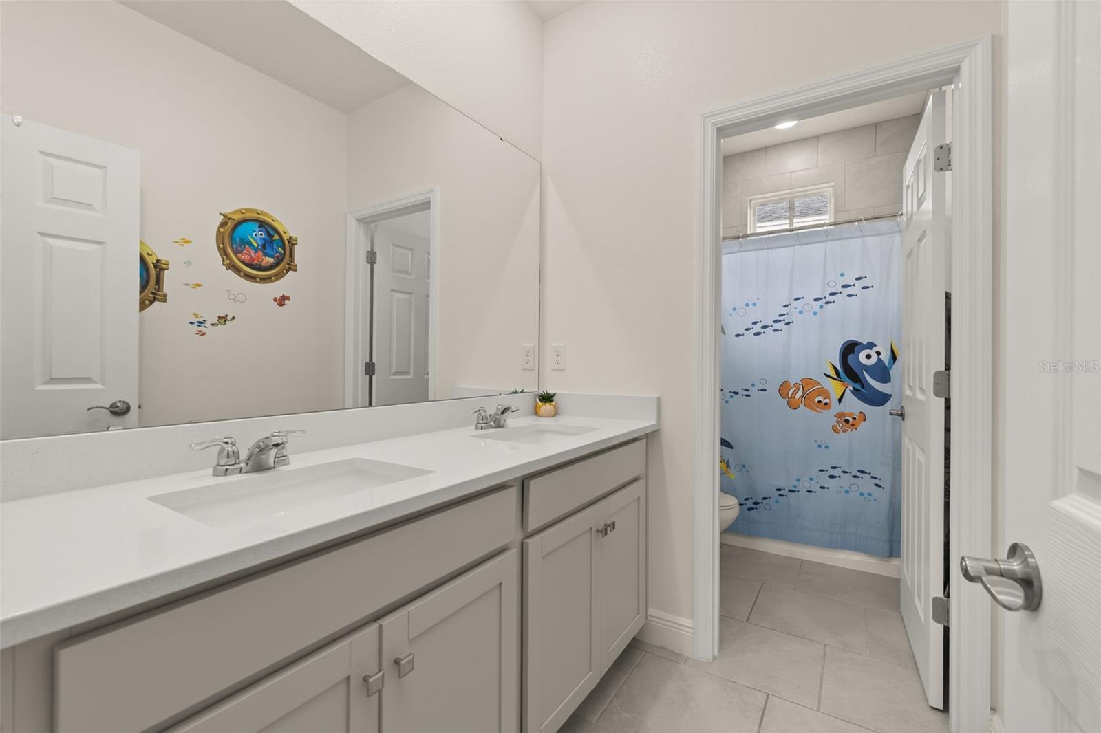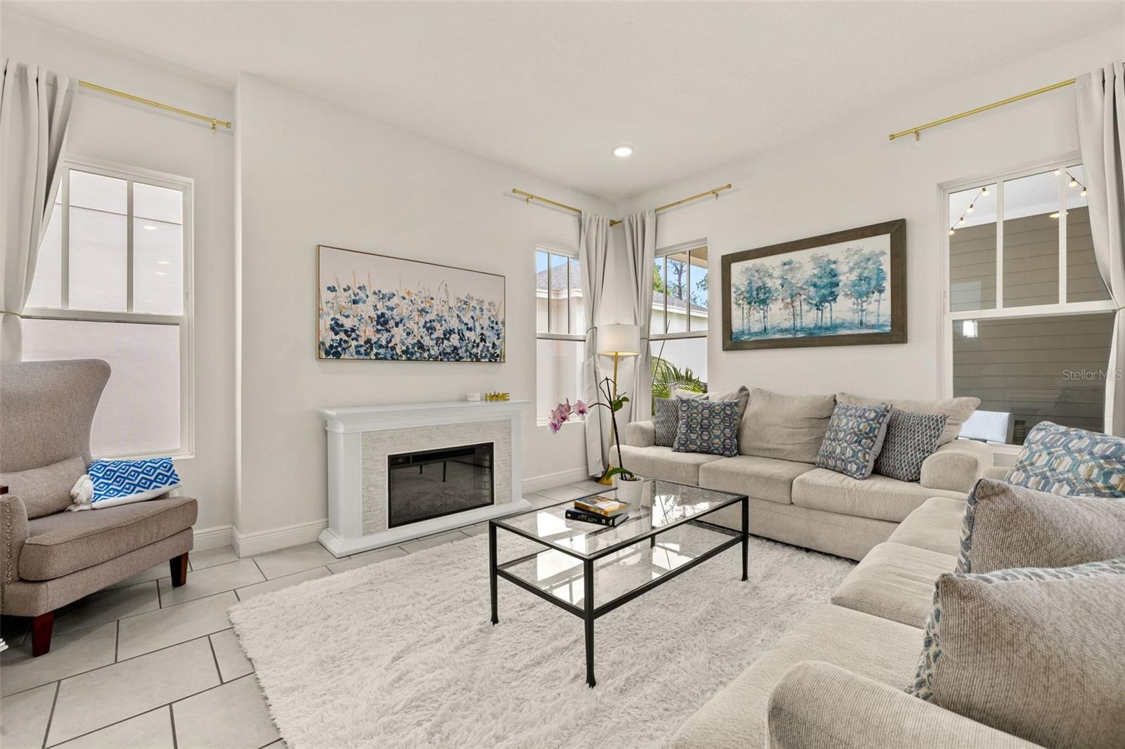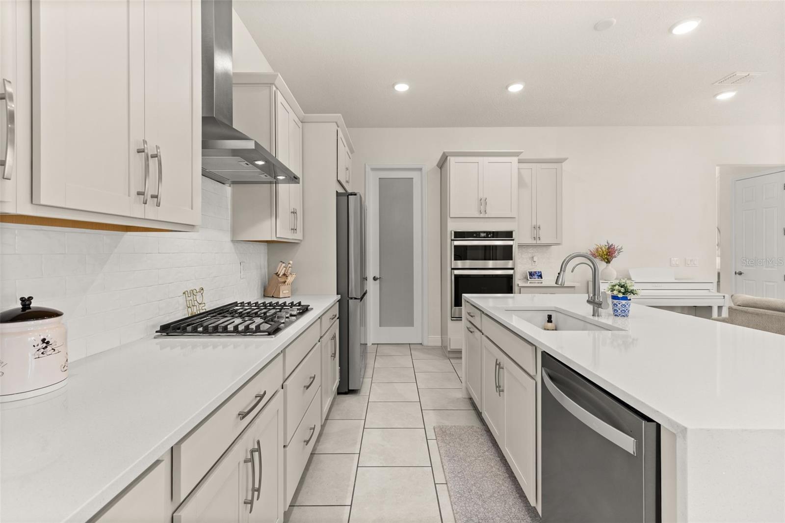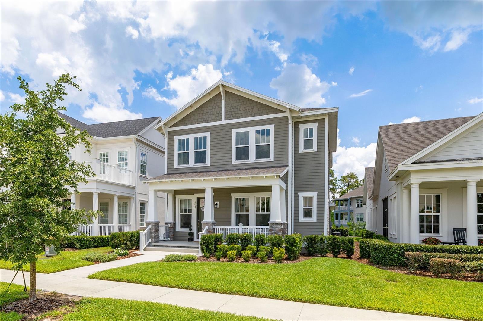 Welcome to an exquisite residence nestled in the heart of Island Village, Celebration. This elegant home offers an open and modern living experience with spacious flex and entertaining areas abound. LOCATED with CONSERVATION behind the property creating the beauty of nature. Step inside to discover a seamless blend of style and functionality. Upon entering the grand two story foyer entryway, one notices 12x12 ceramic tile flooring laid in brickwork vertical offset pattern, 5 inch baseboards, 8 foot high doors, dual pane windows and recessed lighting throughout. Just off the foyer is the first floor Office/5TH BEDROOM with walk in closets, the perfect flex space to suit your needs. Moving towards the heard of the home, one is greeted by the large living area with open floorplan design, plenty of natural light and ease of access to kitchen and outdoor spaces, an entertainers dream. The kitchen features alabaster colored 42 inch cabinets with brushed nickel pulls, pure white quartz counters with waterfall edge finish, blanco wave style subway tile backsplash and a single basin undermount sink with gooseneck faucet and filter tap. The stainless steel double oven, 4 burner gas stove, French door refrigerator and dishwasher complete this chefs paradise. The adjoining dining area and kids zone nook flows effortlessly making it ideal for both entertaining and cozy gatherings. Just off the dining area is the lanai overlooking the oversized side and backyard area, a premium in Celebration. As you head upstairs, the loft area provides a secluded hang out spot for those wanting a little getaway. The primary suite is adorned with tray ceiling with recessed lighting, oversized walk-in closet and primary bath perfected with gentlemen's height dual vanity, brushed nickel pulls, quartz countertops, square cut undermount sinks, dual handle faucets and walk-in shower with tile to the ceiling. Down the hall you'll find the secondary bathroom flanked by bedrooms 2, 3 and 4. The secondary bathroom is also embellished with gentlemen's height dual vanity, brushed nickel pulls, quartz countertops, square cut undermount sinks, dual handle faucets and tub/shower combo. Just one block from Downtown Island Village shops and restaurants, enjoy the community amenities, gym, pool and over 26 miles of Celebration's Nature Trails. This home also provides easy access to all that Celebration has to offer, only 1 mile to the new Shops at Celebration Pointe, 4 miles to Market Street, and less than 15 minutes to Magic Kingdom. This perfect blend of modern elegance and thoughtful design awaits your presence.