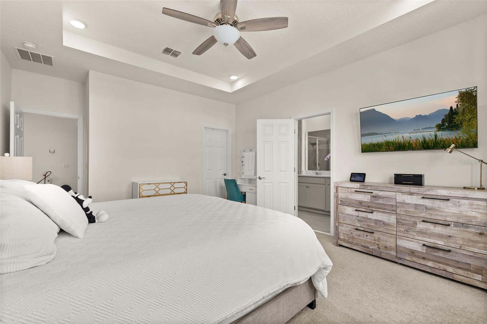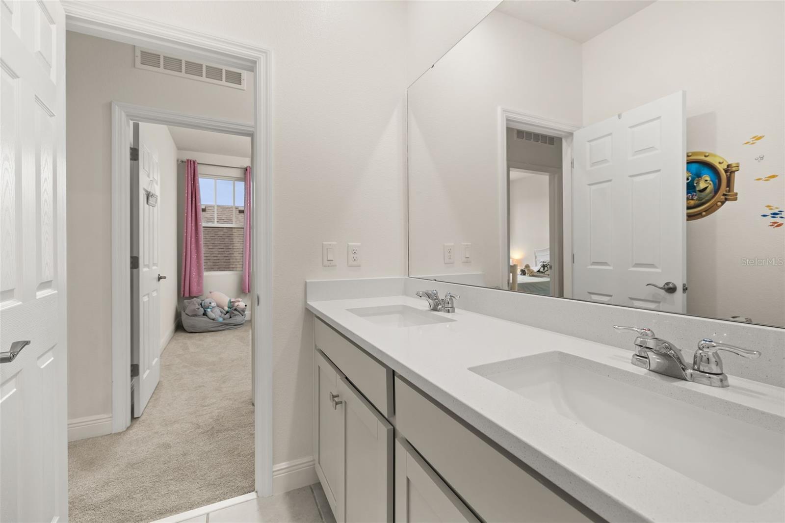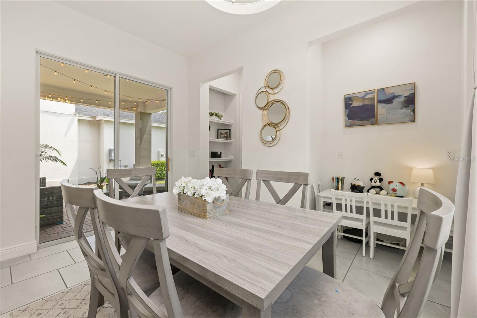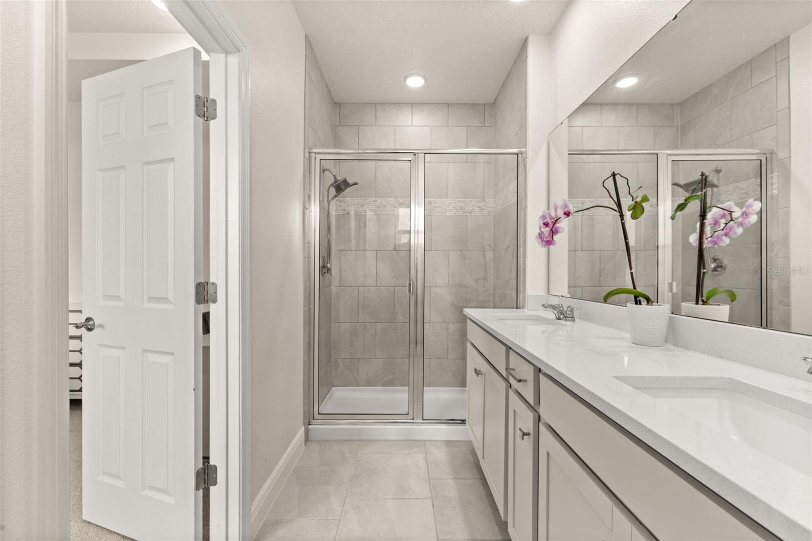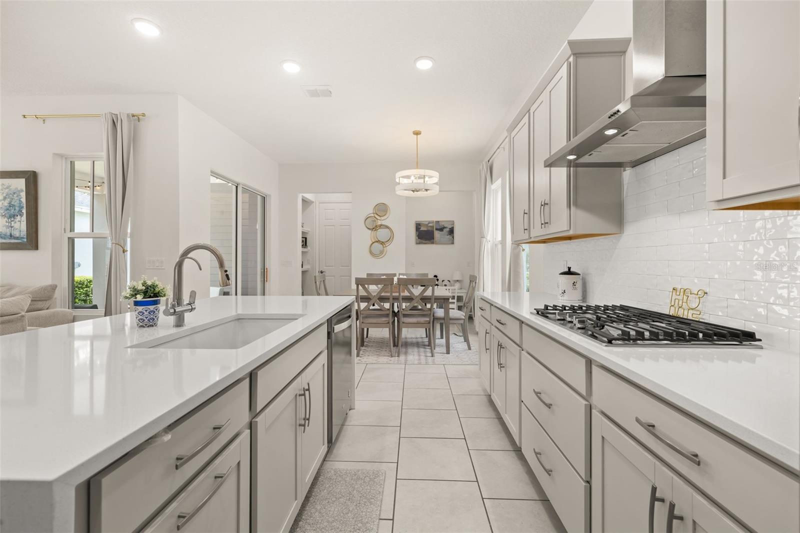 Welcome to an exquisite residence nestled in the heart of Island Village, Celebration. This elegant home offers an open and modern living experience with spacious flex and entertaining areas abound. LOCATED with CONSERVATION behind the property creating the beauty of nature. Step inside to discover a seamless blend of style and functionality. Upon entering the grand two story foyer entryway, one notices 12x12 ceramic tile flooring laid in brickwork vertical offset pattern, 5 inch baseboards, 8 foot high doors, dual pane windows and recessed lighting throughout. Just off the foyer is the first floor Office/5TH BEDROOM with walk in closets, the perfect flex space to suit your needs. Moving towards the heard of the home, one is greeted by the large living area with open floorplan design, plenty of natural light and ease of access to kitchen and outdoor spaces, an entertainers dream. The kitchen features alabaster colored 42 inch cabinets with brushed nickel pulls, pure white quartz counters with waterfall edge finish, blanco wave style subway tile backsplash and a single basin undermount sink with gooseneck faucet and filter tap. The stainless steel double oven, 4 burner gas stove, French door refrigerator and dishwasher complete this chefs paradise. The adjoining dining area and kids zone nook flows effortlessly making it ideal for both entertaining and cozy gatherings. Just off the dining area is the lanai overlooking the oversized side and backyard area, a premium in Celebration. As you head upstairs, the loft area provides a secluded hang out spot for those wanting a little getaway. The primary suite is adorned with tray ceiling with recessed lighting, oversized walk-in closet and primary bath perfected with gentlemen's height dual vanity, brushed nickel pulls, quartz countertops, square cut undermount sinks, dual handle faucets and walk-in shower with tile to the ceiling. Down the hall you'll find the secondary bathroom flanked by bedrooms 2, 3 and 4. The secondary bathroom is also embellished with gentlemen's height dual vanity, brushed nickel pulls, quartz countertops, square cut undermount sinks, dual handle faucets and tub/shower combo. Just one block from Downtown Island Village shops and restaurants, enjoy the community amenities, gym, pool and over 26 miles of Celebration's Nature Trails. This home also provides easy access to all that Celebration has to offer, only 1 mile to the new Shops at Celebration Pointe, 4 miles to Market Street, and less than 15 minutes to Magic Kingdom. This perfect blend of modern elegance and thoughtful design awaits your presence.