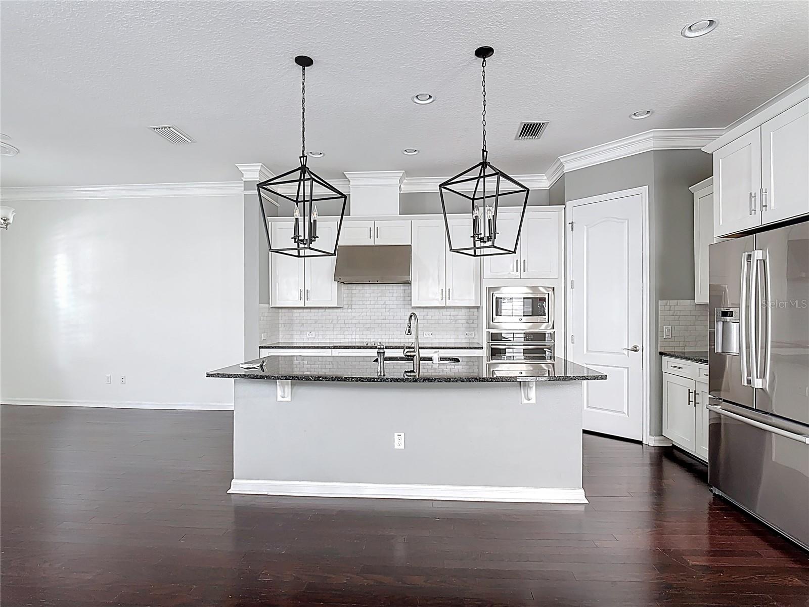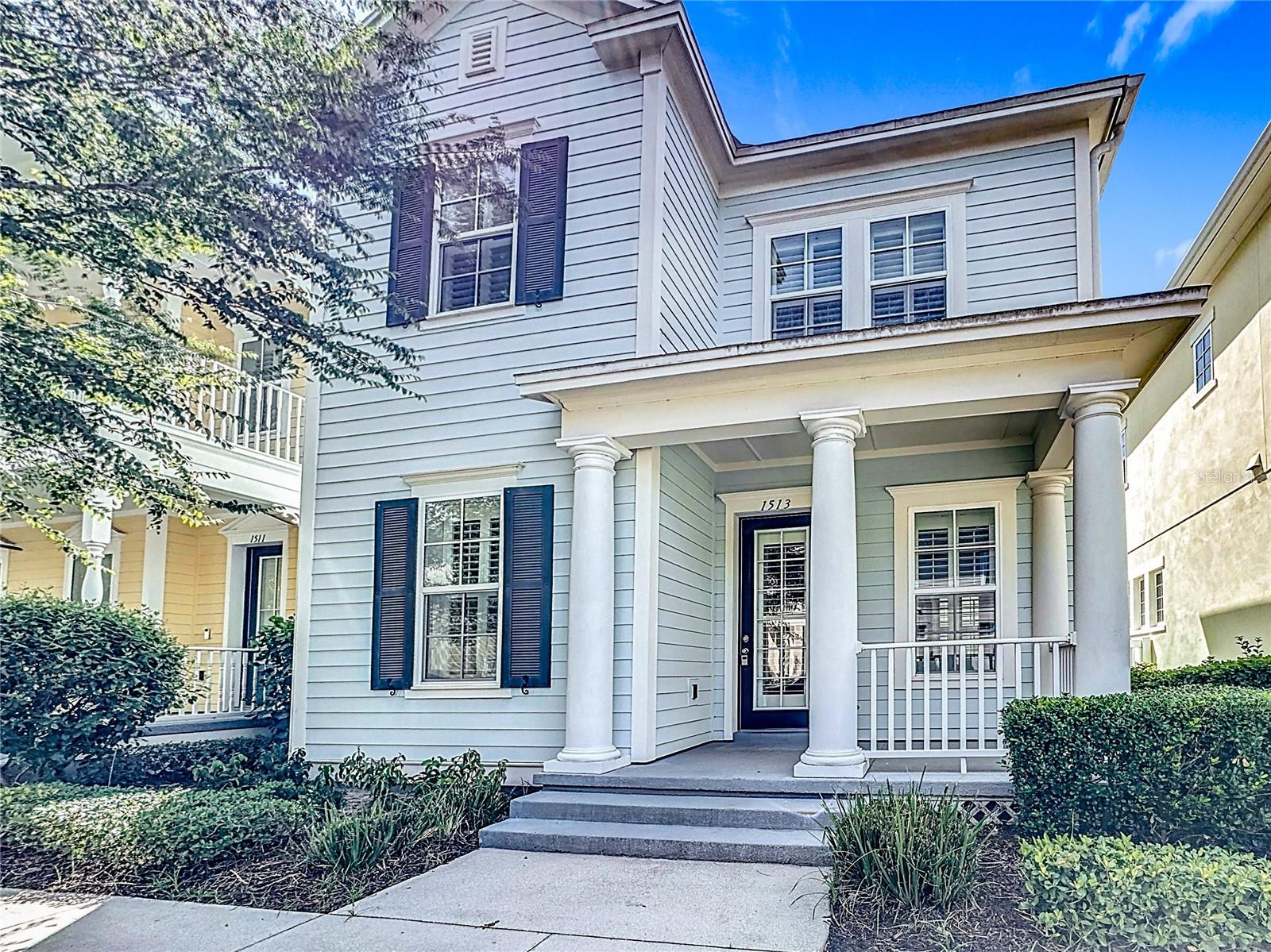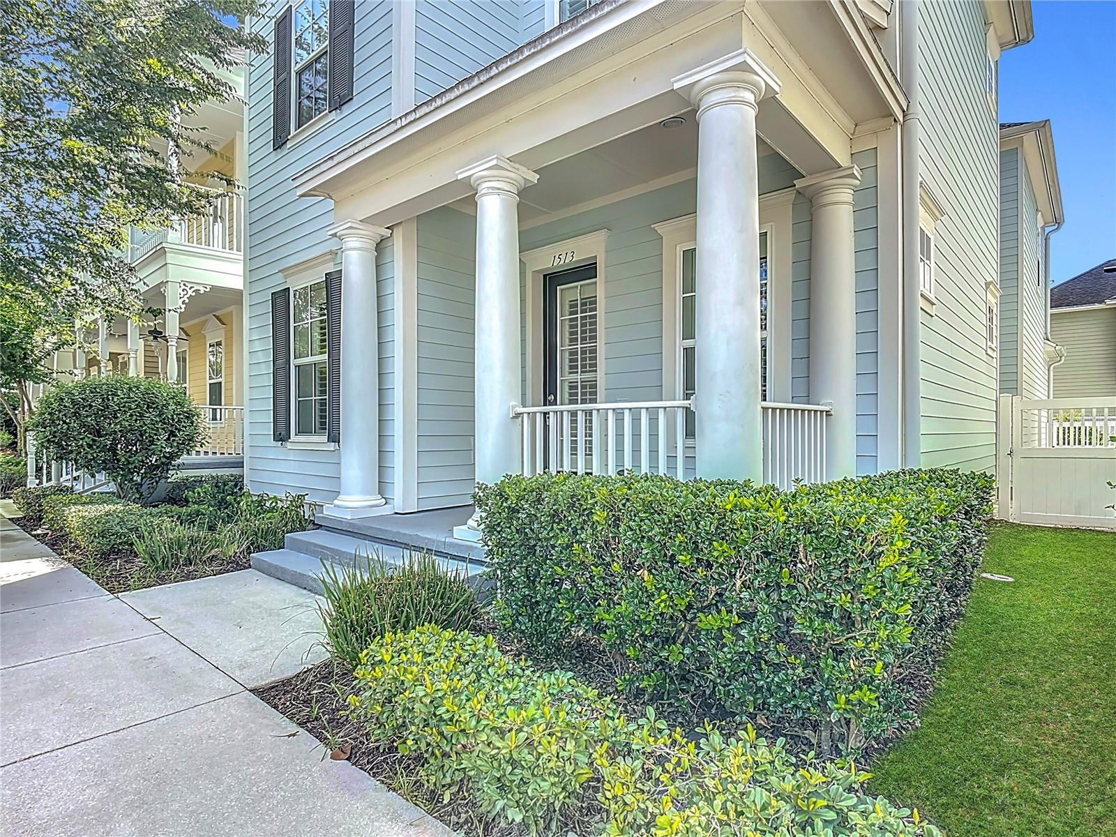Welcome to this amazing, coastal-style home located in CELEBRATION! three-bedrooms and two and one half bathrooms, greeting you with a graceful front porch highlighted by architectural columns. Upon entry, you step into an open floor plan with thoughtful details throughout. The kitchen features 42” cabinets, granite countertops, a stainless steel built-in oven, microwave, cooktop with stainless steel vent hood, bright tile back splash, upgraded lighting. There is seating space around the large kitchen island, with the dining room conveniently located right off of the kitchen. An ingenious closet finished with an organization system acts as a drop zone, with a half bathroom also located on the first floor. The second floor has a versatile loft space that can be used as a sitting room, a play area, an office, etc. The laundry room has custom built cabinets around the washer and dryer for storage, along with a folding area. The spacious primary suite has a tray ceiling, crown molding and ceiling fan. The primary bathroom has a soaking tub, separate shower and dual sinks with gorgeous quartz counters. The primary closet has a full California closet system installed and even has a window letting in natural light. The second and third bedrooms each have private access to a shared bathroom. All carpets are brand new, and there are plantation shutters throughout the home. The two-car garage features a tall ceiling, storage space, and a Tesla Car Charger. In addition to all this, the Spring Park amenity area features a swimming pool, fitness center and gathering space only a block away!