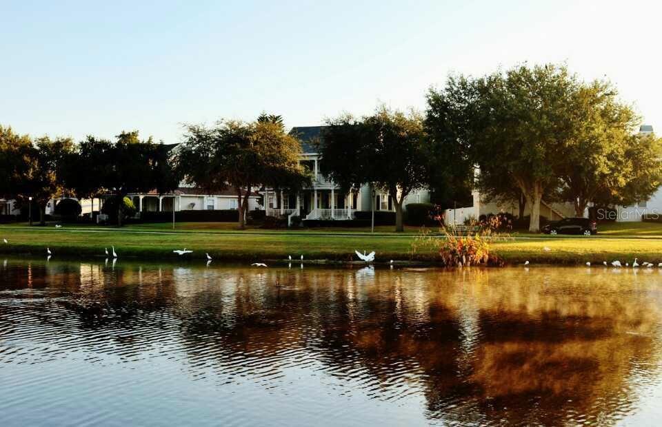 LOCATION!!! One of the best opportunities to buy a charming Golf front and Pond view home in West Village! (Please note that some photos are virtually staged!) This amazing single family home features 4 bedrooms and 3.5 baths, 2 car detached garage! Both floors have a beautiful, spacious balcony! It offers a spacious master suite on 1st floor! Wonderful floor plan with plenty of space to relax. Office/Den and formal dining area in front rooms. 3 Guest rooms upstairs w/french doors open to a front porch. Light and bright kitchen opens to family room with a beautiful fireplace. Sit and enjoy the amazing views and sunsets on your double porches. Walking distance to school, parks and downtown shops. This exquisite home is located on a beautiful tree lined street overlooking Celebration's Premier Golf Course. Very private and plenty of room for a pool! You'll love this fantastic David Weekley's Treemont floorplan-one of the Celebration's most popular floorplan! A retreat area is located upstairs for extra space. Lots of windows. Vaulted Ceilings. 2 car detached garage with an accomodating driveway for plenty of parking. Great home for entertaining. This home is beautiful and ready for you and your family. Schedule your showing today! Please click Virtual Tour Link to view 3D tour and a video tour.