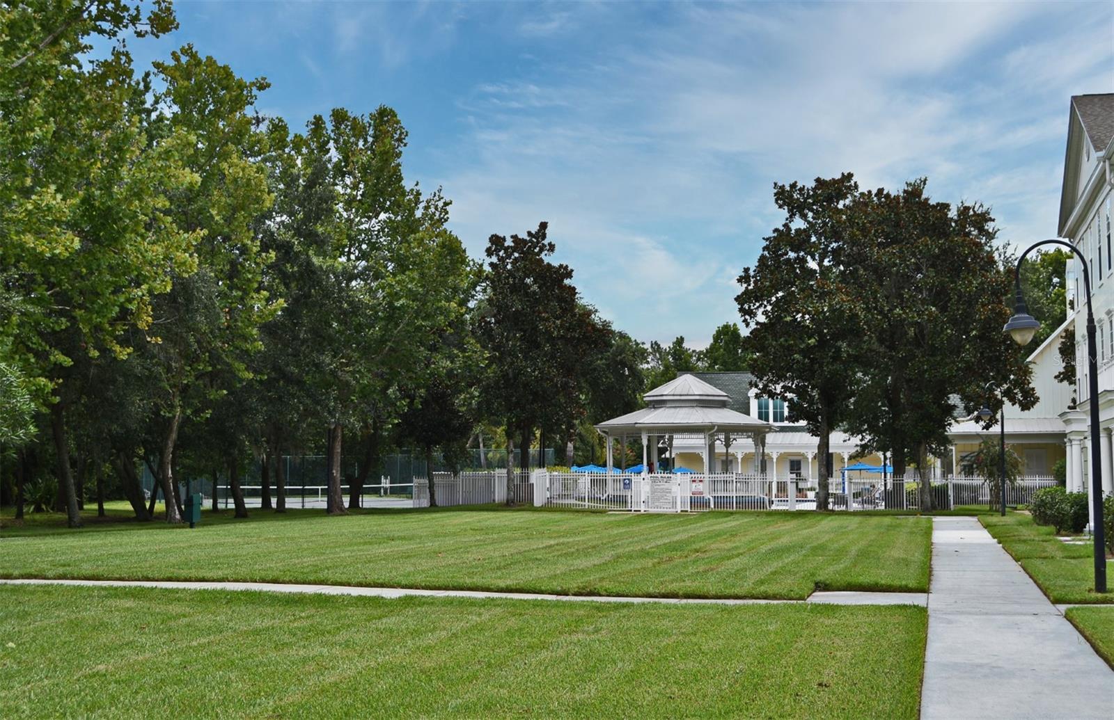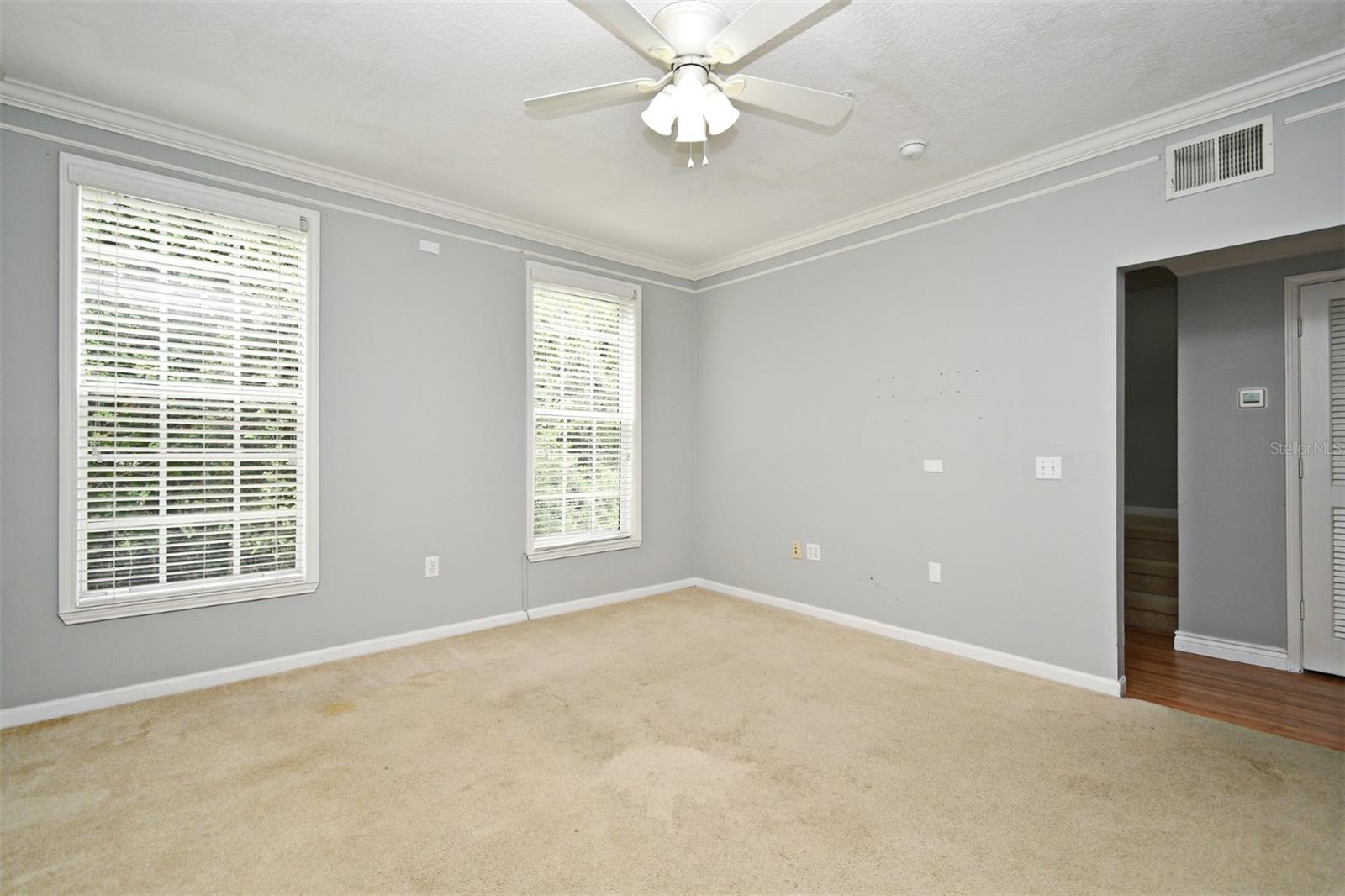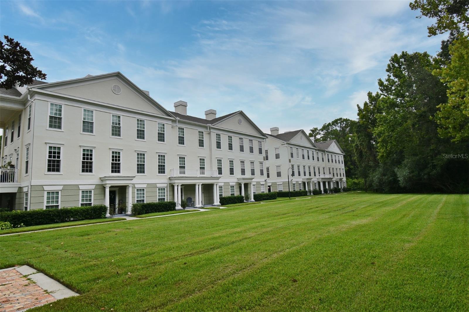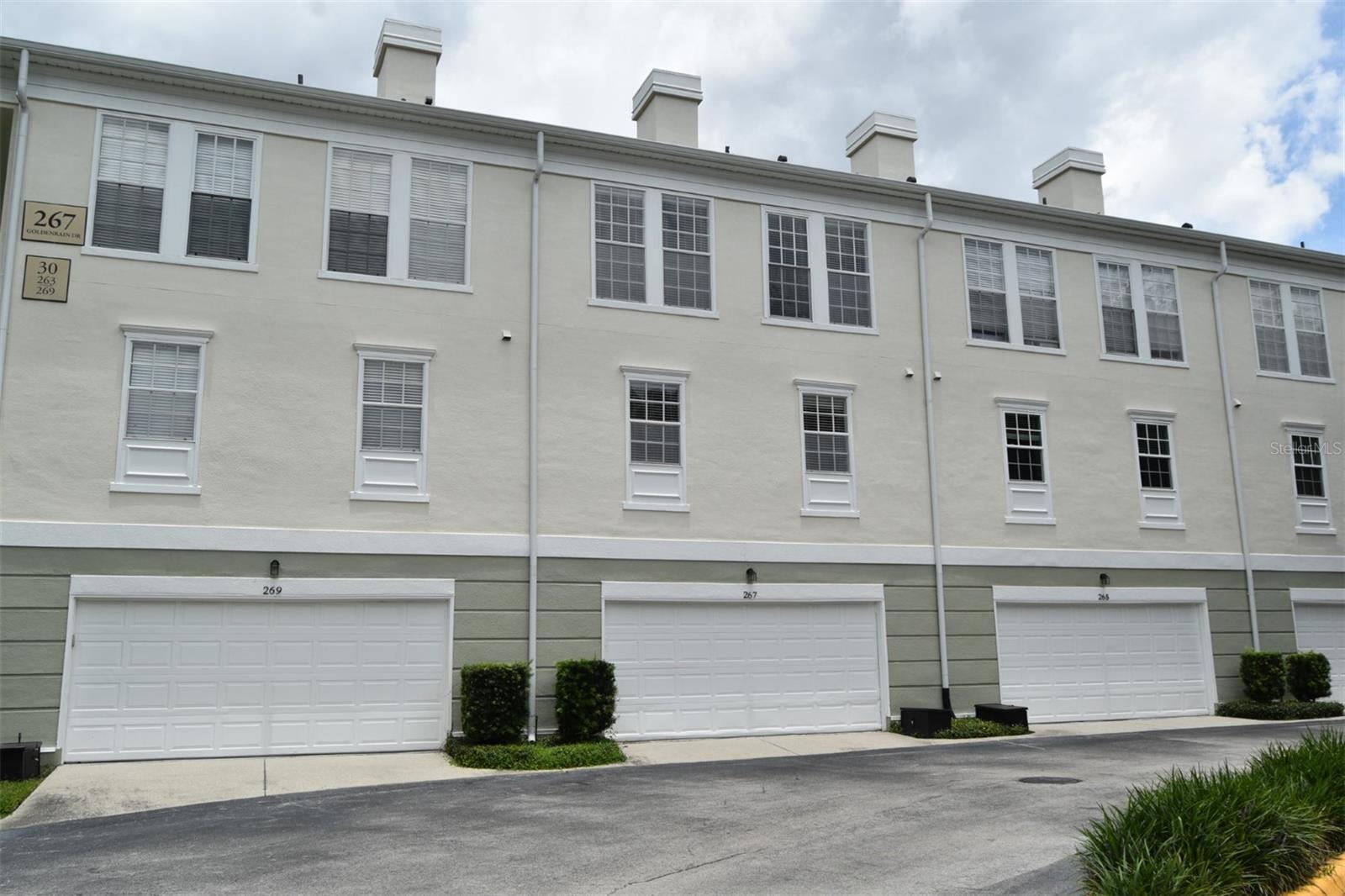 Beautiful townhome-style property nestled in a private setting surrounded by lush greenery. The layout includes common spaces on the second floor, three bedrooms and two full baths on the third floor, and a fourth bedroom or flex space on the ground floor. The front-facing living room, with built-in features, overlooks the conservation area. Down the hall, you'll find a spacious formal dining room with more built-ins and a kitchen featuring granite countertops, ample cabinets, and a generous eat-in nook. Most appliances are less than five years old. This level also includes a convenient half bath. Upstairs, all three bedrooms have walk-in closets. The primary bedroom, also conservation-facing, is generously sized with a tray ceiling and an elegant en-suite bathroom with dual granite-topped vanities, a garden tub, and a separate shower. The home boasts a two-car attached garage, providing extra space and access to the ground level, which features a flex space that can serve as a fourth bedroom, home office, or any versatile room. The roof is less than five years old, with one HVAC unit replaced in 2022 and the other just last year. The property is in an excellent location, steps away from the Georgetown clubhouse with a fitness center, tennis/pickleball courts, and a resort-style pool. It's also a short drive to downtown Celebration with its shops and restaurants, as well as I-4 and SR 417.