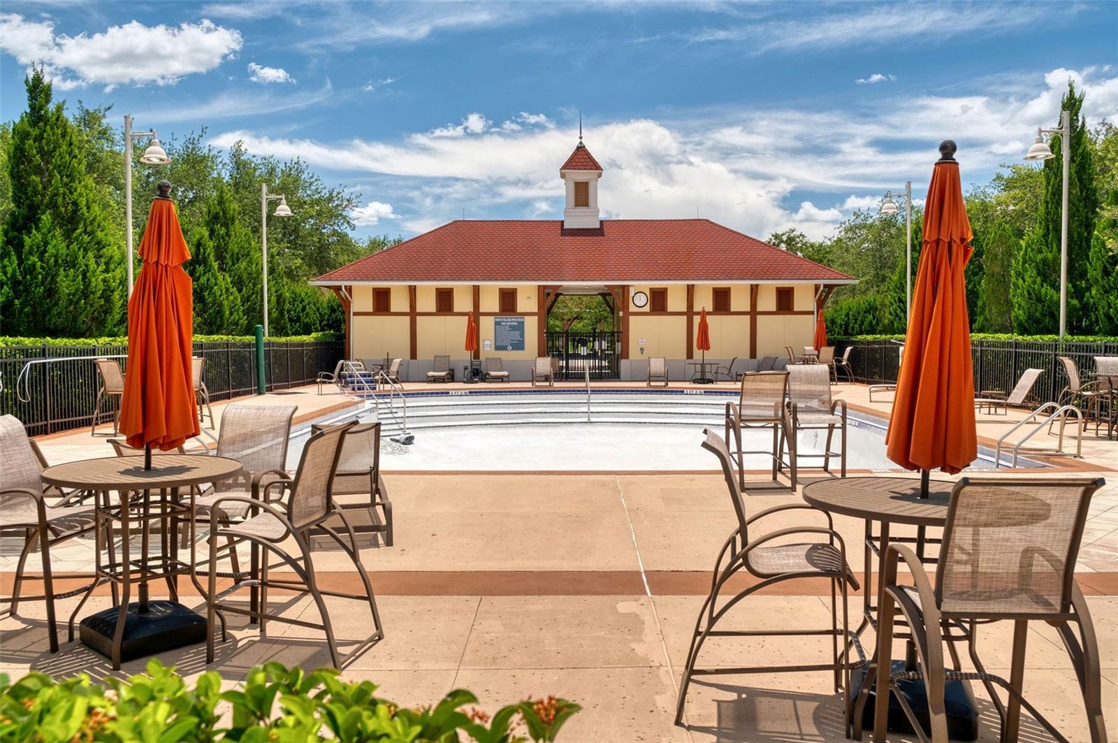 A spacious and versatile single-family residence located just steps from North Village Park and community pool/ amenities/playgrounds. This 5-bedroom, 4.5-bathroom home offers approximately 3,418 square feet of designed living space, ideal for a wide range of lifestyle needs. The inviting brick-paver front porch leads to a light-filled first floor featuring hardwood flooring, custom moldings, and flexible living spaces. The open-concept kitchen is a chef’s dream, complete with an oversized granite island, GE Monogram appliances, beverage fridge, generous IKEA sliding storage cabinets. A cozy family room with a gas fireplace, formal dining area, and private Home Office with built-ins provide ample room for work, entertainment, and relaxation. The primary suite, conveniently located on the first floor, includes dual closets (one with stacked washer/dryer), a spacious En suite bath, and access to the backyard. Upstairs, two large bedrooms share an oversized Jack-and-Jill bathroom, while a separate laundry closet provides added convenience. Outdoors, enjoy a heated pool and spa oasis surrounded by lush brick pavers. A detached pool house with full bath and kitchenette offers flexible use as a guest suite, studio, or office. Above the 3-car garage, a separate efficiency apartment with a full kitchen, washer/dryer, private entrance, and expansive second-story deck offers income potential or space to relax and entertain family and friends. Recent owner updates include 2021 ROOF REPLACEMENT, fresh interior paint, and routine maintenance to HVAC and water systems. Located on a tree-lined street in the heart of Celebration’s North Village, residents have access to nearby parks, playgrounds, community pools, athletic fields, and scenic walking trails. With convenient proximity to FL-417, I-4, US 192, and Celebration’s shopping and dining, this home offers a rare blend of privacy, space, and community connection. At under $328/SF, this is nearly the lowest priced single-family home in Celebration, and the lowest over 3k SFt! Don’t miss your chance to call this magical town your home!