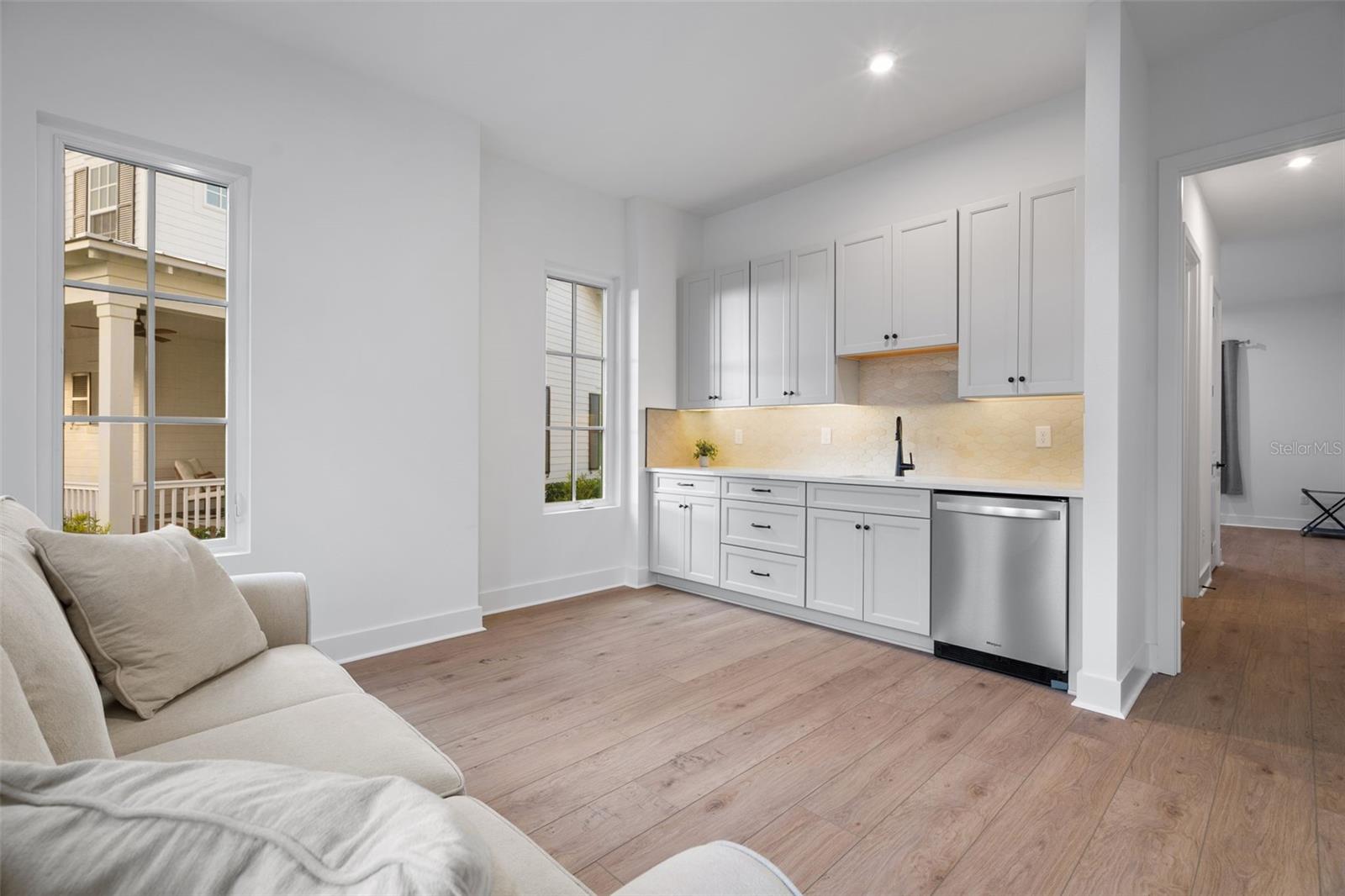 Rare opportunity to own one of only three Shackleford Mediterranean homes built in Island Village—Celebration’s newest and most desirable neighborhood. This exceptional property is in virtually brand-new condition, purchased only months ago and barely lived in, offering the benefits of new construction without the wait. Located on a unique homesite, this home blends luxury, comfort, and functionality. The open kitchen, breakfast nook, and great room with high-end finishes create an inviting gathering space, complemented by a separate dining room for formal occasions. Ideal for multi-generational living, the first floor includes a private suite with living room, wet bar, full bath with walk-in shower, and dedicated bedroom. Upstairs, the owner’s suite features a spa-like bath with free-standing tub, large walk-in shower, and spacious closet. Three additional bedrooms provide generous accommodations for family or guests. A large covered lanai offers outdoor enjoyment year-round. Above the 3-car garage, a private 2-bedroom apartment adds exceptional versatility—perfect for guests, extended family, or additional income. Enjoy Island Village’s brand-new parks, trails, recreation areas, and resort-style pools. A rare chance to live in a new home and new neighborhood within Celebration. Schedule your private tour today!