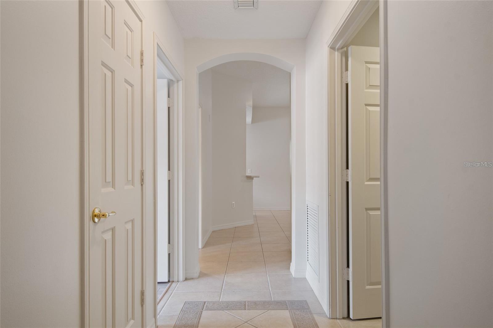Spacious and Clean this corner unit has no adjoining walls with other units, and it's on the second floor in an elevator building. This 3 bedroom 2 bath condo has a split floor plan and offers two large balconies, one off the living/dining room that is somewhat weather protected by the balcony above and the other one is off the 3rd bedroom, both looking out over a pond! Plantation shutters throughout enhance all the large window making this a very bright inviting unit. The entire condo was freshly painted and Luxury Vinyl Flooring was installed in two of the bedrooms in January 2025, whereas ceramic tile flooring can be found in all the remaining living spaces. Stainless appliances, Granite on the Island and Corian Counter tops finish off the wood cabinets in the kitchen. There's a linen closet in each bathroom, a coat closet at the entry door and a large walk in closet in the Owner's Suite. The laundry room offers additional storage space besides the exterior storage unit that is adjacent to the assigned carport. Location is excellent, being a short distance to downtown where all the fun events take place in Celebration. 30 minutes to the Orlando International Airport, all the Theme Parks, Casual and Fine dining and several shopping centers that are sure to suit everyone's budget. Call today for your showing and make this lovely condo your new Florida Home!