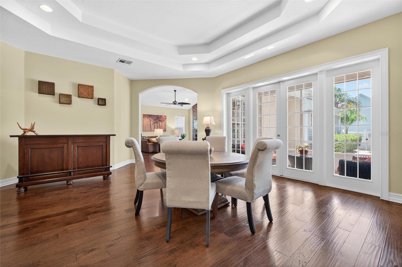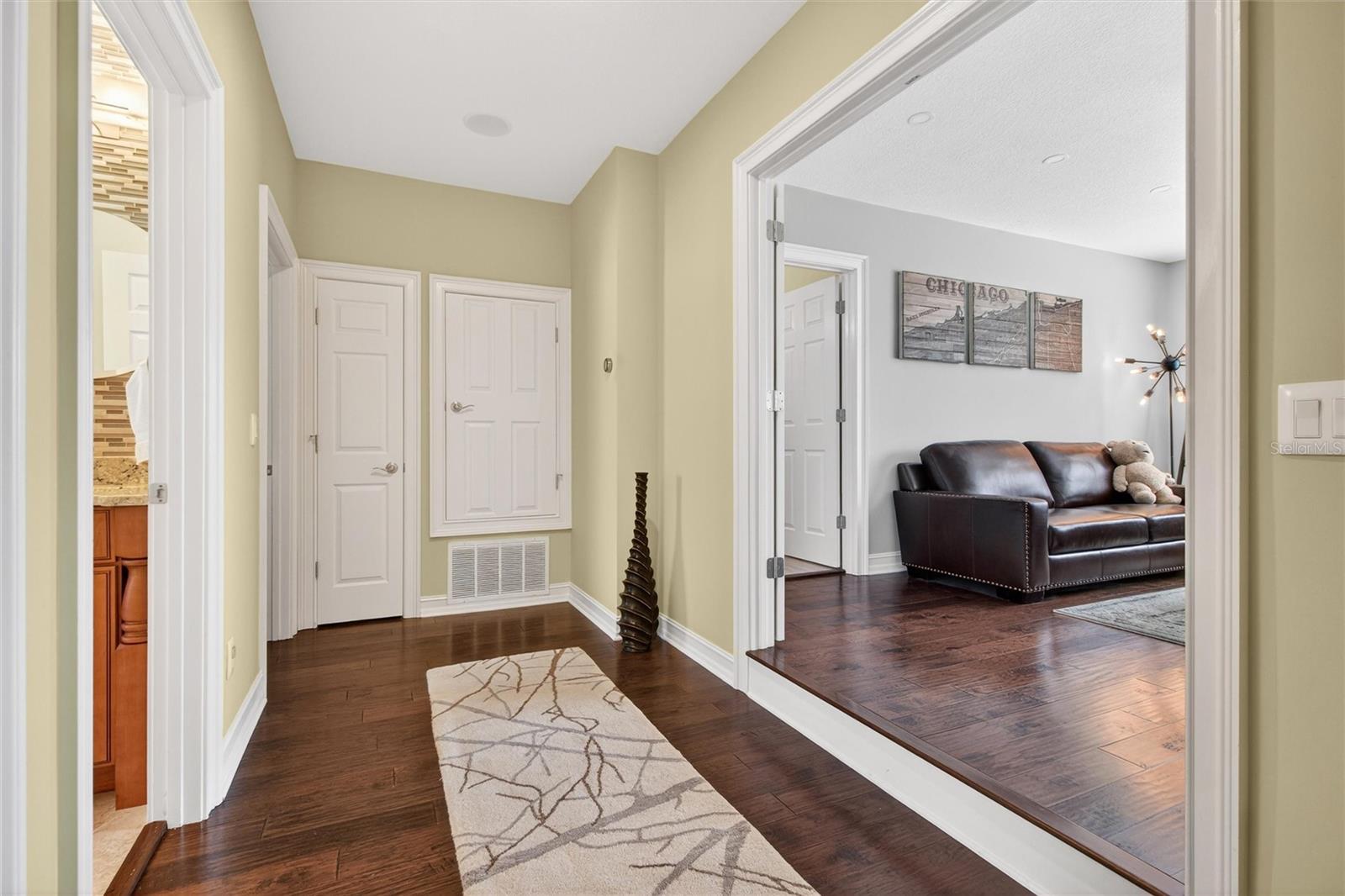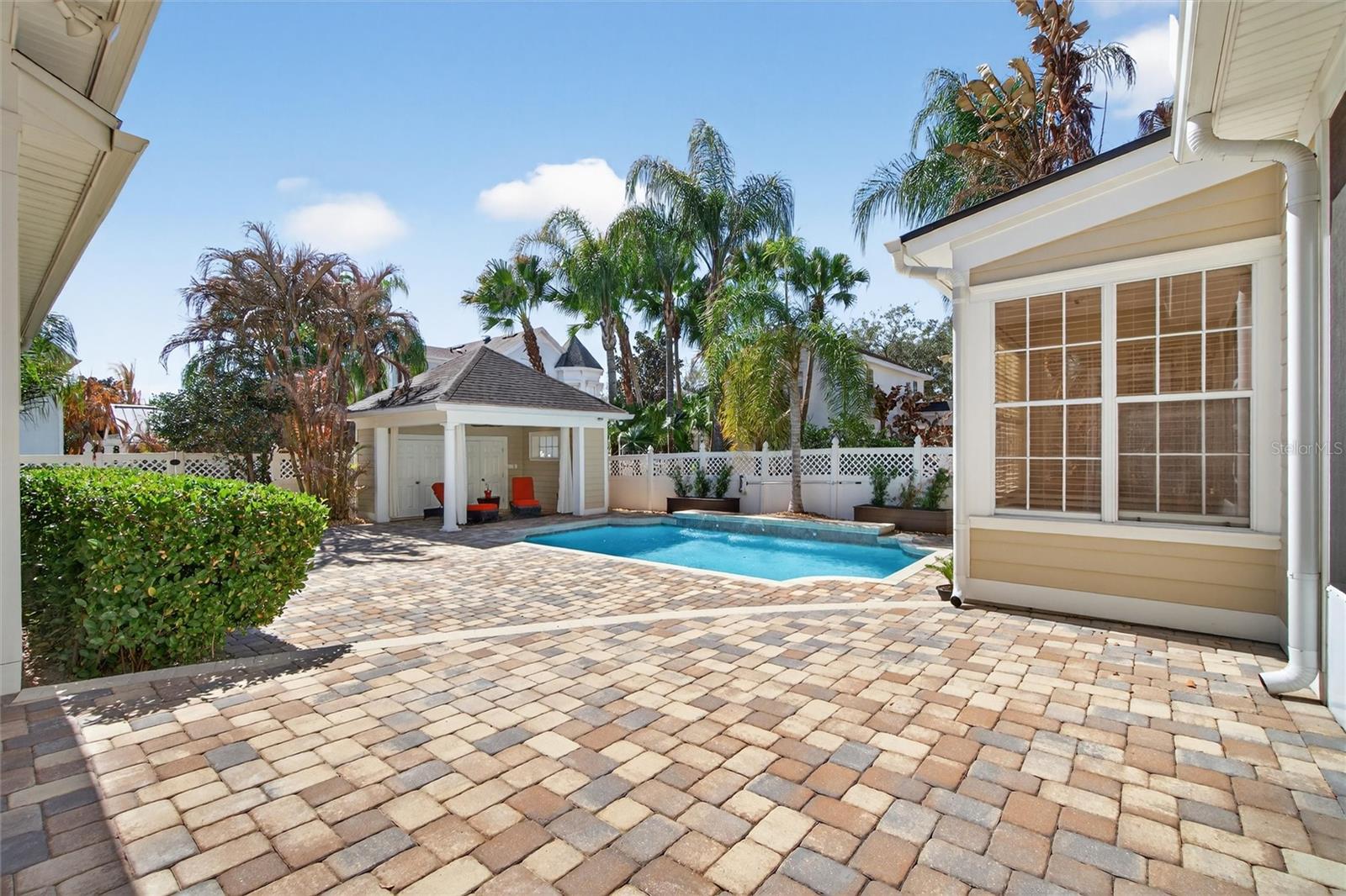 This luxury Pool Home, was built by Master Builder ISSA Homes and upgraded with Custom Cabinetry, Kitchen, Closets, Office Cabinetry and shelving by MD Cabinetry Inc. known for exemplary workmanship and craftsmanship. ** Please view the Detailed Floor Plans** NOTABLE FEATURES: * GOURMET KITCHEN: 42" Cream Cabinetry, pullout shelving in cabinet PANTRY and Large walk in Pantry, expansive coordinating light Granite countertops and Center Island with storage, full Cream wood Range Hood, 6 Burner Bosch Induction Cooktop, Bosch Stainless Appliances, extra-large Convection Oven combination, Multiple seating Dining Bar, Accent and Pendulum Lighting, and Glass Tile Backsplash. * MAIN LIVING/GATHERING ROOM: Expansive Space for multiple Seating Options, Opens to Large Informal Eat-in Dining area adjacent to Kitchen that overlooks Pool Oasis, Custom Stone Wall with Electric Fireplace, soaring Ceilings, Recessed Lighting and Multiple windows that provide ambient lighting. * Formal DINING ROOM: Currently used as an additional Sitting Room * ROTUNDA ROOM: Striking in its design and currently used as a formal Dining Area and Bar/Beverage area, opens to the covered, screened Porch and looking out to the Awesome pool Oasis. * Large HOME OFFICE: Complete and organized with custom-built-ins, under cabinet lighting, TWO desk areas and a huge walk-in closet for storage. * FIRST FLOOR PRIMARY ENSUITE: Striking Bathroom with Glass Tile Enclosure, coordinating Pendulum and over mirror lights, separate water closet and dual vanities, TWO walk-in Closets, Extra-large bedroom with bump out area fully enclosed with windows overlooking the Pool; perfect for exercise equipment or sitting area! * Additional FIRST FLOOR HOME OFFICE/BEDROOM: Gorgeous Built-in Cabinetry and closet Across from FULL POOL BATH and LAUNDRY ROOM. * SECOND FLOOR: Access by designer Staircase, 3 Additional Bedrooms and two Full Baths, all with custom built-ins! * FLOORS: Gleaming Hickory Random Width Hand Scraped Wenge flooring throughout the main floor is stunning and practical too! * POOL OASIS: Oversized Pool with sparkling Water Features, Enormous FENCED Backyard with Beautiful Paver Patio, a Cabana with Storage Rooms; perfect for Kitchen and seating for Entertaining many Guests! *LOT: .22 ACRES * LOCATION: Across from beautiful Green Space, nearby state-of-the Art playgrounds, nearby Celebration Pool and Volleyball court. Plus, this Village in Celebration is easily accessible to major highways, shopping centers and the Celebration Robert Trent Jones Golf Course. This Lot, this Location, this Gorgeous Move-in Ready Home, at this price- Priceless!