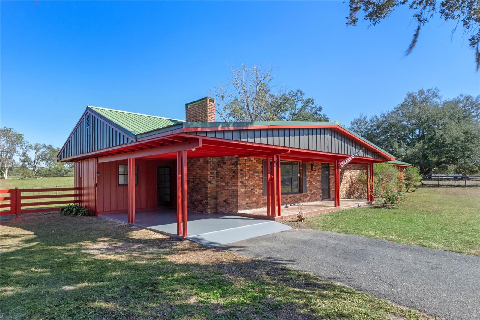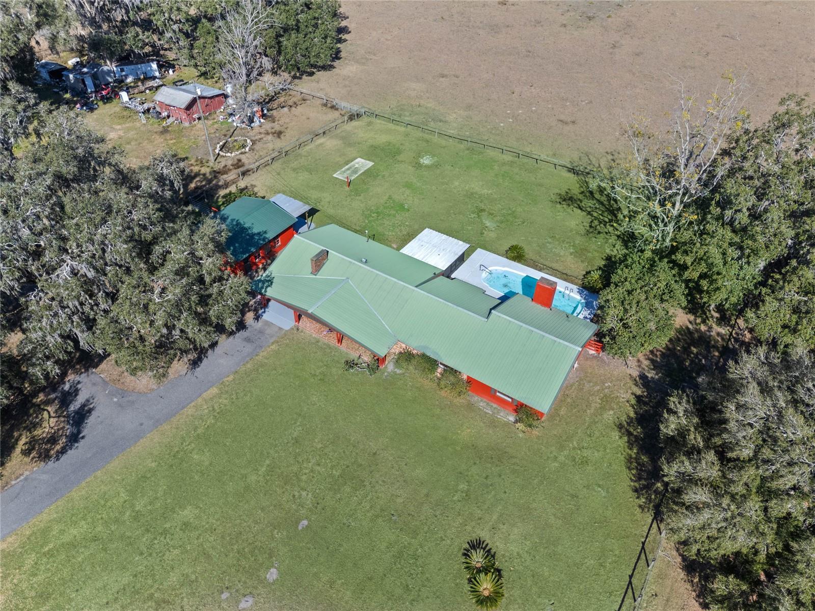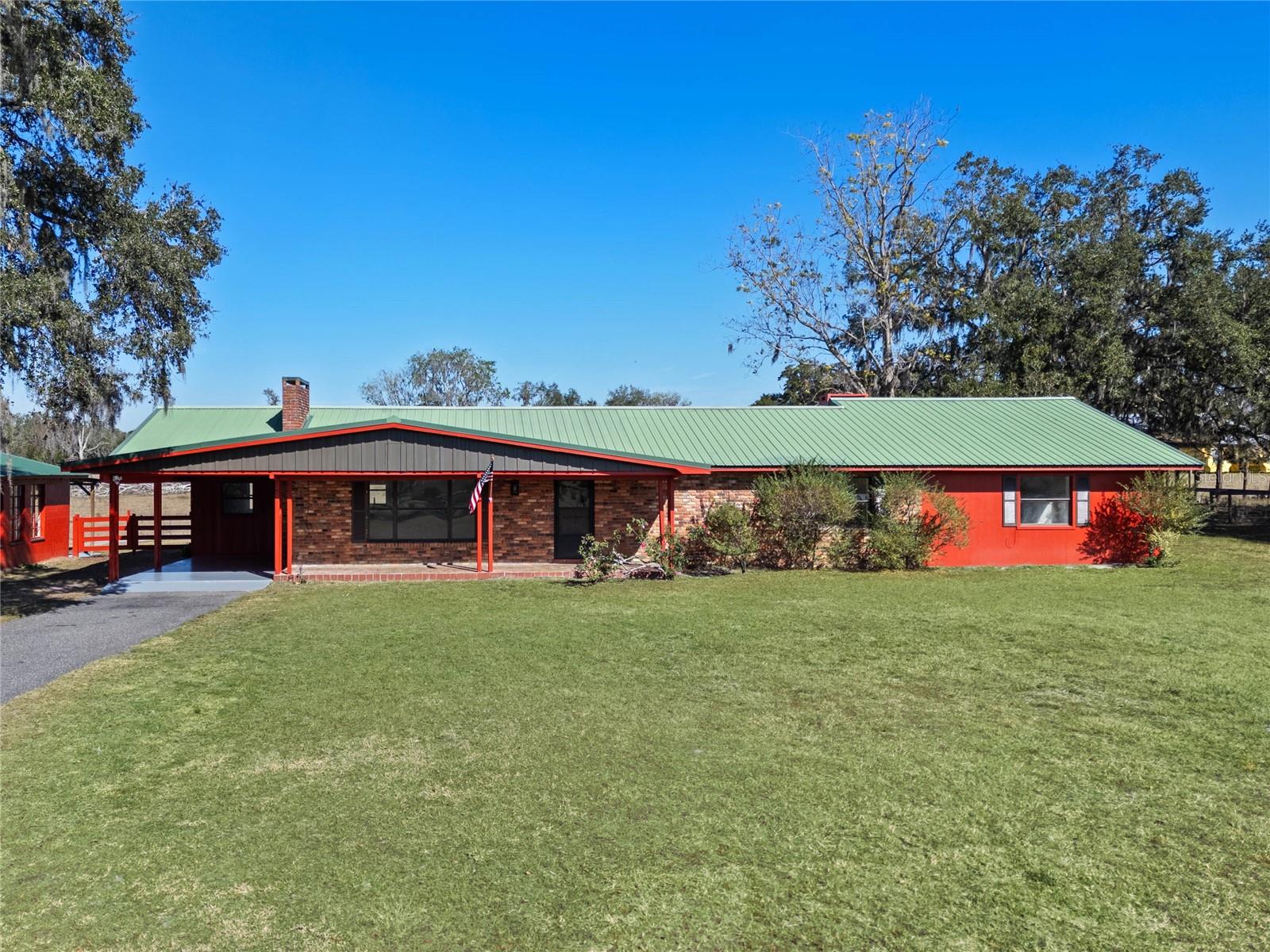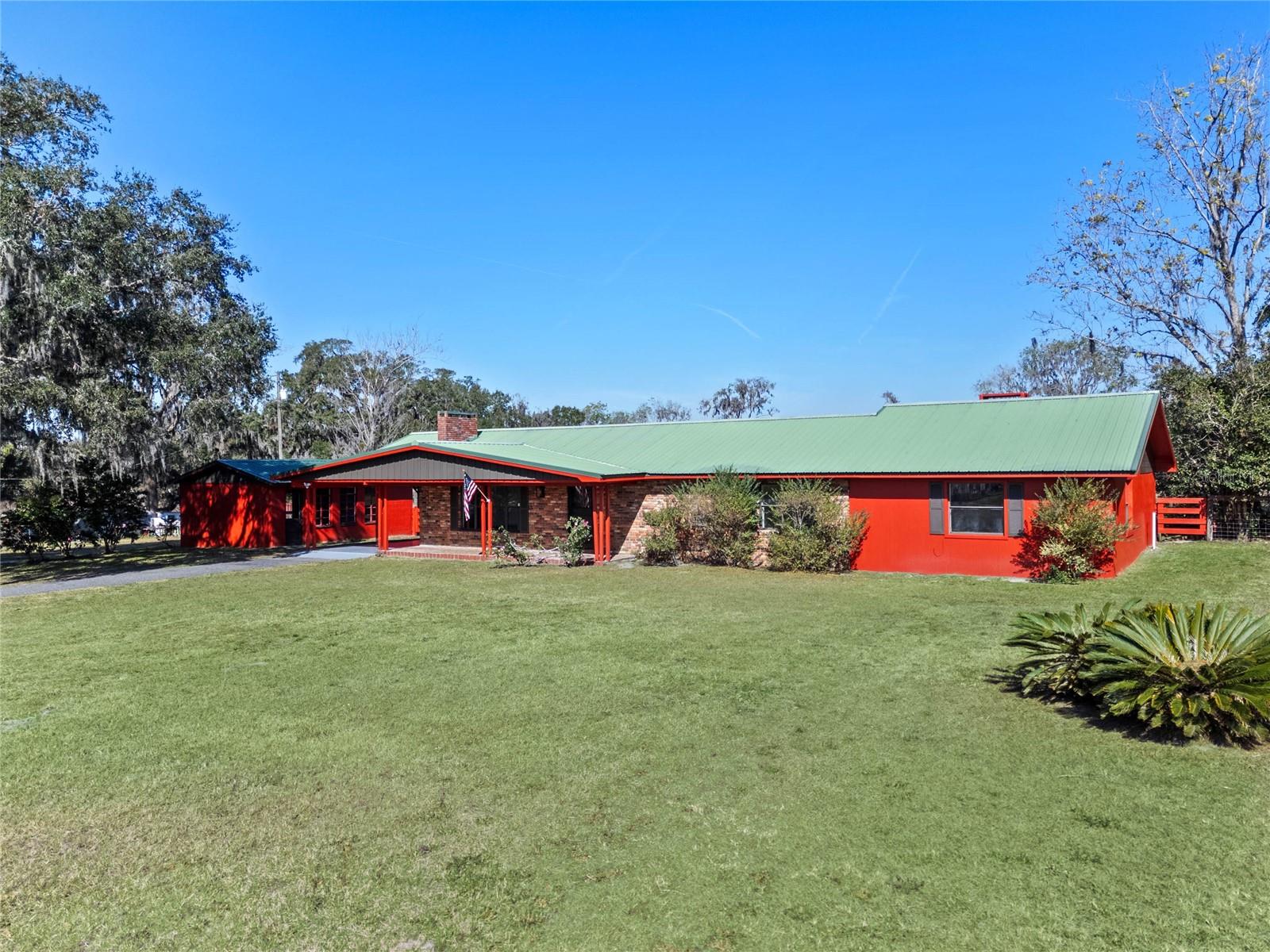 MOVE IN READY, "gentleman's ranch home" located on over an acre of land. This eye catching "barn red" home with a metal roof, features 3 bedrooms, 2 bathrooms, 2135sqft., indoor utility room, 2 fireplaces, carport, separate workshop, and a screened back porch overlooking your in-ground, sparkling pool. As you enter the home, you are greeted with beautiful wood flooring and fresh paint throughout. The living room has a coat closet and electric fireplace surrounded by red brick. The kitchen makes a statement with granite counter tops, an abundance of wooden cabinets and drawer space that have been refaced and updated with new hardware, an eat in dining space with wall art from 1962, and a new appliance package that includes a Frigidaire refrigerator, glass stove top, built in oven, dishwasher and GE microwave. At the end of the hall, you will find your master suite with private exit to the back yard, new butcher block, built in dresser top, new ceiling fan and an updated ensuite bathroom. Making your way back toward the front of the home, is an additional bedroom or office with private closet, new ceiling fan and custom built in. Last stops before you are back in the main living space, one more bedroom with large walk in closet and a new ceiling fan with remote and a full freshly painted bathroom with a bathtub and new Kohler hardware. Off of the dining is a screened in back porch leading out to your in ground fiberglass pool. Conveniently located to the Florida Turnpike, I-75, Leesburg, Clermont, The Villages and so much more. Updates include: 1 brand new water heater and 1 newer water heater, all new kitchen appliances, fresh interior paint throughout the home, new ceiling fans with remotes in all of the rooms, new outlets, new electrical panel, newer A/C unit, pool was cleaned and checked for leaks, updated landscape, some fresh exterior paint, new exterior doors, new toilets and bathroom hardware, new cabinet and drawer faces as well as some glass and drywall repairs.