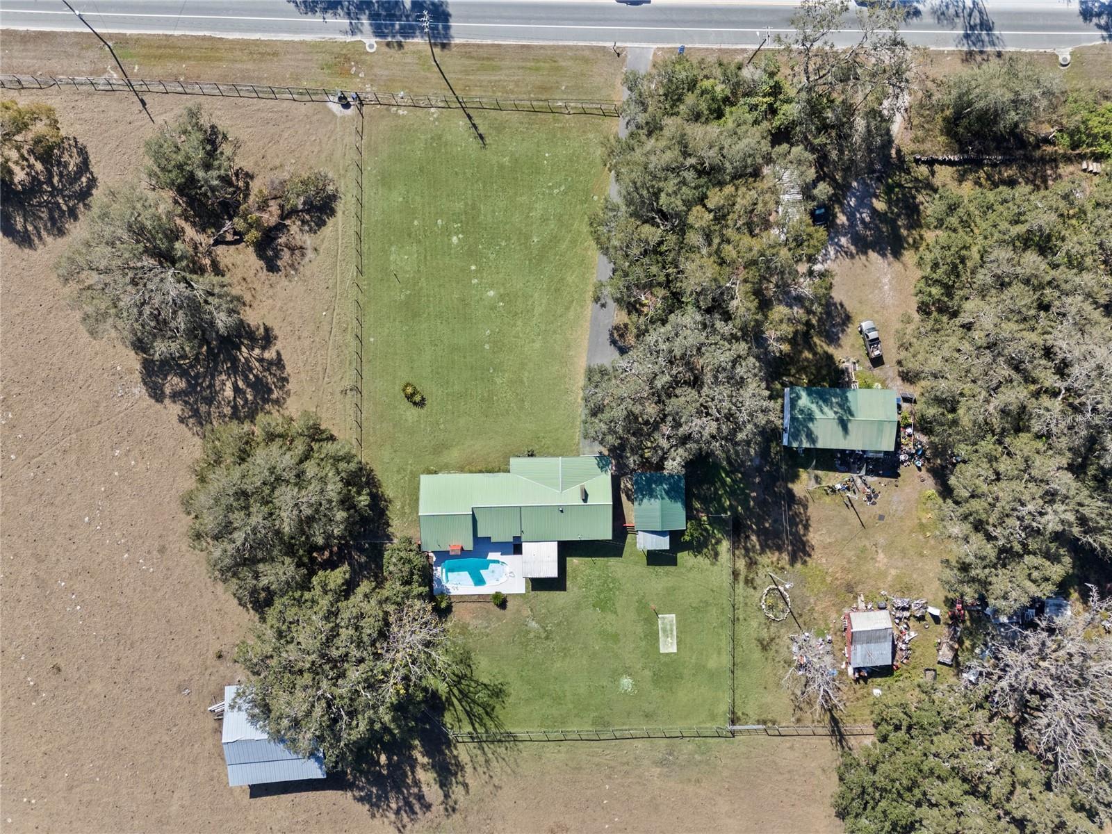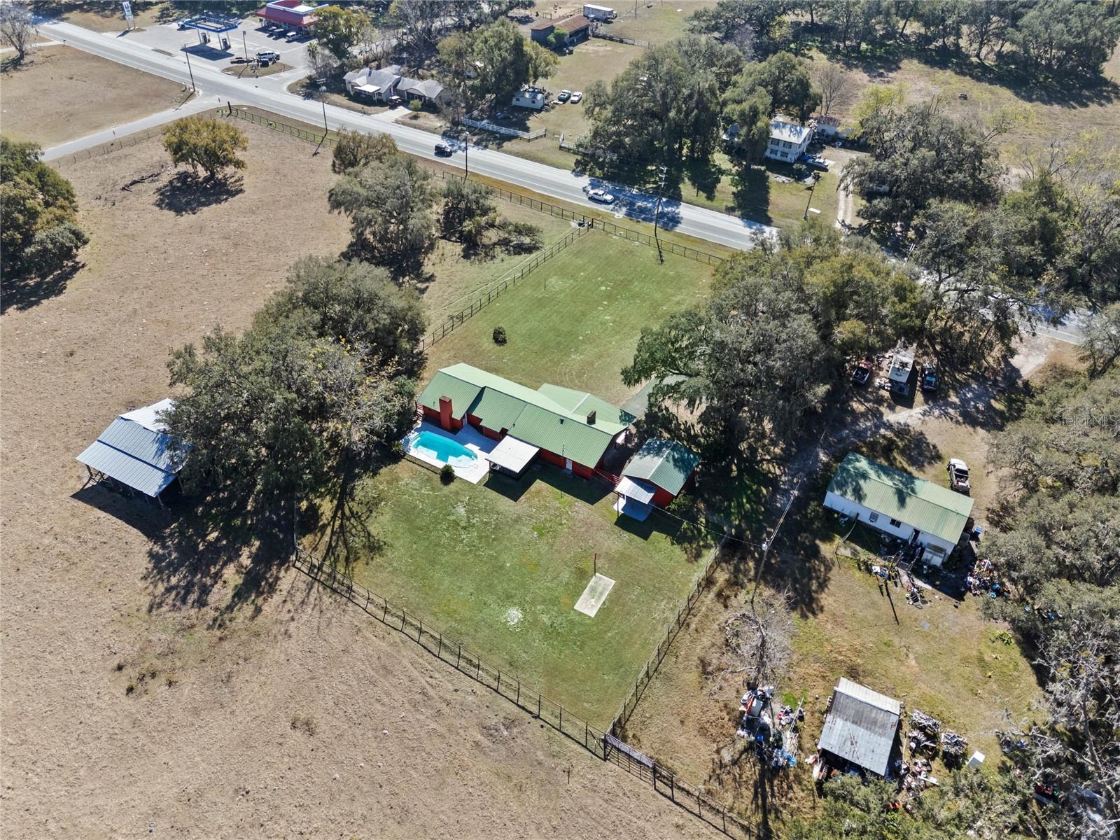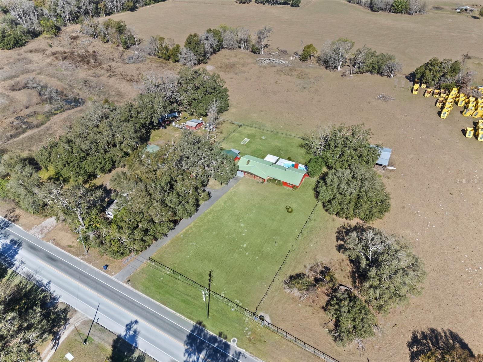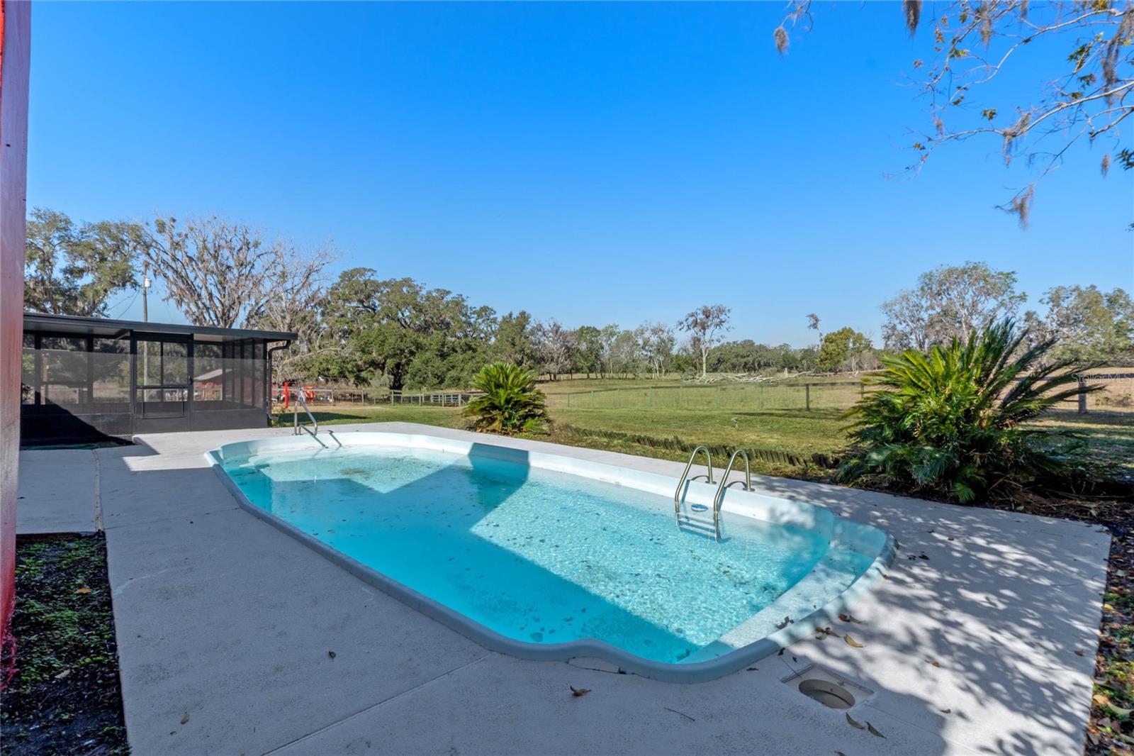 MOVE IN READY, "gentleman's ranch home" located on over an acre of land. This eye catching "barn red" home with a metal roof, features 3 bedrooms, 2 bathrooms, 2135sqft., indoor utility room, 2 fireplaces, carport, separate workshop, and a screened back porch overlooking your in-ground, sparkling pool. As you enter the home, you are greeted with beautiful wood flooring and fresh paint throughout. The living room has a coat closet and electric fireplace surrounded by red brick. The kitchen makes a statement with granite counter tops, an abundance of wooden cabinets and drawer space that have been refaced and updated with new hardware, an eat in dining space with wall art from 1962, and a new appliance package that includes a Frigidaire refrigerator, glass stove top, built in oven, dishwasher and GE microwave. At the end of the hall, you will find your master suite with private exit to the back yard, new butcher block, built in dresser top, new ceiling fan and an updated ensuite bathroom. Making your way back toward the front of the home, is an additional bedroom or office with private closet, new ceiling fan and custom built in. Last stops before you are back in the main living space, one more bedroom with large walk in closet and a new ceiling fan with remote and a full freshly painted bathroom with a bathtub and new Kohler hardware. Off of the dining is a screened in back porch leading out to your in ground fiberglass pool. Conveniently located to the Florida Turnpike, I-75, Leesburg, Clermont, The Villages and so much more. Updates include: 1 brand new water heater and 1 newer water heater, all new kitchen appliances, fresh interior paint throughout the home, new ceiling fans with remotes in all of the rooms, new outlets, new electrical panel, newer A/C unit, pool was cleaned and checked for leaks, updated landscape, some fresh exterior paint, new exterior doors, new toilets and bathroom hardware, new cabinet and drawer faces as well as some glass and drywall repairs.
