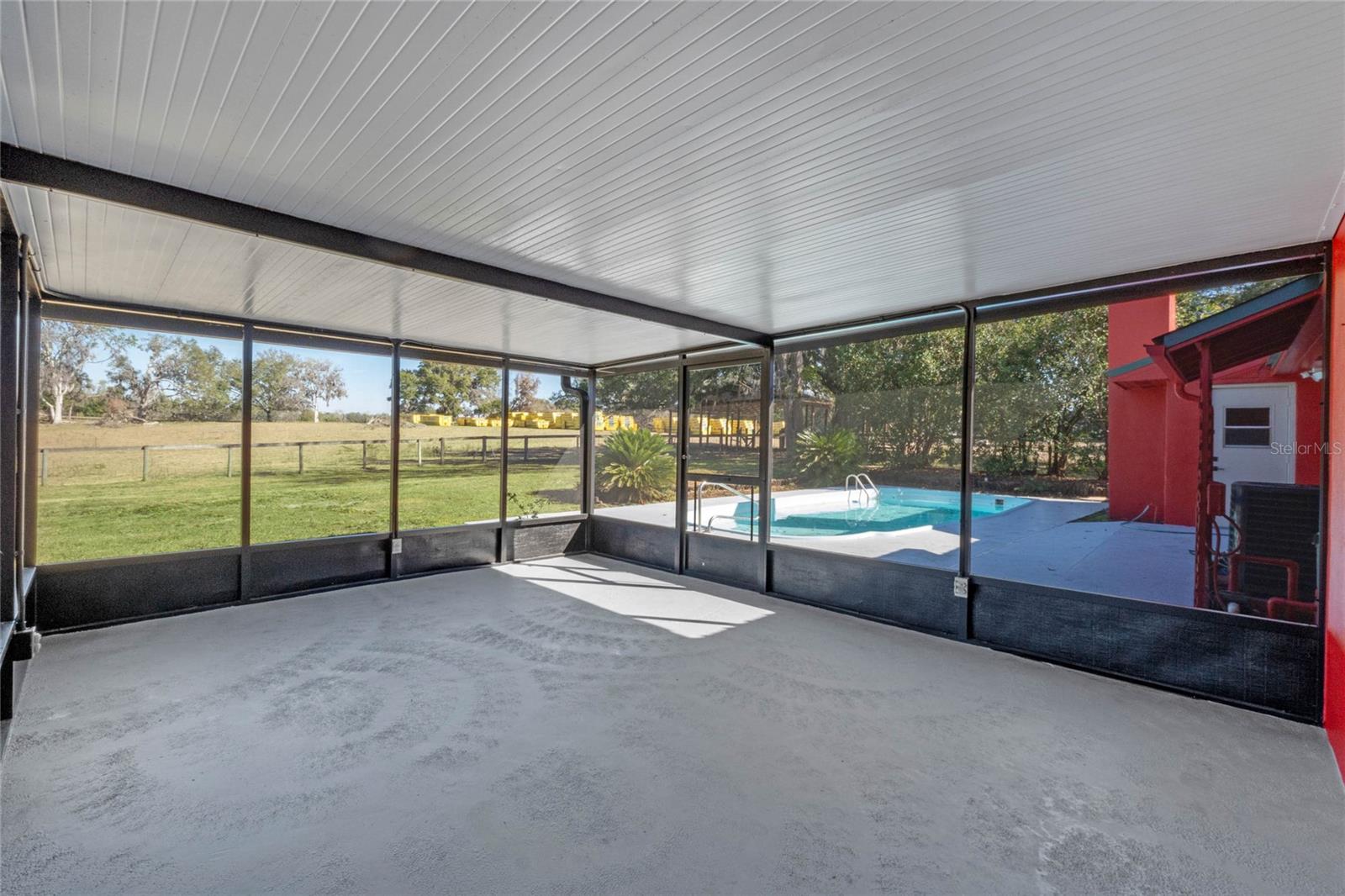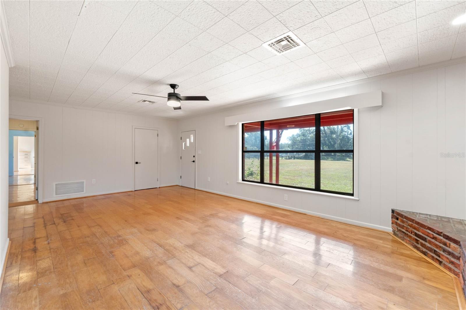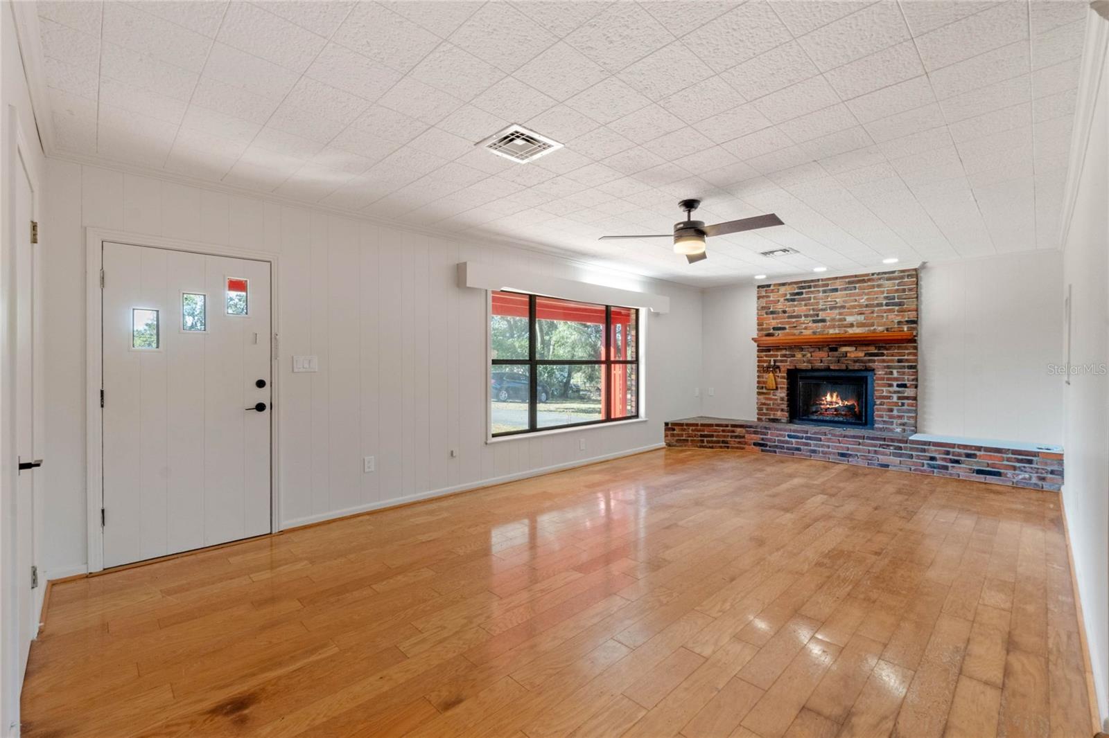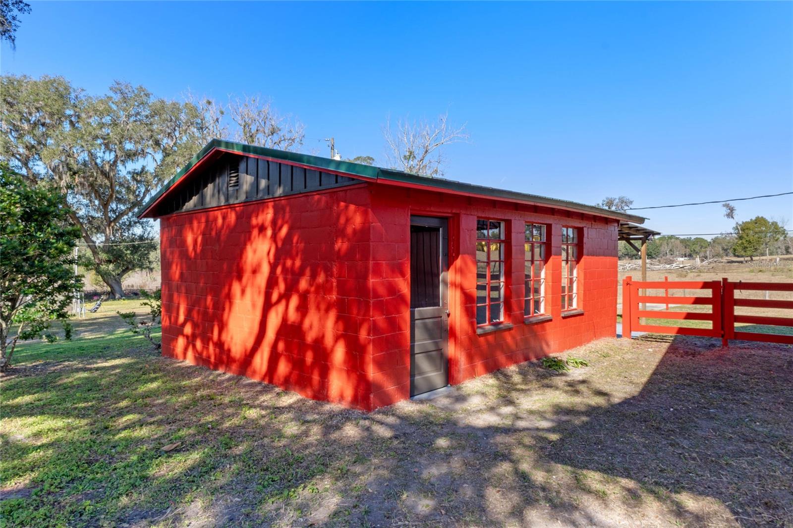 MOVE IN READY, "gentleman's ranch home" located on over an acre of land. This eye catching "barn red" home with a metal roof, features 3 bedrooms, 2 bathrooms, 2135sqft., indoor utility room, 2 fireplaces, carport, separate workshop, and a screened back porch overlooking your in-ground, sparkling pool. As you enter the home, you are greeted with beautiful wood flooring and fresh paint throughout. The living room has a coat closet and electric fireplace surrounded by red brick. The kitchen makes a statement with granite counter tops, an abundance of wooden cabinets and drawer space that have been refaced and updated with new hardware, an eat in dining space with wall art from 1962, and a new appliance package that includes a Frigidaire refrigerator, glass stove top, built in oven, dishwasher and GE microwave. At the end of the hall, you will find your master suite with private exit to the back yard, new butcher block, built in dresser top, new ceiling fan and an updated ensuite bathroom. Making your way back toward the front of the home, is an additional bedroom or office with private closet, new ceiling fan and custom built in. Last stops before you are back in the main living space, one more bedroom with large walk in closet and a new ceiling fan with remote and a full freshly painted bathroom with a bathtub and new Kohler hardware. Off of the dining is a screened in back porch leading out to your in ground fiberglass pool. Conveniently located to the Florida Turnpike, I-75, Leesburg, Clermont, The Villages and so much more. Updates include: 1 brand new water heater and 1 newer water heater, all new kitchen appliances, fresh interior paint throughout the home, new ceiling fans with remotes in all of the rooms, new outlets, new electrical panel, newer A/C unit, pool was cleaned and checked for leaks, updated landscape, some fresh exterior paint, new exterior doors, new toilets and bathroom hardware, new cabinet and drawer faces as well as some glass and drywall repairs.