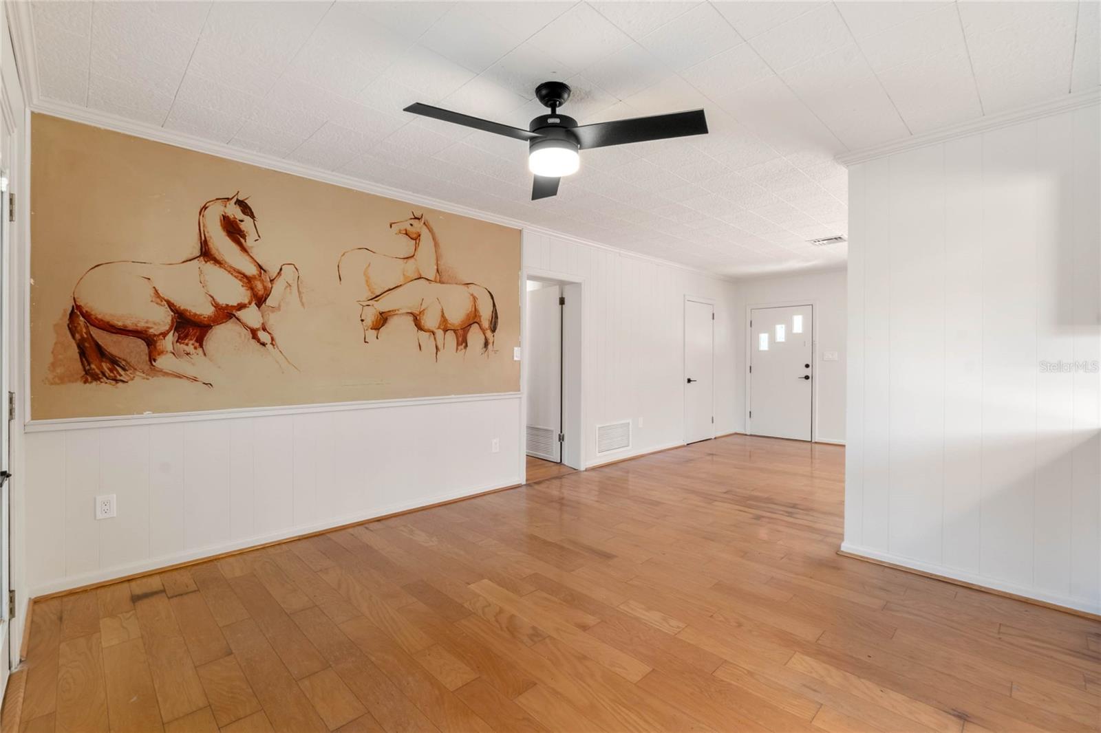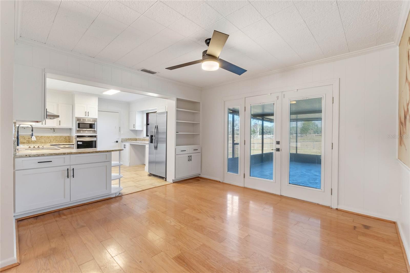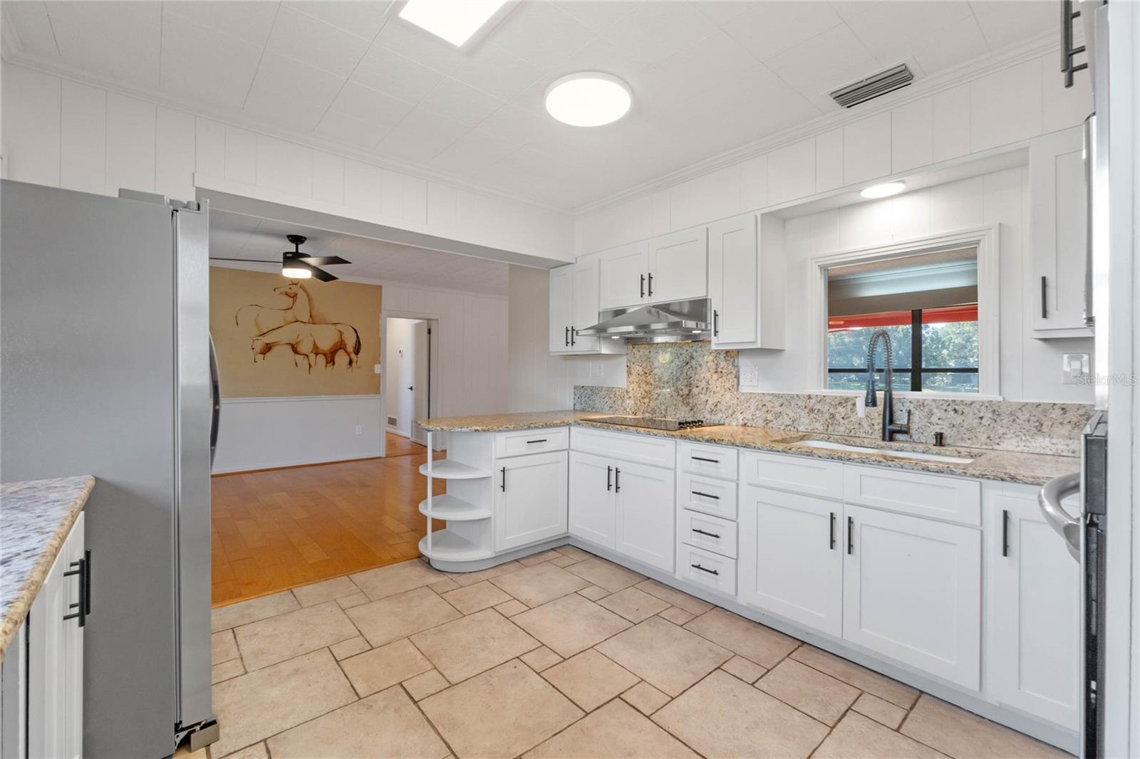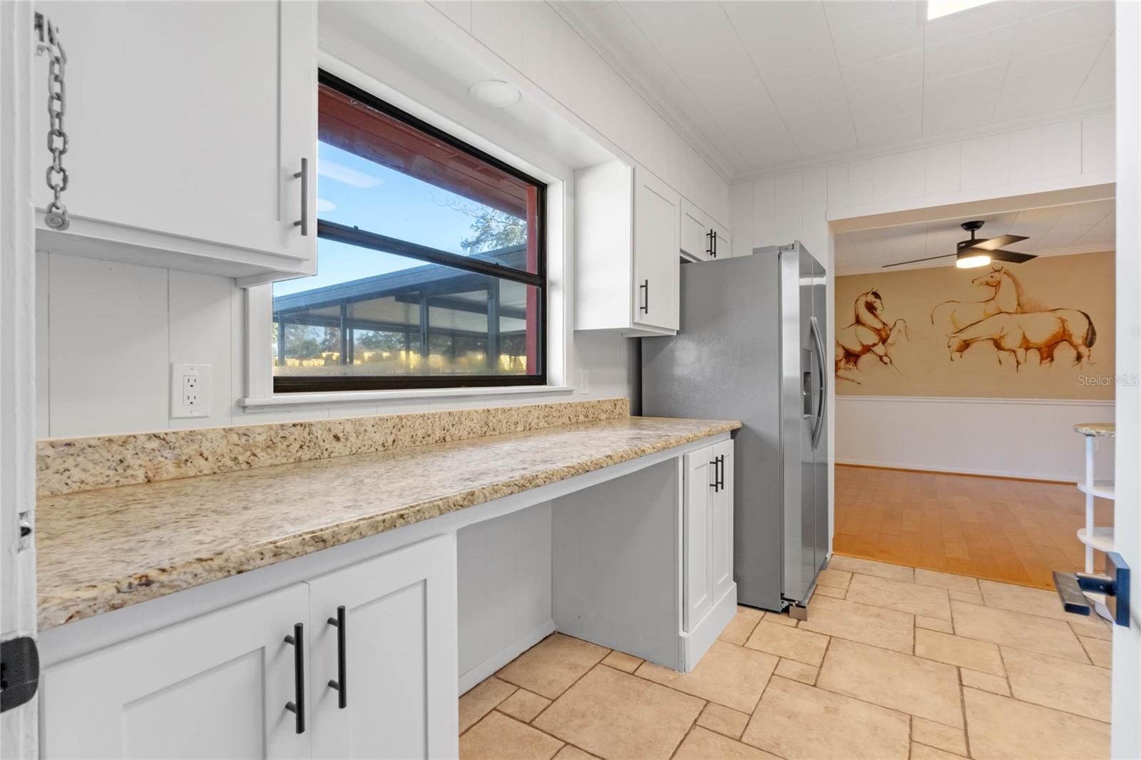 MOVE IN READY, "gentleman's ranch home" located on over an acre of land. This eye catching "barn red" home with a metal roof, features 3 bedrooms, 2 bathrooms, 2135sqft., indoor utility room, 2 fireplaces, carport, separate workshop, and a screened back porch overlooking your in-ground, sparkling pool. As you enter the home, you are greeted with beautiful wood flooring and fresh paint throughout. The living room has a coat closet and electric fireplace surrounded by red brick. The kitchen makes a statement with granite counter tops, an abundance of wooden cabinets and drawer space that have been refaced and updated with new hardware, an eat in dining space with wall art from 1962, and a new appliance package that includes a Frigidaire refrigerator, glass stove top, built in oven, dishwasher and GE microwave. At the end of the hall, you will find your master suite with private exit to the back yard, new butcher block, built in dresser top, new ceiling fan and an updated ensuite bathroom. Making your way back toward the front of the home, is an additional bedroom or office with private closet, new ceiling fan and custom built in. Last stops before you are back in the main living space, one more bedroom with large walk in closet and a new ceiling fan with remote and a full freshly painted bathroom with a bathtub and new Kohler hardware. Off of the dining is a screened in back porch leading out to your in ground fiberglass pool. Conveniently located to the Florida Turnpike, I-75, Leesburg, Clermont, The Villages and so much more. Updates include: 1 brand new water heater and 1 newer water heater, all new kitchen appliances, fresh interior paint throughout the home, new ceiling fans with remotes in all of the rooms, new outlets, new electrical panel, newer A/C unit, pool was cleaned and checked for leaks, updated landscape, some fresh exterior paint, new exterior doors, new toilets and bathroom hardware, new cabinet and drawer faces as well as some glass and drywall repairs.