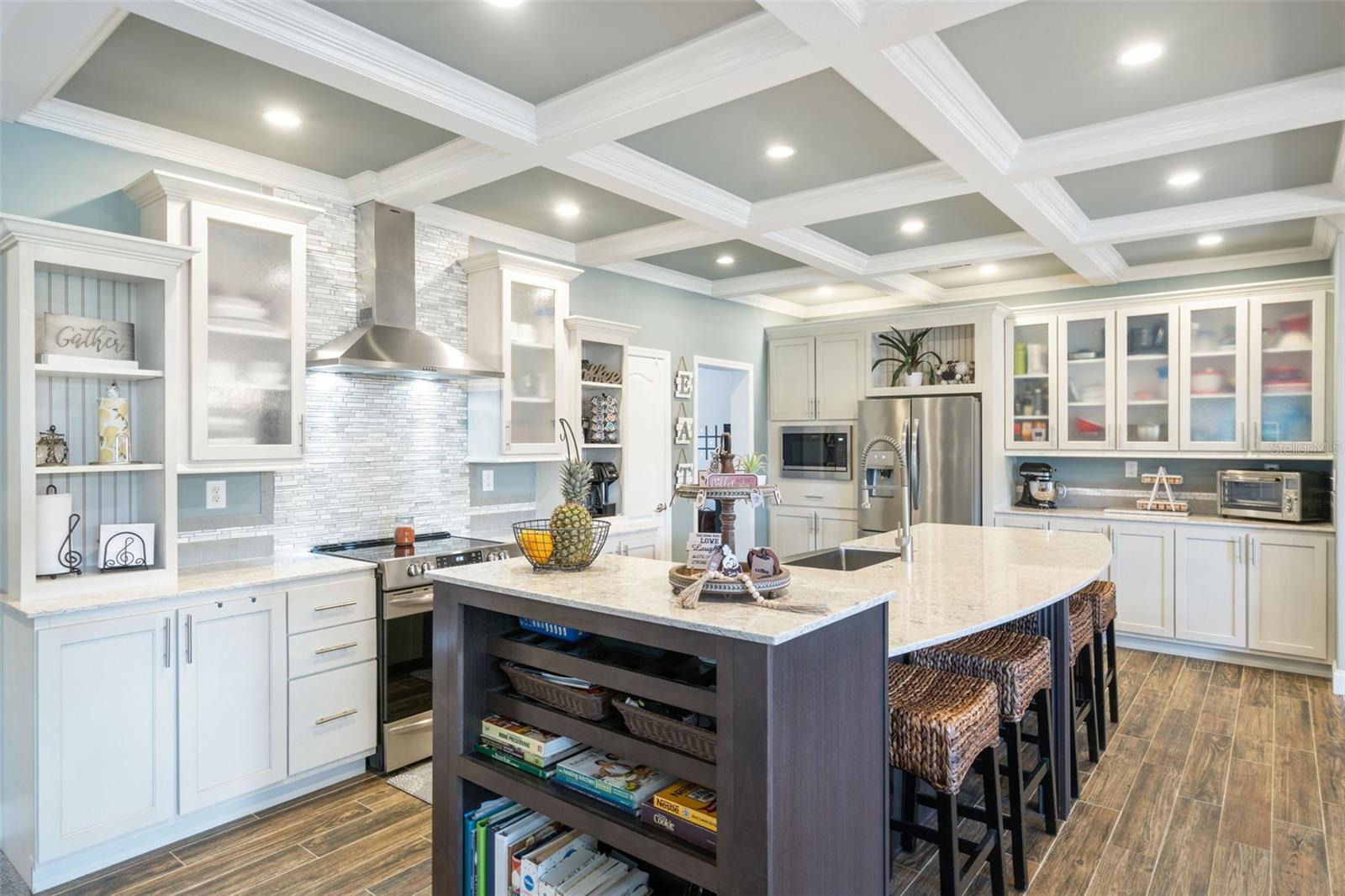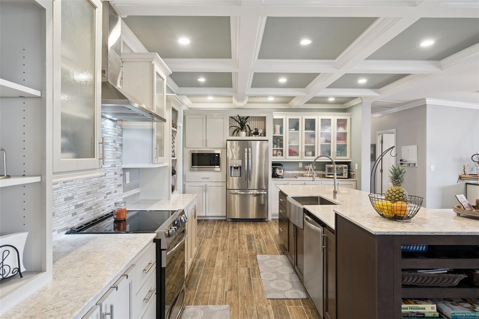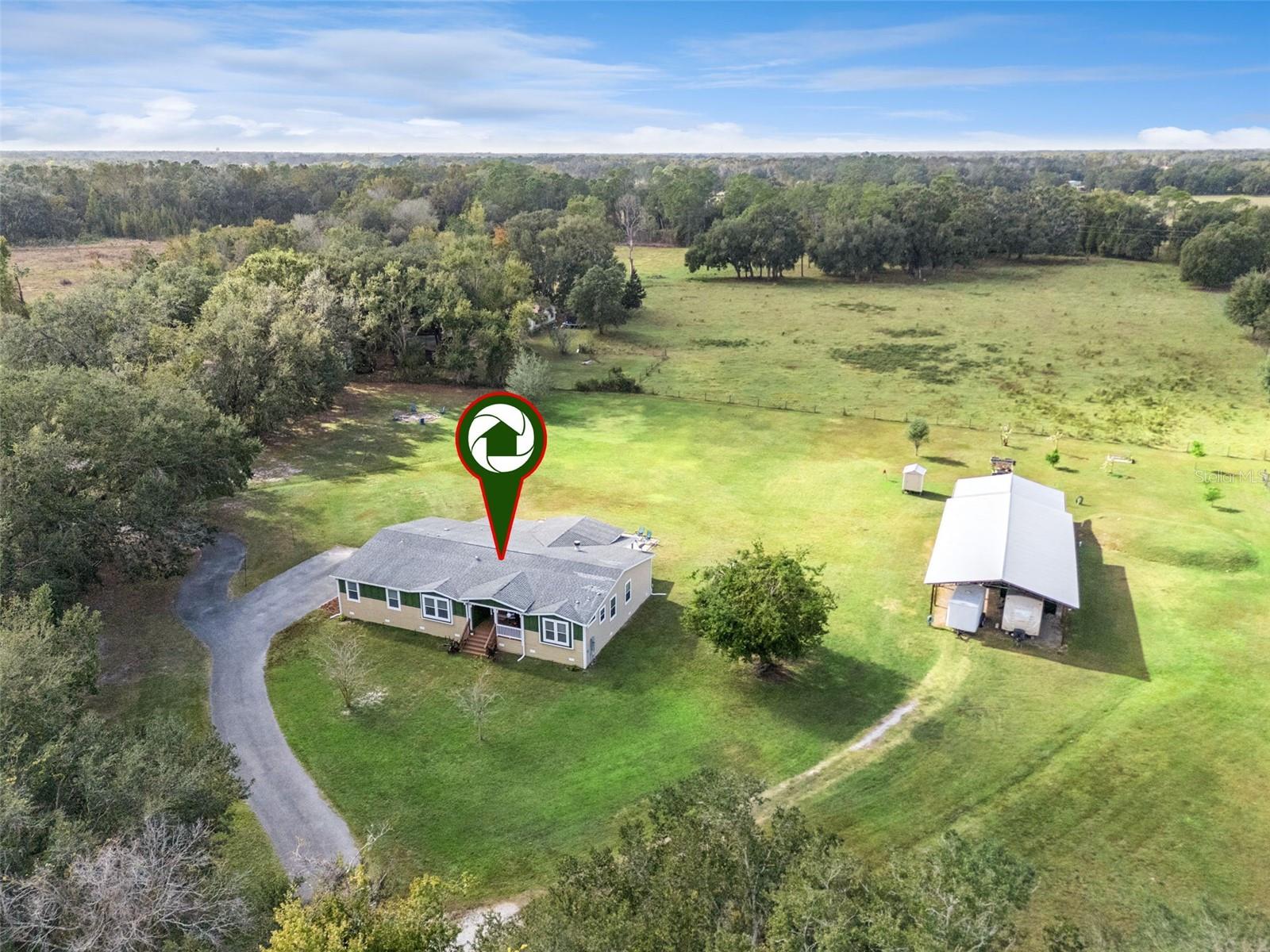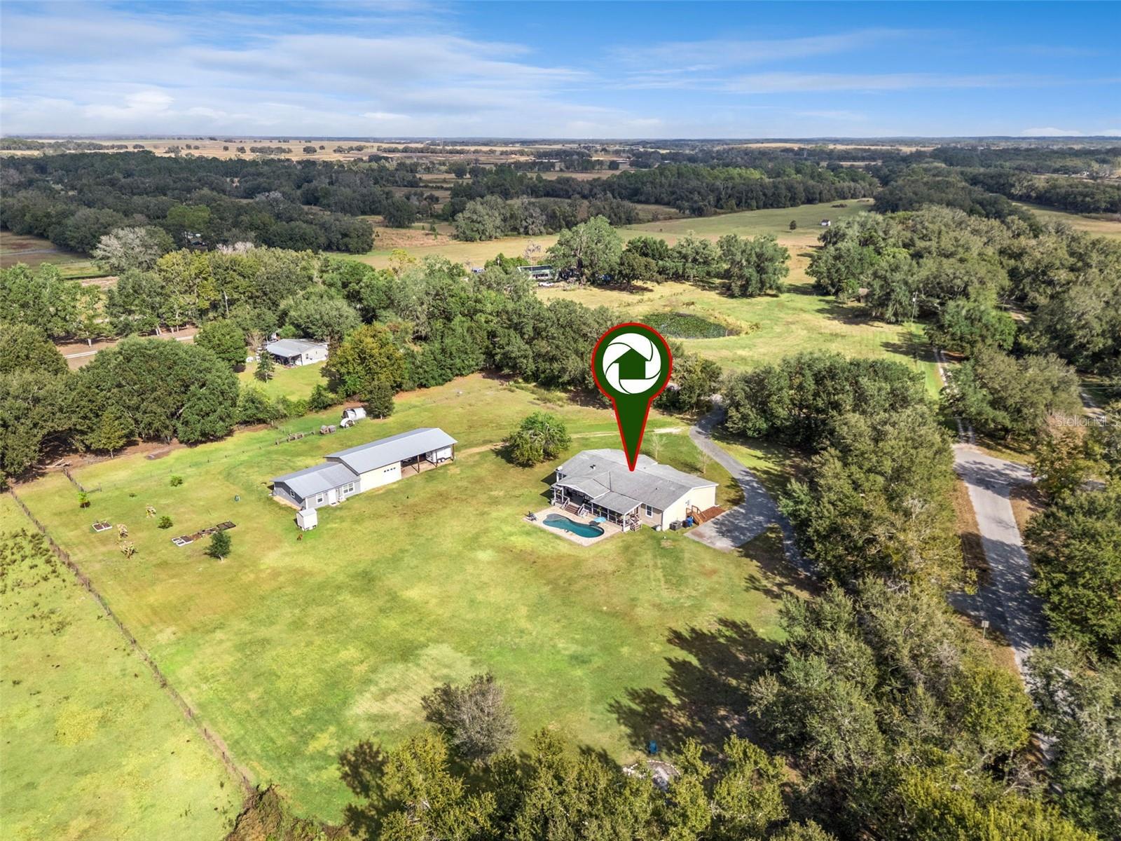 This 4-bed home on 3 acres offers the perfect blend of privacy, flexibility, and functionality—with a separate guest house, in-ground pool, and layout designed for modern living. The main residence features 4 bedrooms, 3 full baths, a dedicated office, and two separate living areas, thoughtfully arranged across three private wings. At the center of the home, the kitchen features stone countertops, stainless appliances, a large island with seating, and elegant details like coffered ceilings, crown molding, and oversized picture windows. The primary suite includes a spacious en-suite bath and an attached flex room ideal for a nursery, gym, or home office. A guest bedroom and full bath sit privately at the opposite end of the home. Two additional bedrooms share a third full bath and a central playroom or family room—ideal for kids, guests, or hobbies. Step outside to a covered patio and sparkling in-ground pool. A third full bathroom connects directly to the pool deck for easy access after a swim. Beyond the main home, the property includes a detached garage and a completely separate 1-bedroom, 1-bath guest house with its own oversized kitchen, living area, laundry room, and walk-in closet. It’s perfect for long-term guests, multigenerational living, or potential rental income. Additional highlights include a large RV-ready carport, fruit trees, raised garden beds, chicken coops, and mature landscaping. Recent updates include a new heat pump, new water heaters, and a new roof (installation underway). A rare opportunity for peaceful living with room to grow.