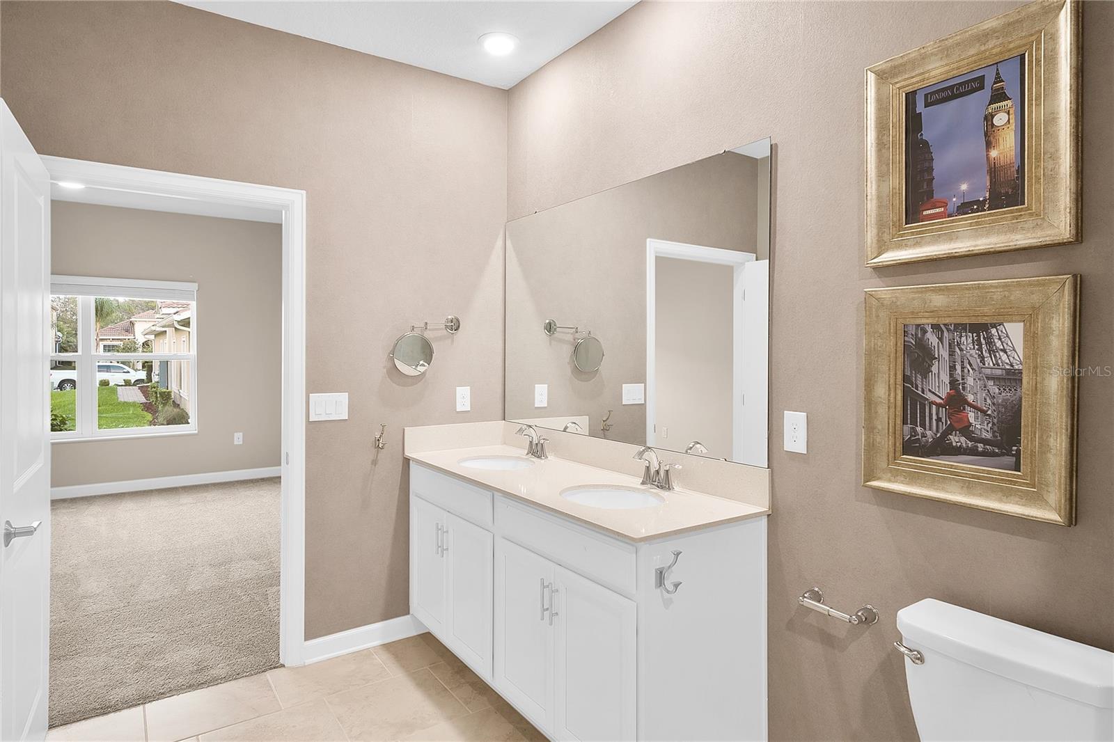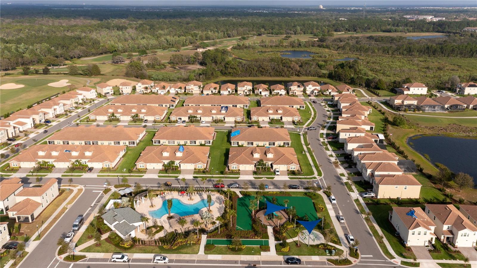 Experience luxurious living in the gated community of Stoneybrook. This corner villa offers 2 bedrooms, 2 bathrooms, and a versatile flex room perfect for a home office or retreat. The spacious kitchen features stone countertops, stainless steel GE appliances, and ample pantry space. Additional conveniences include a washer and dryer, a security system, and a screened-in rear porch. the community of Stonybrook has an array of amenities, including a golf course, playground, community pool, tennis and volleyball courts, restaurants, a movie theater, fitness center, game room, tiki bar, lazy river, pools, water slides, and cabanas. HOA benefits include cable TV, internet, lawn service, exterior pest control, irrigation, gated access, exterior maintenance, and roof. A short drive takes you to shopping, dining, Disney World, and major highways, making this a prime location. Don't miss this opportunity!