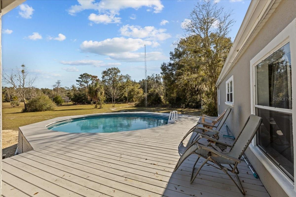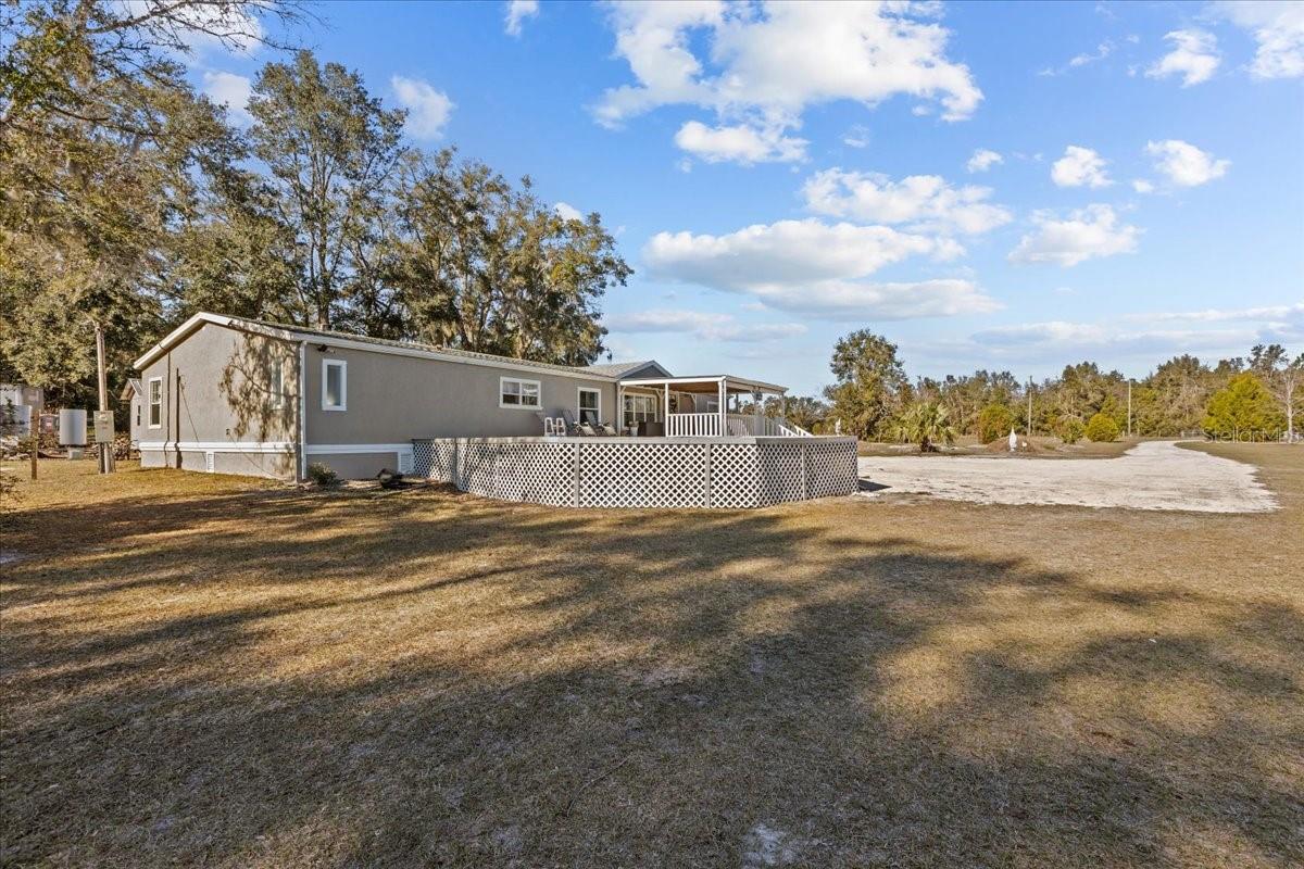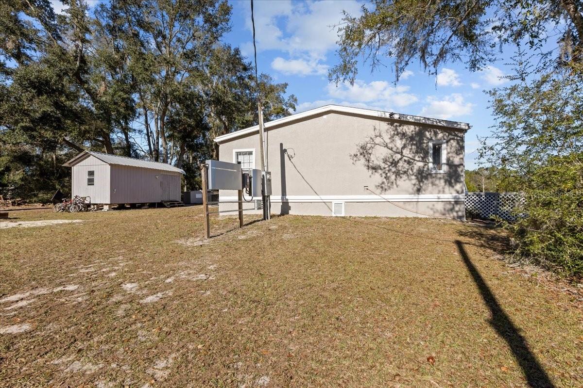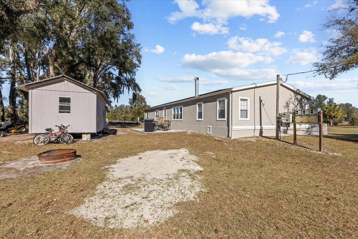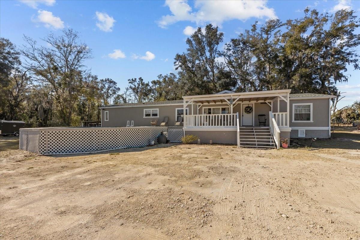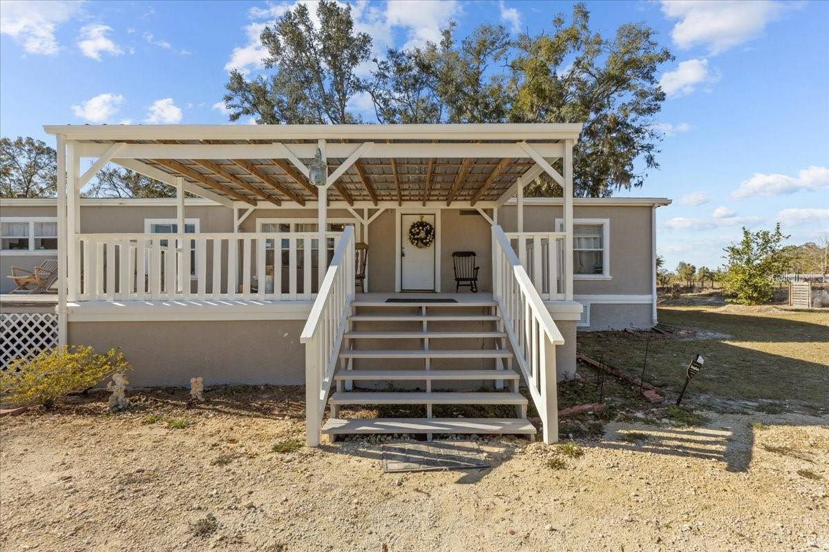 $54,000 SOLAR Package installed on home with batteries to store the energy! Highly energy efficient home. This gorgeous Homes of Merit, 4 bedroom/3 bathroom home is just like a site built home. Totally upgraded and remodeled. All exterior is solid stucco siding, dual pane windows throughout, 2x6 exterior walls, interior is 100% drywalled. Brand new laminate flooring throughout , custom cabinetry in the kitchen along with brand new granite countertops throughout the home. Roof is only 3-4 years old, AC system is brand new and well is only 2 years old. As you enter this home you will fall in love with the massive floor plan. You enter a family room and easily transition into the dining room area and kitchen area. Bright , clean kitchen loaded with gorgeous cabinets and countertops , stainless steel appliances. A cozy living room with real wood burning fireplace. Master bedroom is spacious with a full walk in closet. Master bathroom is total remodeled with a gorgeous tile shower, upgraded toilet and bidet. Laundry room is spacious and offers an exit door into the backyard. To the right of the family room you will find the 3 additional bedrooms. All spacious with 2 additional bathrooms. Come hang out side and enjoy the POOL , lounge on the gorgeous custom deck or have coffee /tea on the beautiful front porch. The home sits perfectly on nearly 5 acres in the gorgeous countryside, fully fenced with an entry gate. You'll also see a very nice outbuilding work shop/storage , everything you need to work in or store your stuff with 3 bays for parking your vehicles or toys. A storage container/trailer that stays as well as a shed for storage. BONUS , this home also has a RV 50amp hook up with septic connection . The property is loaded with fruit trees galore, mango, apple, lemon, figs, and peaches. Enjoy super low energy cost with SOLAR. This home has it ALL, call today for more information and YOUR tour!
