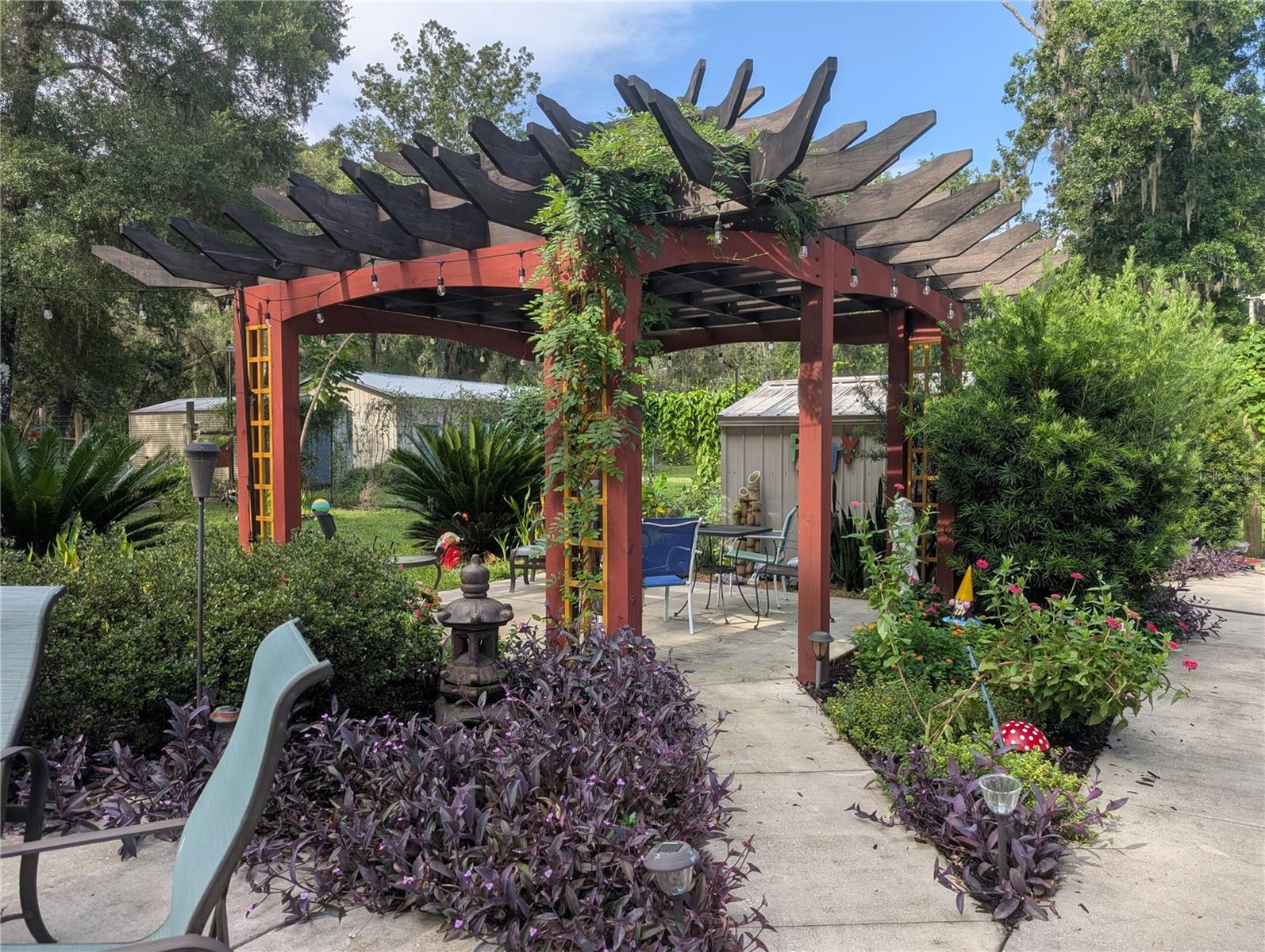 Beautiful custom 3BR/2BA concrete block stucco ranch home set on 10.3 acres, offering privacy, space, and comfortable living. Inside, a striking rock fireplace anchors the main living area, creating a warm and inviting atmosphere. The Florida room is designed for entertaining with a large wet bar and a spacious layout ideal for gatherings. The kitchen features a large walk-in pantry, providing ample storage and convenience for family and entertaining needs. Outside, the home features a 2-car attached garage, a 2-car carport, and a 3-car detached garage with workshop, along with a large parking apron and paved driveway providing ample space for vehicles, RVs, and guests. The expansive rear patio includes a gas grill supplied by a buried propane line that runs directly to the grill area with no portable propane tanks needed and a custom-built pagoda-style pergola, creating an ideal outdoor entertaining space. The property also includes a whole-house generator fueled by the same buried propane tank, automatically powering the home including HVAC and appliances during outages and seamlessly restoring service once power returns. There is a dedicated RV hookup for added convenience. In the backyard, a separate plumbing and septic system independent from the main house is ideal for an RV or future use. Approximately five acres surrounding the home are beautifully landscaped, creating a park-like setting with perennial gardens, secret garden walkways, and a remarkable variety of established trees and plantings, including live oak, magnolia, satsuma orange trees, cabbage palms, sago palms, catalpa, pawpaws, bamboo, ligustrum, slim bottle brush, Simpson stopper, Ocala anise bushes, flatwoods plum, bougainvillea, and chaste trees. The remaining acreage is left relatively untouched and wooded, providing natural privacy, abundant wildlife habitat, and room for future use or enjoyment. Longleaf pine and hickory seedlings are planted throughout the open acreage, and a fenced backyard, garden oasis, and abundant wildlife including deer and turkeys complete this exceptional property. Conveniently located just five minutes from town and close to schools, shopping, a golf course, Suwannee River State Park with natural springs, the Gulf of Mexico, Cedar Key, and with easy access to Gainesville. Don’t miss the opportunity to see this one-of-a-kind property! Schedule your private showing today!