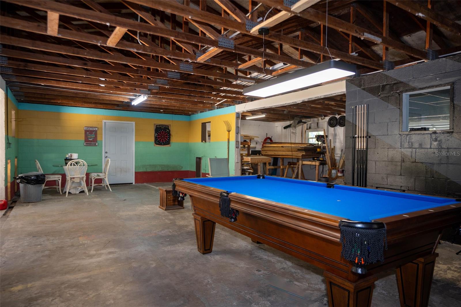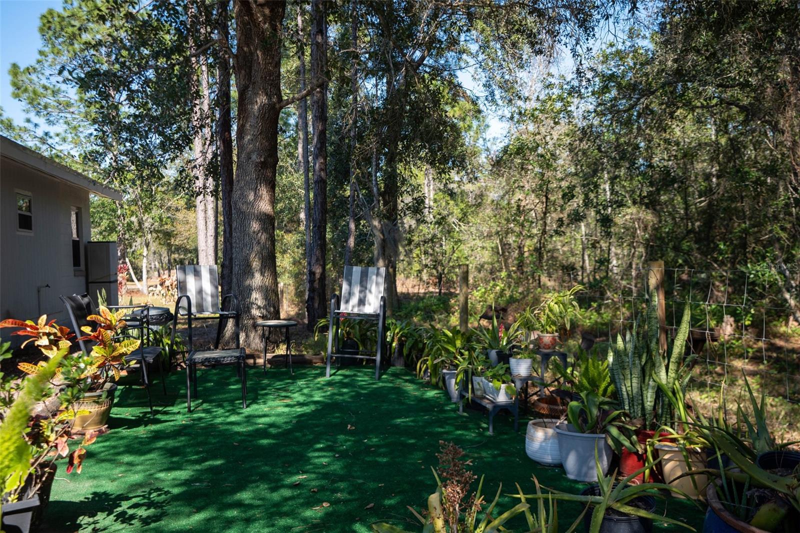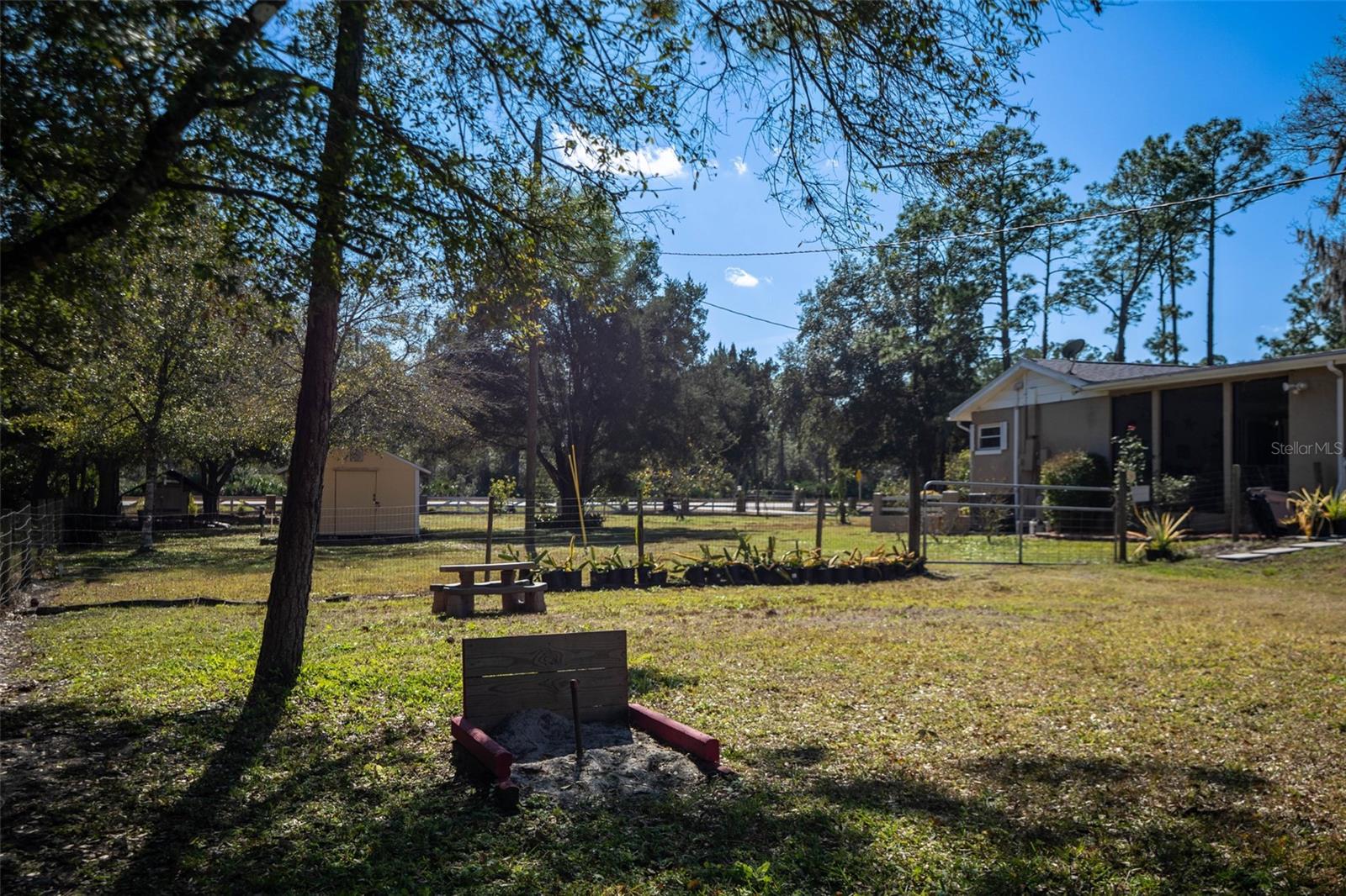 Modern Comfort Meets Country Charm. Welcome home to this beautifully private and updated 5-bedroom, 2.5-bath, split plan, 2.36 acre farmhouse-style retreat. High and dry, block construction with hurricane windows and new roof, this home fully fenced and gated for added security. Thoughtful upgrades include a newly upgraded well filtration system, updated electric, new driveway, new flooring, fully renovated bathrooms, custom wet bar, new heat pump, 2019 water heater , two modern AC’s on the main house and new designer closet in the master suite. The expansive front yard has sprinklers for the maturing fruit trees. Currently you can enjoy pink or white guava, avocado, grapes, dragon fruit, bananas, grapefruit, and pineapple. Soon you will have tangerine, lemon, pear, and peaches. Located near the fruit trees is a charming chicken coop ready for you to enjoy farm fresh eggs. Next to the coop is the well house, complete with electricity, lights, protective roofing and cement pavers for easy cleaning. This is a robust system that services the entire house and more. Yes, no water bills! Step out of your living room or the master bedroom onto a large updated screened lanai overlooking a built-in pool resurfaced in 2019, and a park size backyard with inviting sitting areas, a custom built fire-pit, a raised berm backstop for archery type activities, horseshoe pits, and a cement bench overlooking the serene pond laced with Lilly pads. The property has a split fence plan for pets and is large enough for frisbee and is perfect for relaxing, unlimited gardening or entertaining. Hose bibs and electric are strategically located around the property allowing you to water plants with ease and illuminate the exterior of the barn, the fire-pit area and the horseshoe pit for evening activities. A standout feature is the massive newly painted block barn featuring a cement ramp, leading to the garage door and patio area . This building has separate electric, new roof, new hurricane windows, new electric garage door and two new RV electrical outlets. This well lit barn/outbuilding is so large it currently houses tractor and lawn equipment, an air conditioned gym, woodworking area, storage and hobby area, complete with an entertainment section currently housing a pool table and darts. Perfectly positioned halfway between Downtown Orlando and NASA, this property offers the rare balance of rural privacy along with convenient access to a Publix grocery store, Waterford lakes shopping, gas stations and restaurants. It’s a quick 25 minutes to the fun of downtown Orlando and 15 minutes to Titusville, the Space Coast and beaches. This one-of-a-kind homestead delivers space, freedom, and tranquility without sacrificing location or modern updates. Bring your boots, your hobbies, and your dreams—this is Central Florida farm life done right! A must see for prequalified buyers.