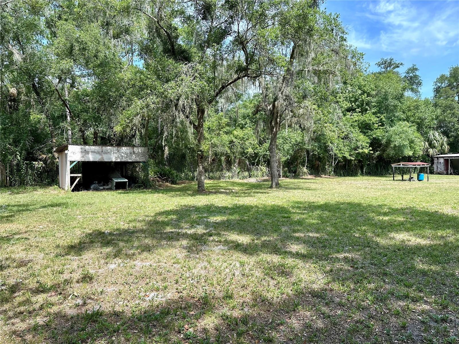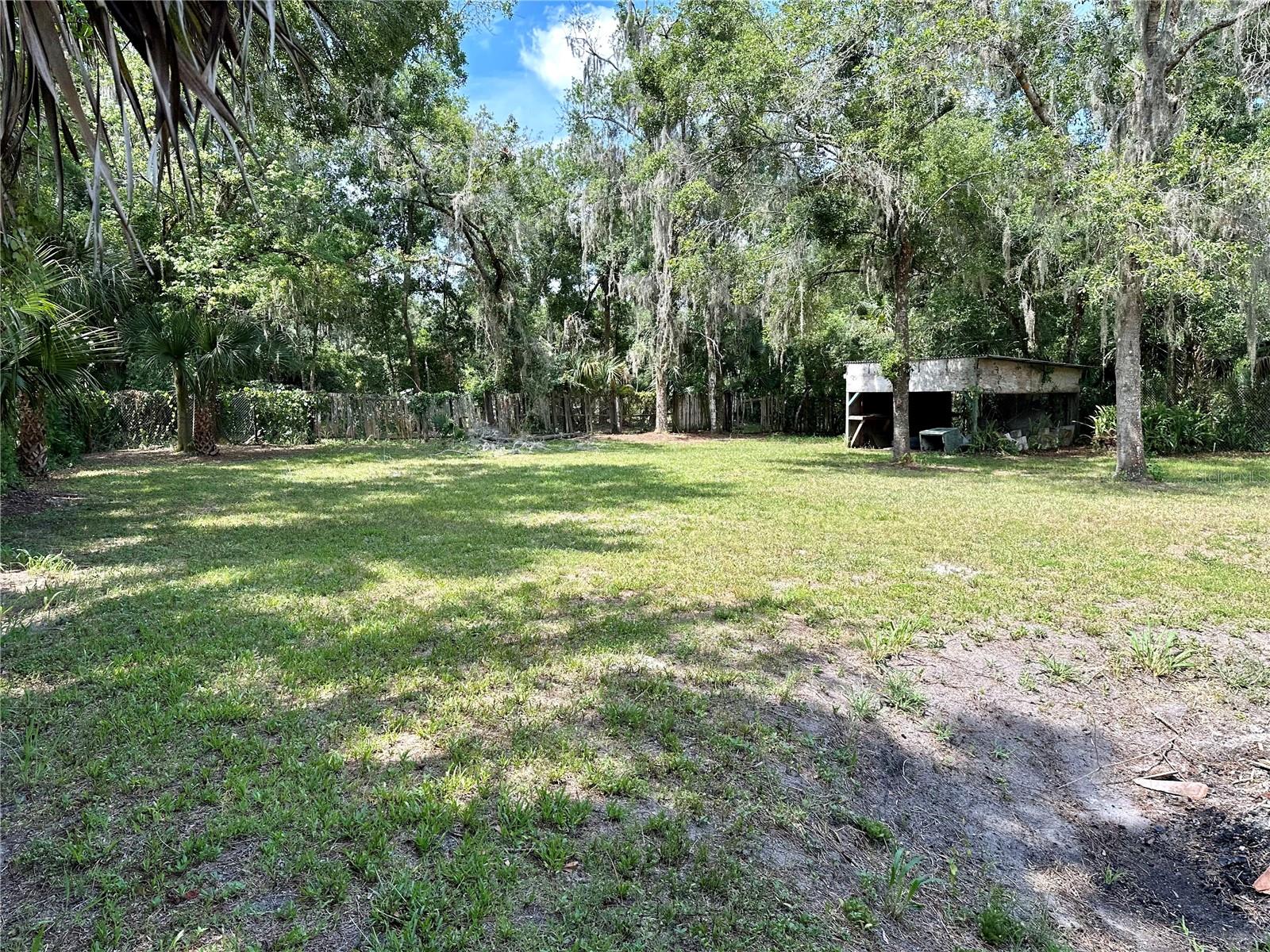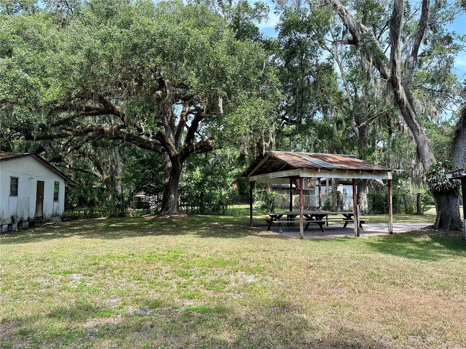 One acre of land covered with beautiful oak trees. Enough room to store all of your play toys. That's right, there is NO HOA here. This two bedroom one bath home has recently been remodeled throughout with new paneling on the walls and ceilings. New carpeting throughout, new kitchen cabinetry, and countertops. The bonus room features a real wood-burning Stone fireplace. There is a huge storage shop building in the back with a side concrete slab for all of your projects or parking. There is currently 2 wells and 2 septic tanks on the property. A little gazebo and a covered area for friends and family to gather. You are located in between Orlando and Titusville, so the commute to either is quite short. Florida's Space Coast Beaches are only 30 minutes away. Schedule your viewing soon.