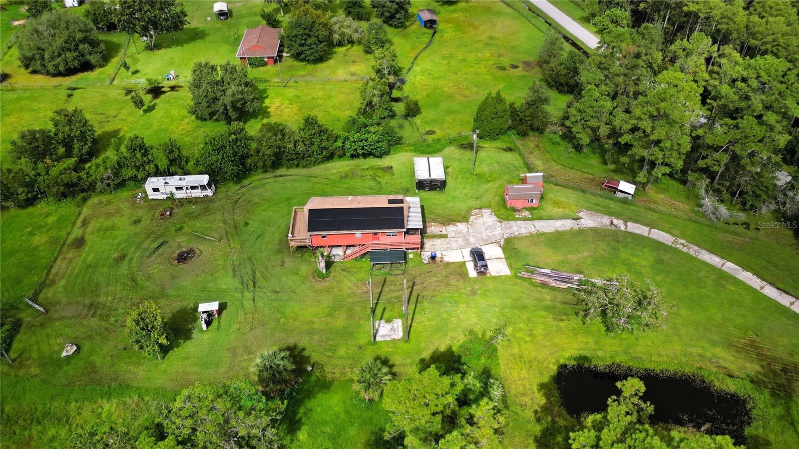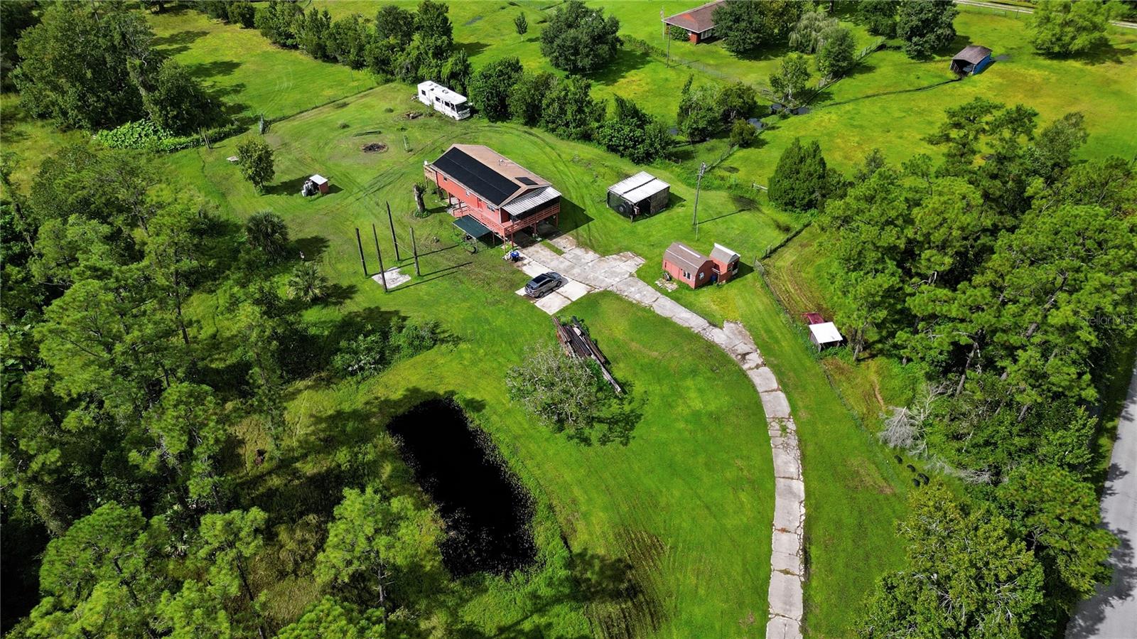 Looking for some serious space?! You found it here! Almost 5 acres of prime real estate. Professional photos and details coming soon. Owner enhancements/costs: Well filter system with chlorine and salt softener ($4,000). Wire and posts with gates to 3 pastures with water ($3,500). Spray expanding foam in attic ($5,500) Pole barn for tractor ($1,500) 30 by 70 - 6 ft deep pond ($3,500) Pressure treated back deck 15 by 30 ft ($8,000) Half bath added ($6,000) 2 stall bath house with heated shower ($10,000) Solar powered electric main gate opener ($3,000) Solar panels on roof ($30,000) 20 ft connex storage unit ($5,000) New well pump motor ($3,500) RV power and water hook up ($6,500) Hurricane windows and doors installed north and south facing ($6,000)