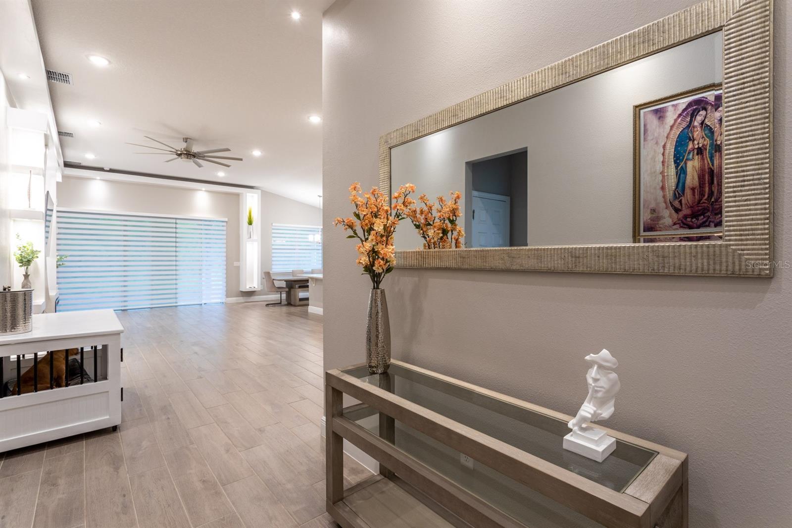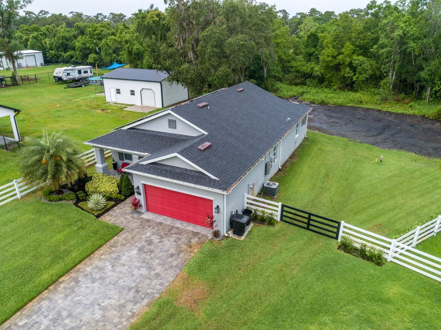 This gorgeous house is waiting for you!!! It offers three bedrooms and two bathrooms on oversized lot of 0.66 acres with no rear neighbors with a beautiful view of conservation area. It is a great opportunity to live a few minutes away from Lake Mills and have an access to Lake Mills Boat Ramp. You will enjoy fishing, boating, jet skiing all year long. The front door opens up to a large family room/dining room/ kitchen combo which is perfect for hosting large parties. The kitchen includes wood cabinets, quartz countertops, Kitchen Aid stainless steel appliances, and recessed lighting. The sliding doors in the family room fill your home with natural light. The large master bathroom includes a walk-in shower and double vanity with quartz countertops. Ideally located to be zoned for Seminole County’s top notch schools and is not far from major shopping areas. Don’t miss your chance to have everything you’ve wanted in your new home! The house was built in 2021 and solar panels installed in 2022. Solar Panels significantly reduce energy bills, providing both environmental sustainability and cost savings. There is no HOA, so you can bring a boat, RV or trailer. The seller cleared the lot at the backyard, added fertilized soil and planted grass seeds.