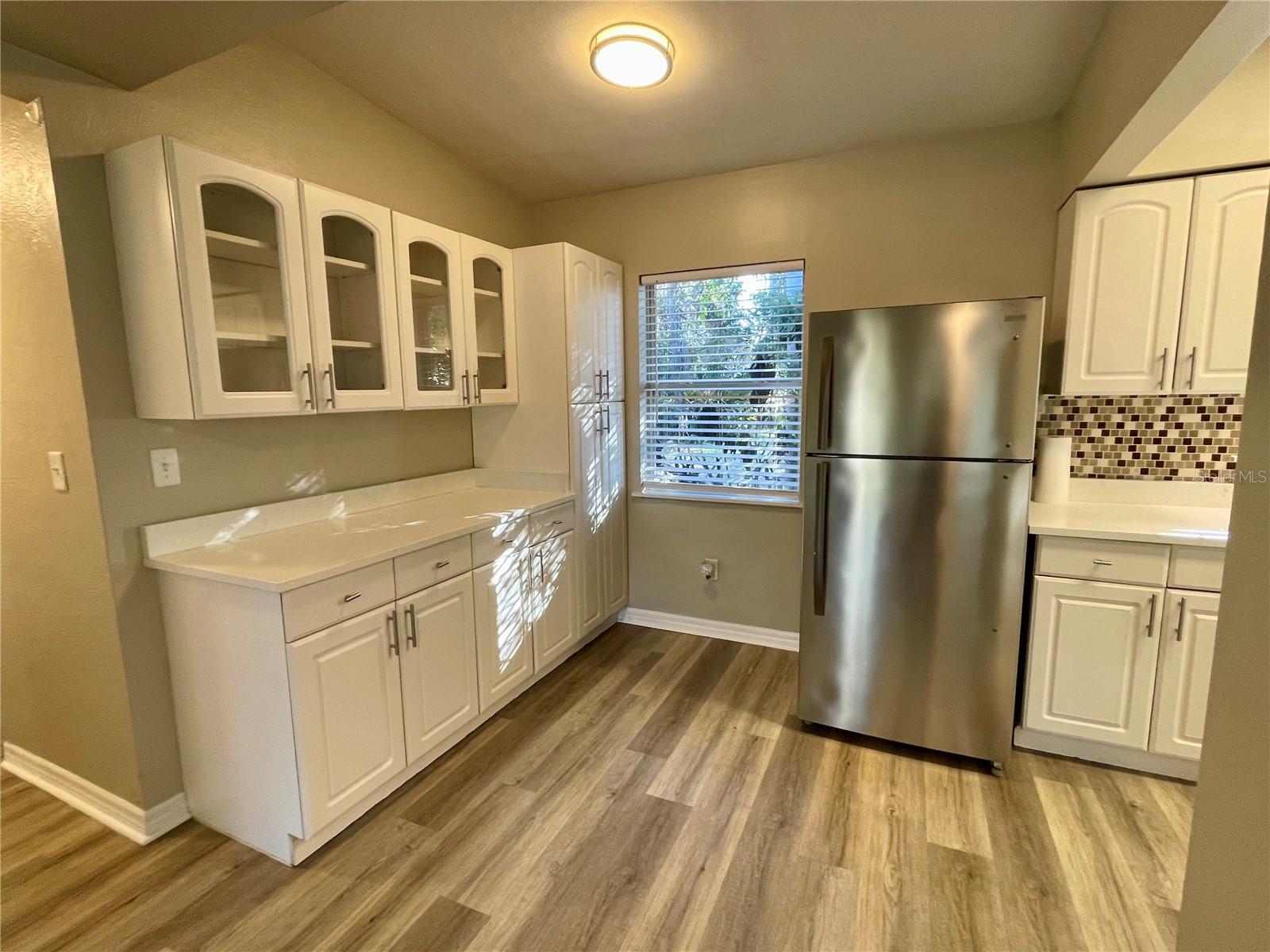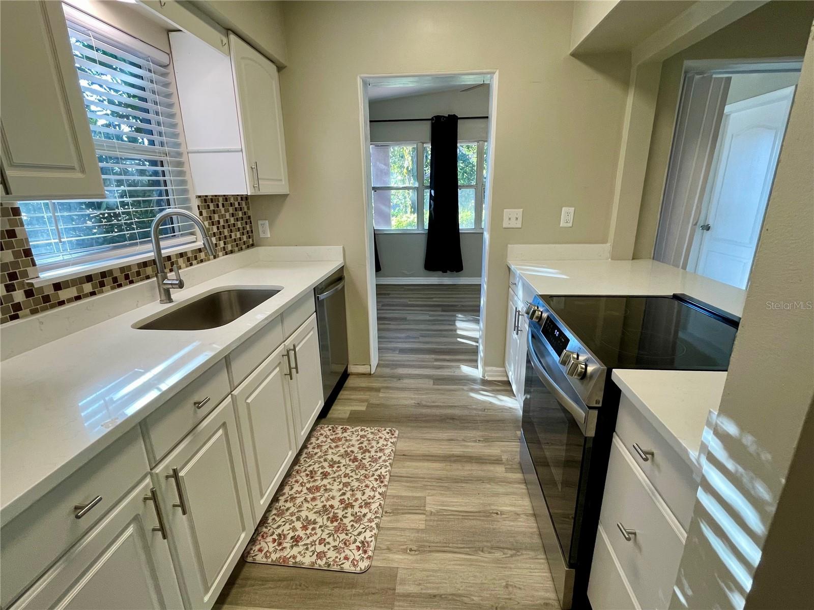 Fully Renovated Corner-Lot Gem with Lake Views! Situated on a .32-acre corner lot, this move-in-ready beauty offers waterfront views directly across the street and modern updates throughout. Inside, you’ll find a bright, fresh interior highlighted by luxury vinyl plank flooring, plush carpeting, and updated lighting. The kitchen has been completely refreshed with quartz countertops, and stainless steel appliances. The updated bathroom provides a clean, modern feel, and a dedicated laundry room adds convenience. In 2023, major home improvements included a new electrical panel and wiring, a new A/C system, and a new water heater. Modern comfort meets scenic lake views in this charming property, ideally located near shopping, dining, outdoor trails, and highly rated schools. With its spacious lot, extensive renovations, and desirable setting, this home is truly move-in ready and a must-see.