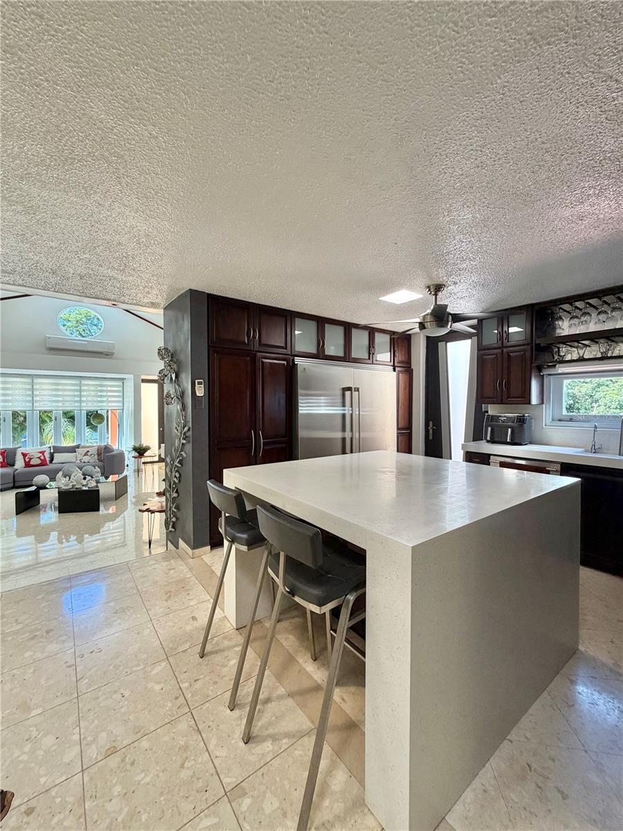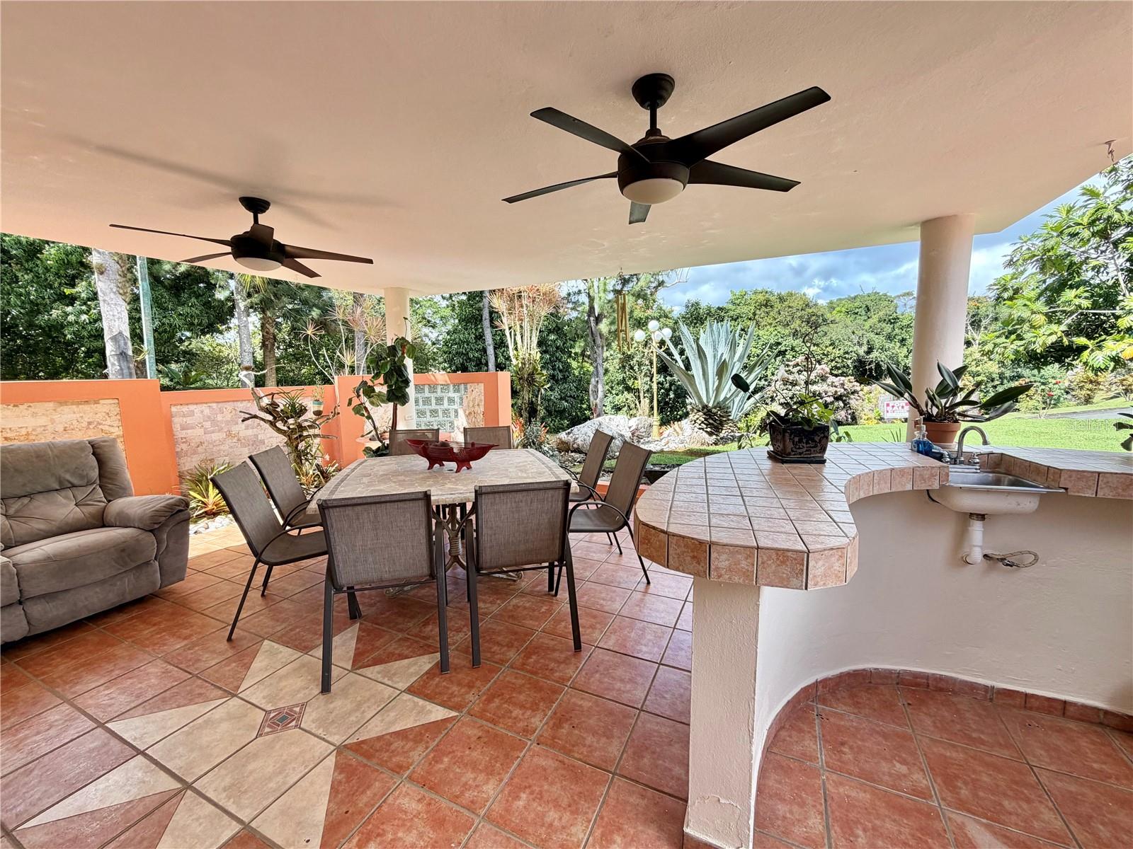 Spectacular four-bedroom, four-bathroom residence, fully remodeled, combining luxury, functionality, and privacy in a privileged natural setting within Sabanera de Cidra community. The home features marble flooring throughout, metal-and-glass windows and doors, metal laundry cabinets, and fully remodeled bathrooms and kitchen. The kitchen is equipped with a refrigerator/freezer duo, an additional freezer, a gas stove with double oven, and a standard microwave. The property is delivered fully equipped with three plasma TVs, four air conditioning units (one 36 BTU mini-split, two 24 BTU units, and one 12 BTU unit), curtains in the living room, bedrooms, and kitchen, a solar water heater, a 600-gallon aluminum cistern, a roof sealed with Danosa, reinforced storm shutters throughout the residence, and two spacious storage rooms. The interior spaces are enhanced with coffered ceilings and fascia lighting in the living and dining areas, an integrated sound system with built-in speakers in the living room and terrace, a remodeled façade, a staircase with genuine Manatí stone slabs, and exquisite landscaping featuring 11 ornamental stones, bromeliads, and tropical vegetation. At the rear, the property offers an additional terrace and planted areas with avocado trees, plantains, breadfruit, mango, and other fruit trees, providing complete privacy as it borders natural woodland and is surrounded by areca palms. All of this is located within a gated community with 24/7 security, controlled access, and resort-style amenities.