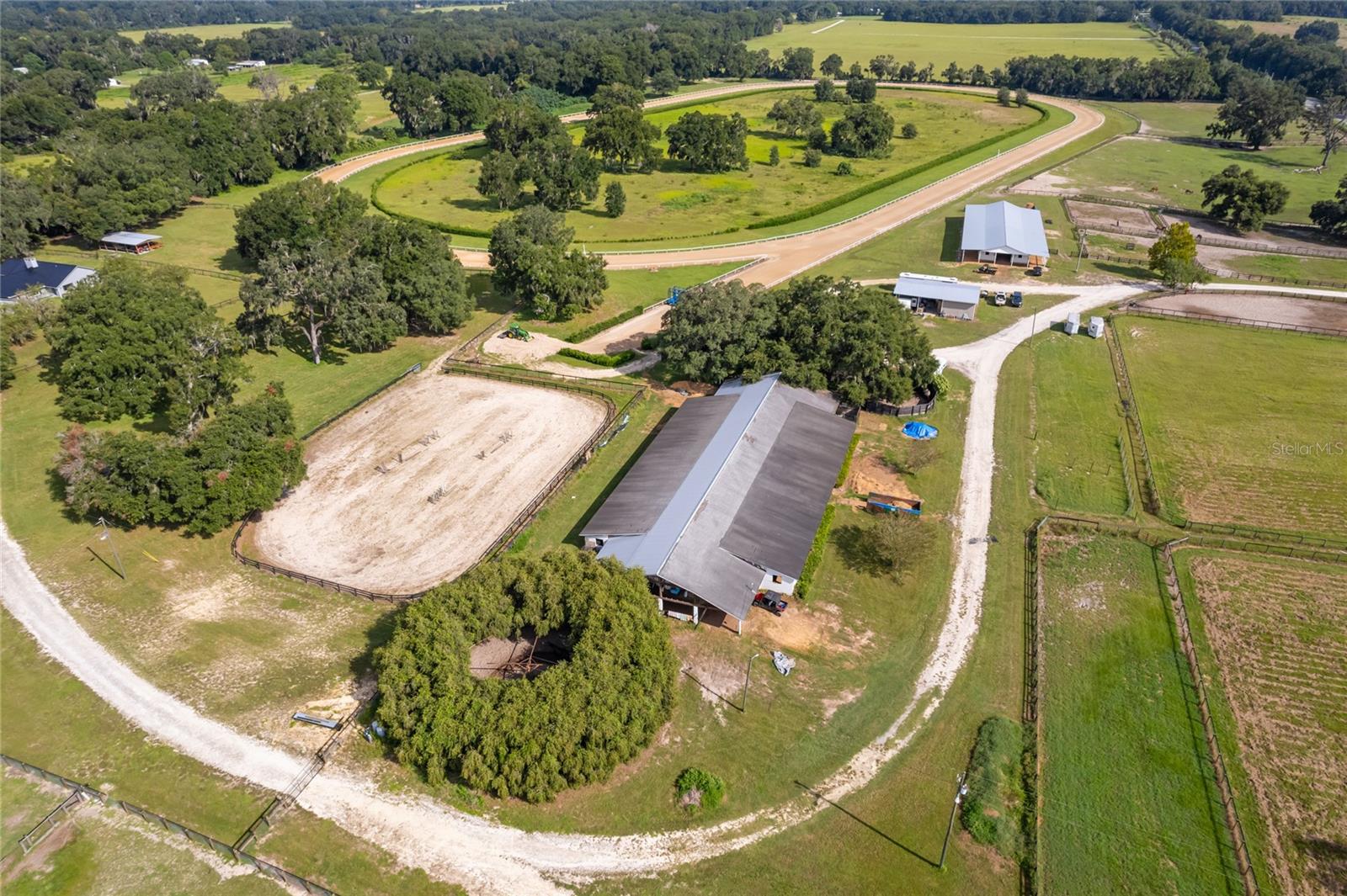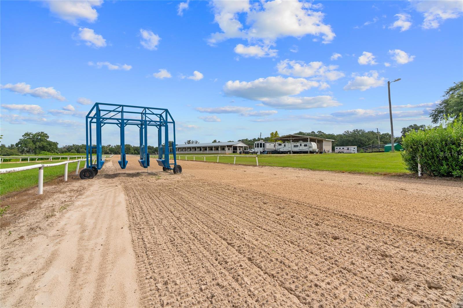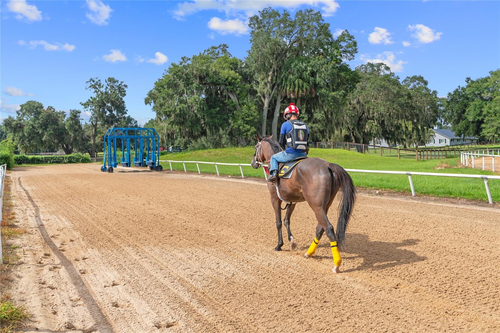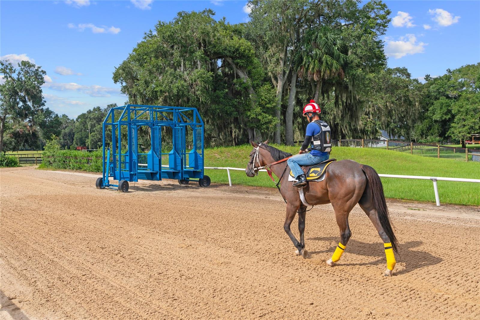 Are you in search of a premier, income-generating Thoroughbred Training Facility? Look no further than this stunning 41.41-acre property in Marion County, renowned for its beauty and versatility. The property boasts three barns with a total of 60 spacious 12x12 stalls, all currently leased. Highlights include a hot walker nestled among picturesque bottle brush trees, a shaded round pen, and an irrigated 5/8-mile dirt track with a clay base, along with a ½-mile turf track. The track is an authorized training venue with Equibase, where Daily Works are officially recorded. Recently graded by JD Wright and designed by Kentucky's renowned firm for Remi Gunn, one of Florida’s pioneering female jockeys, this track has seen training by prominent names such as Steve Gaffalione, Monte Thomas, and Janet Del Castillo. Tyler Gaffalione, a 2015 Eclipse Award-winning jockey, honed his skills here. Additional features include a refurbished 3-place training starting gate, a 2023 Custom Carolina Arena 12-foot track drag, two wells, a Keystone Super-Lift “Outback” trailer with full water, septic, and electricity connections, four RV hookups, and a 600 sq. ft. shed with extra covered space for vehicles and equipment. The property also includes a 2020 Can-Am ATV, a 2023 Can-Am 6-Wheel UTV, and more. There's a newly graded 3-acre parcel ready for your custom home with a separate gated entrance. This high and dry land, with its gentle rolling hills, is surrounded by fenced paddocks and a hacking alley. The track's infield presents an excellent opportunity for a cross-country schooling field or a covered arena. Conveniently located near I-75/441 and several local venues such as WEC, HITS, and the New Jockey Club, this property offers potential for additional income, with space to accommodate up to 100 stalls. Bring your horses to a farm with a history of producing champions!