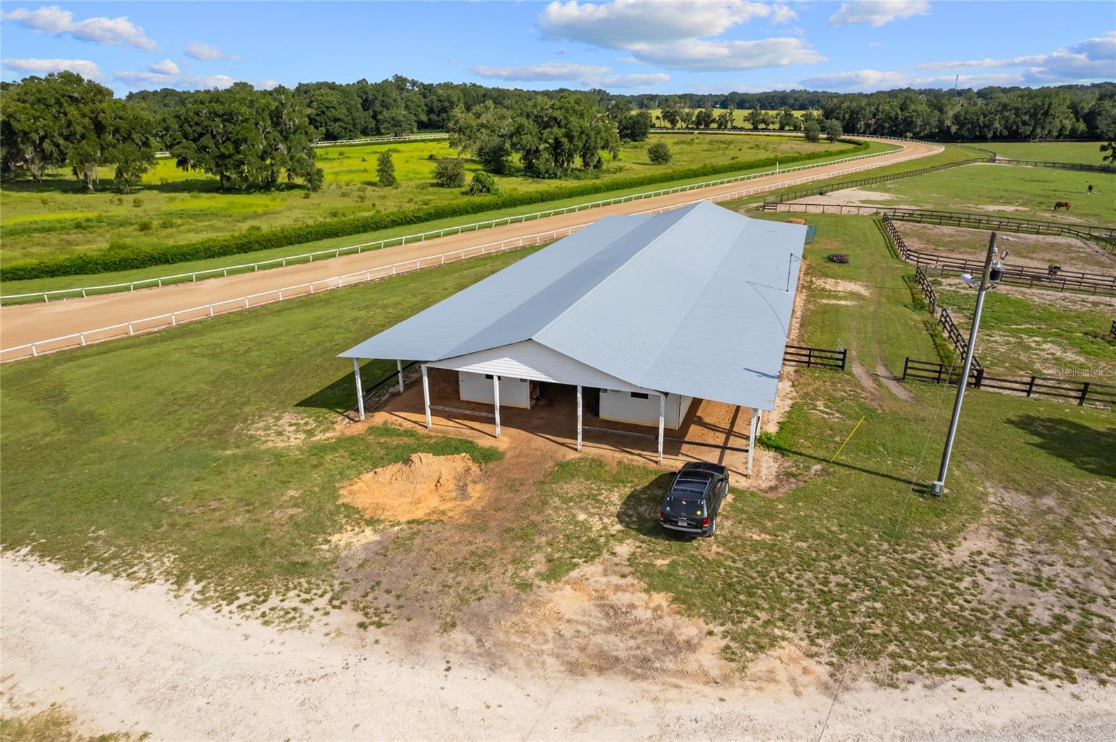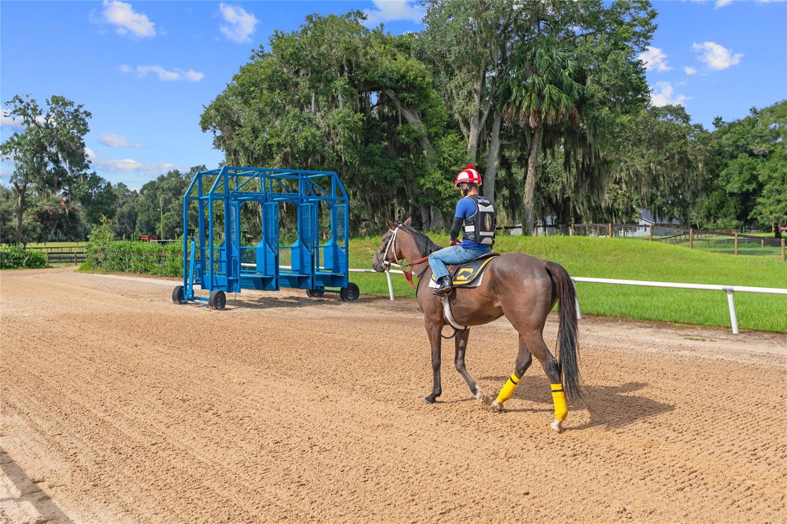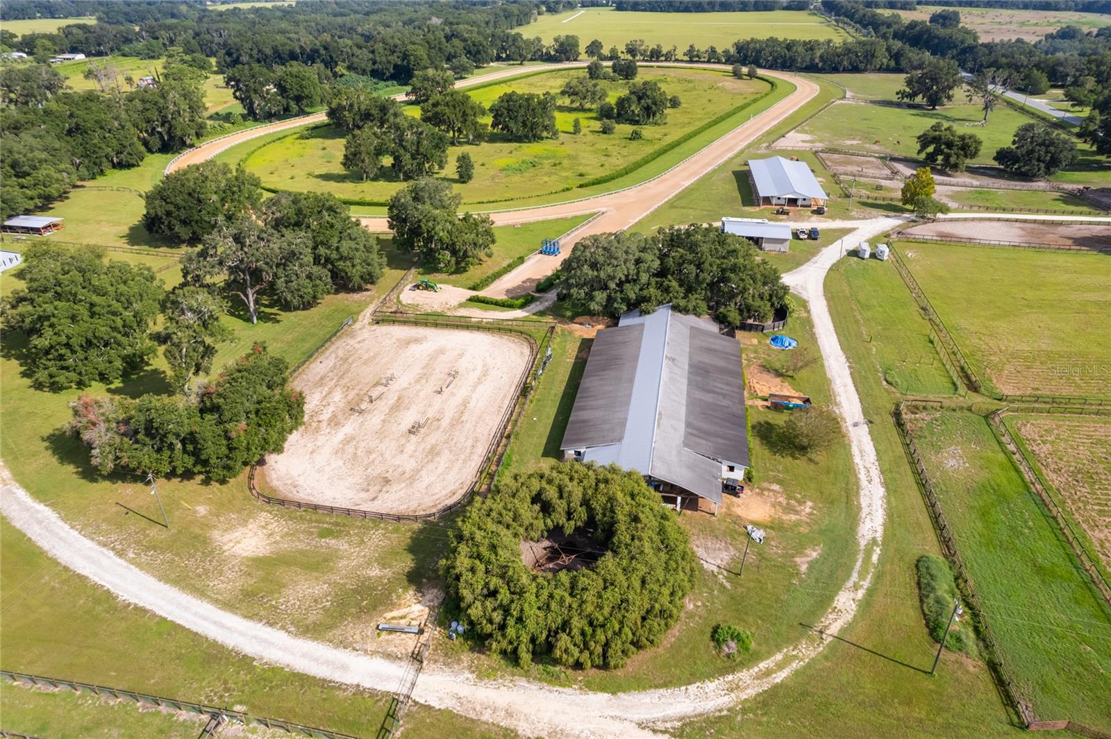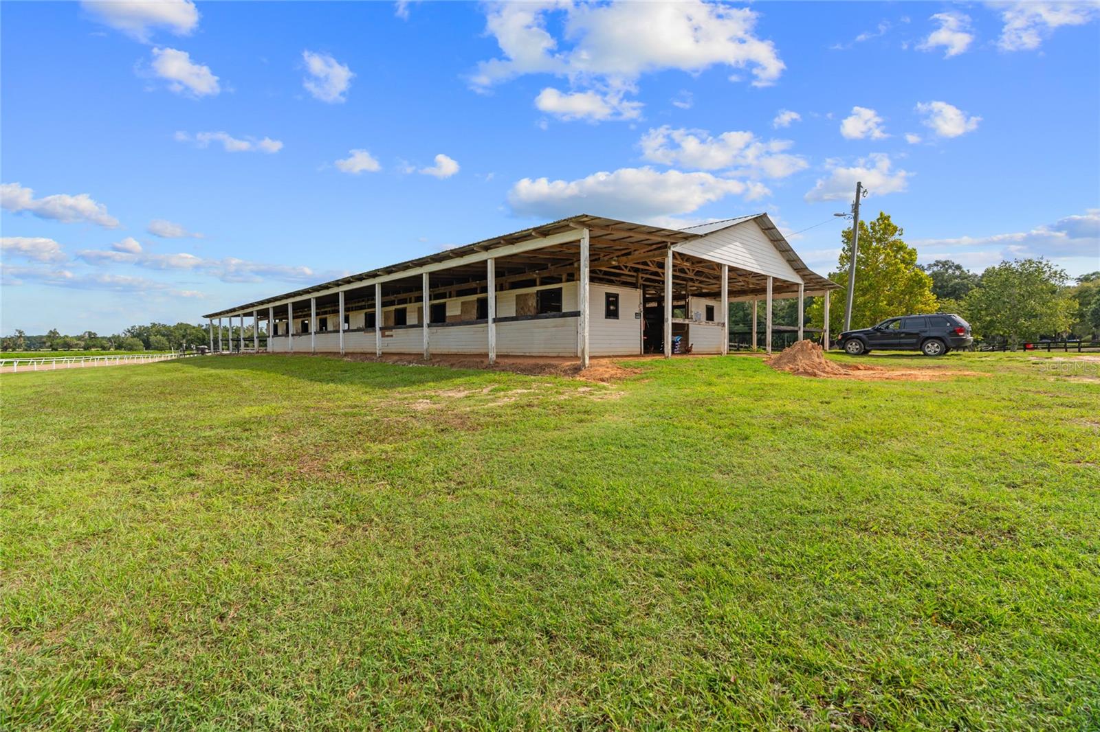 Are you in search of a premier, income-generating Thoroughbred Training Facility? Look no further than this stunning 41.41-acre property in Marion County, renowned for its beauty and versatility. The property boasts three barns with a total of 60 spacious 12x12 stalls, all currently leased. Highlights include a hot walker nestled among picturesque bottle brush trees, a shaded round pen, and an irrigated 5/8-mile dirt track with a clay base, along with a ½-mile turf track. The track is an authorized training venue with Equibase, where Daily Works are officially recorded. Recently graded by JD Wright and designed by Kentucky's renowned firm for Remi Gunn, one of Florida’s pioneering female jockeys, this track has seen training by prominent names such as Steve Gaffalione, Monte Thomas, and Janet Del Castillo. Tyler Gaffalione, a 2015 Eclipse Award-winning jockey, honed his skills here. Additional features include a refurbished 3-place training starting gate, a 2023 Custom Carolina Arena 12-foot track drag, two wells, a Keystone Super-Lift “Outback” trailer with full water, septic, and electricity connections, four RV hookups, and a 600 sq. ft. shed with extra covered space for vehicles and equipment. The property also includes a 2020 Can-Am ATV, a 2023 Can-Am 6-Wheel UTV, and more. There's a newly graded 3-acre parcel ready for your custom home with a separate gated entrance. This high and dry land, with its gentle rolling hills, is surrounded by fenced paddocks and a hacking alley. The track's infield presents an excellent opportunity for a cross-country schooling field or a covered arena. Conveniently located near I-75/441 and several local venues such as WEC, HITS, and the New Jockey Club, this property offers potential for additional income, with space to accommodate up to 100 stalls. Bring your horses to a farm with a history of producing champions!