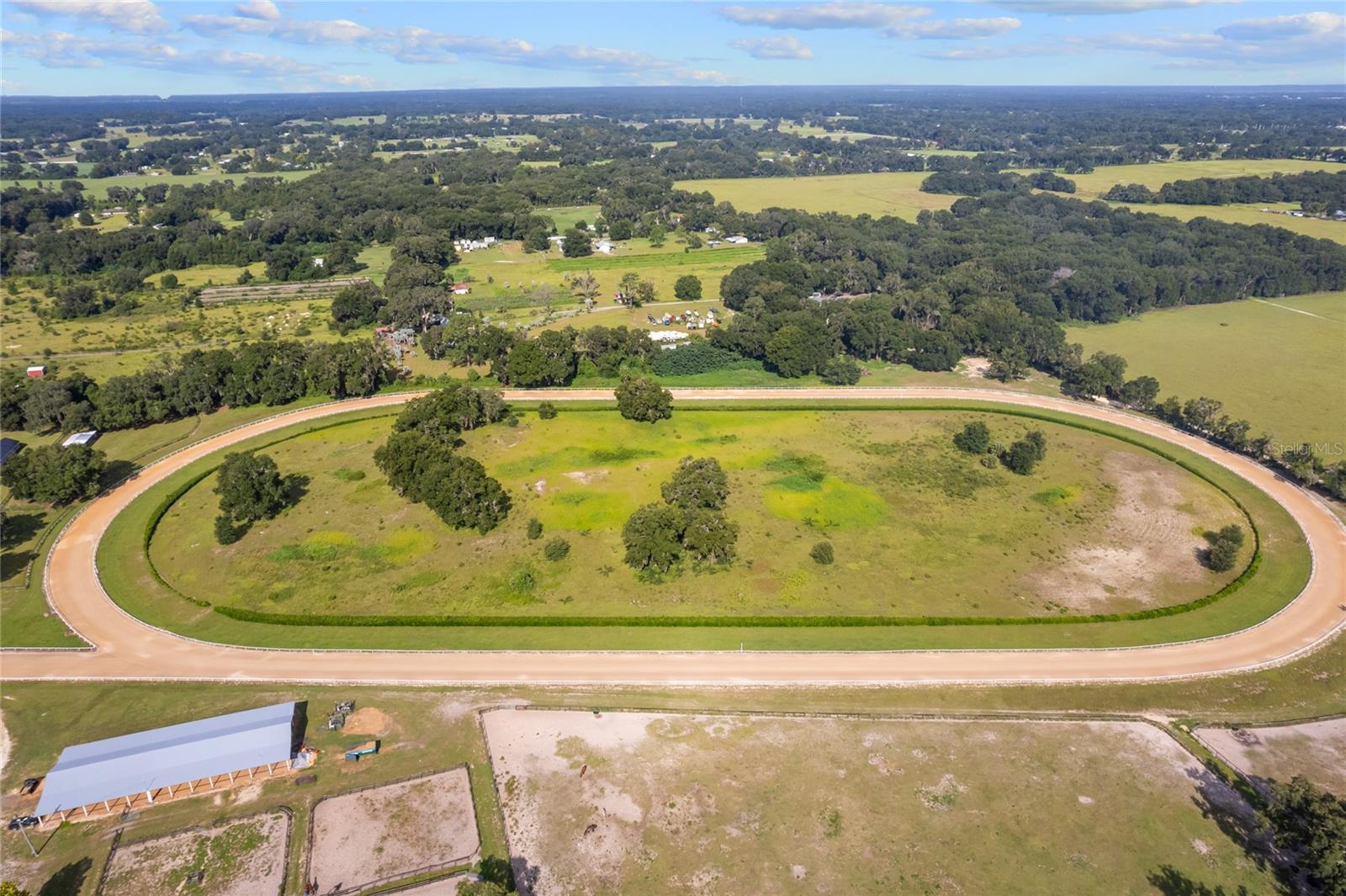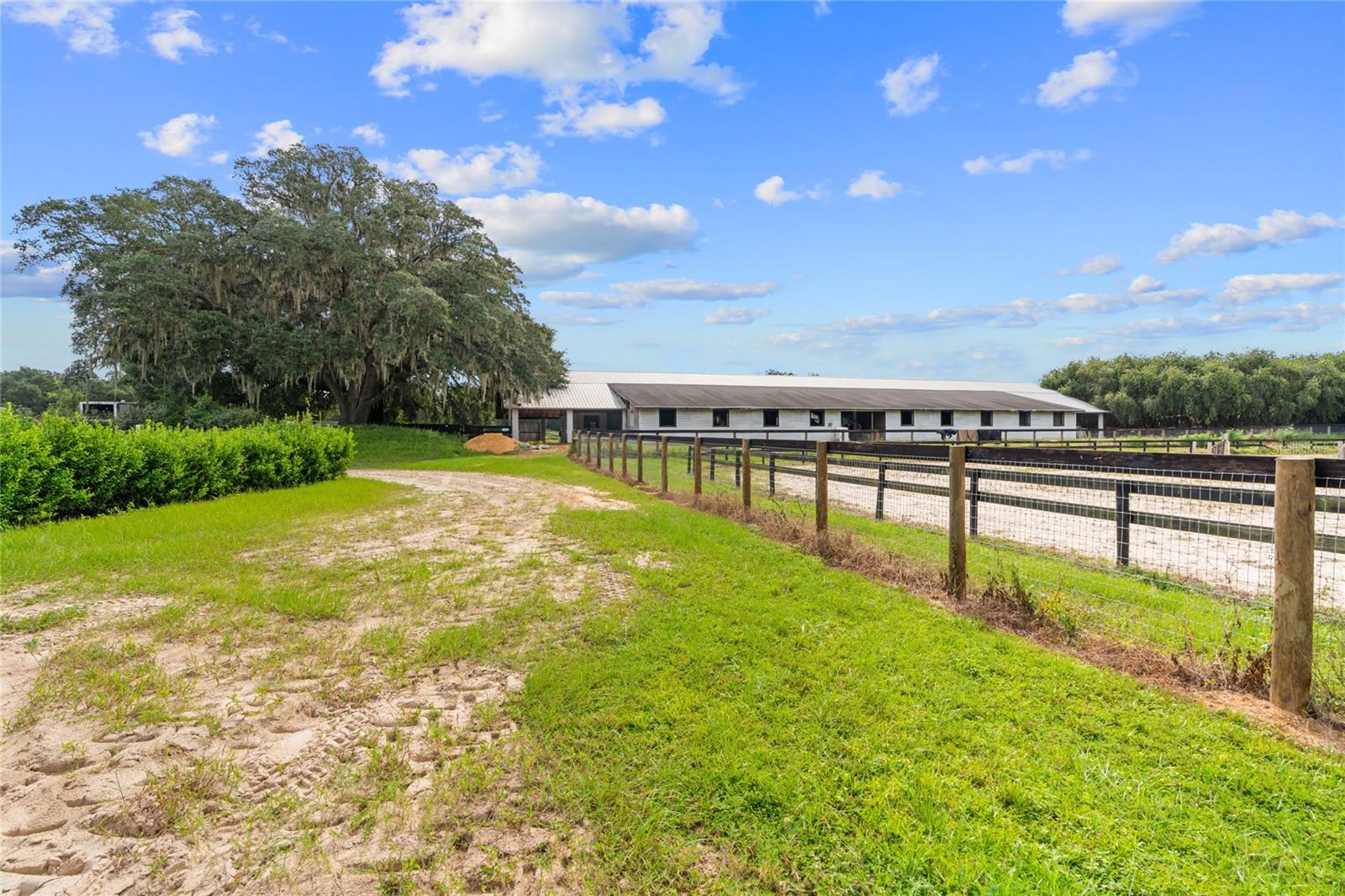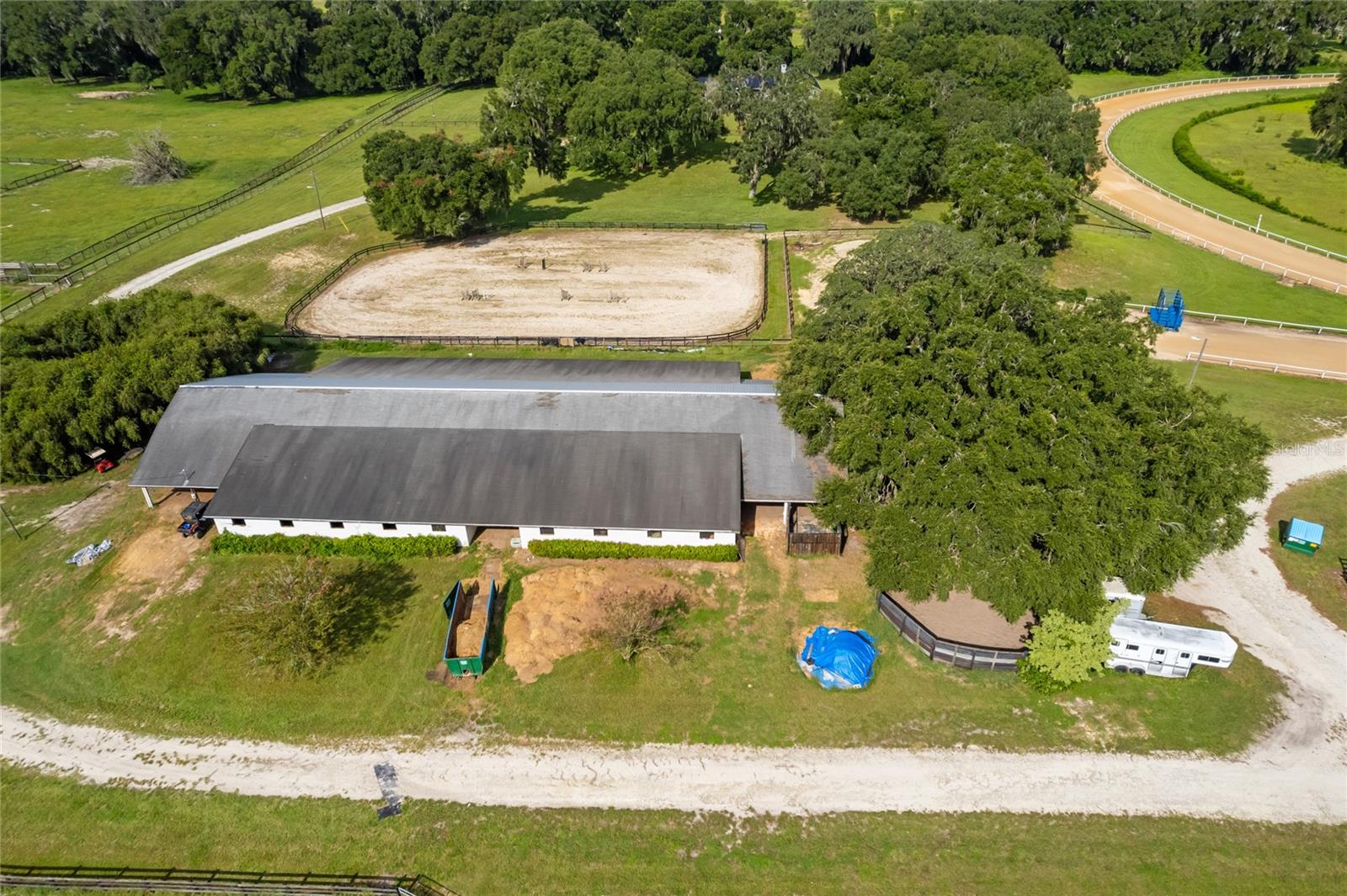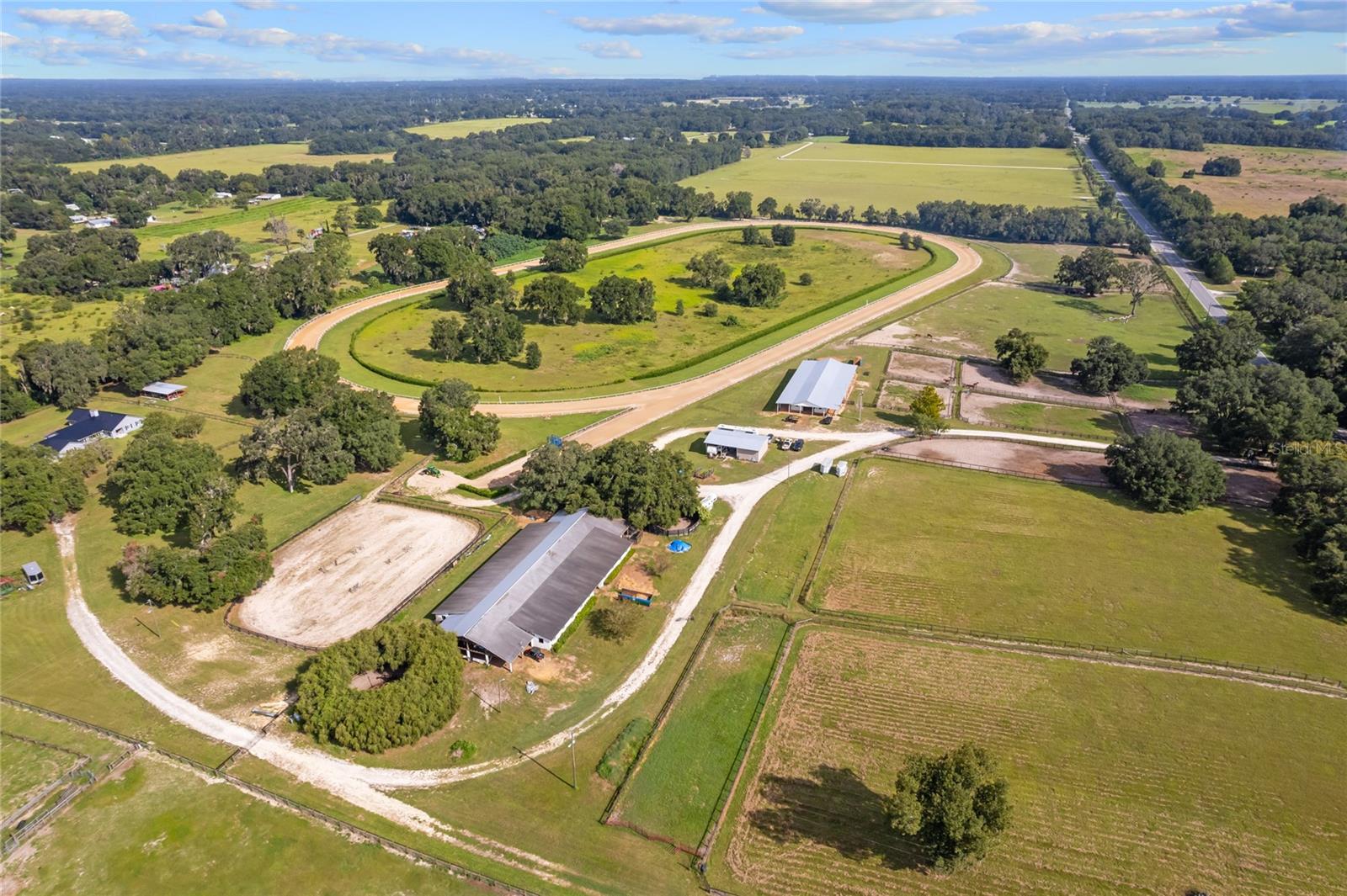 Discover a premier, income-generating Thoroughbred Training Facility on 41.41 stunning acres in Marion County, Florida. This property features three barns with a total of 60 spacious 12x12 stalls, all currently leased, ensuring steady income. Equestrian amenities include a hot walker nestled among bottle brush trees, a shaded round pen, an irrigated 5/8-mile dirt track with a clay base, and a ½-mile turf track. The track, recently graded by JD Wright and designed by Kentucky’s renowned firm for pioneering female jockey Remi Gunn, is authorized by Equibase for official Daily Works. Esteemed trainers such as Steve Gaffalione, Monte Thomas, and Janet Del Castillo have trained here, and it has been a site where Eclipse Award-winning jockey Tyler Gaffalione honed his skills. Additional features include a refurbished 3-place starting gate, a 2023 Custom Carolina Arena track drag, two wells, a Keystone Super-Lift “Outback” trailer with full hookups (water, septic, and electricity), four RV hookups, and a 600 sq. ft. shed with extra covered space for vehicles and equipment. The property also includes a 2020 Can-Am ATV and a 2023 Can-Am 6-Wheel UTV. A newly graded 3-acre parcel is ready for your custom home with a separate gated entrance, surrounded by fenced paddocks and a hacking alley. The track's infield offers the potential for a cross-country schooling field or covered arena. Ideally located near I-75/441 and close to top venues like WEC, HITS, and the New Jockey Club, this property combines scenic beauty with high income potential, making it a rare opportunity in Marion County's rolling hills.