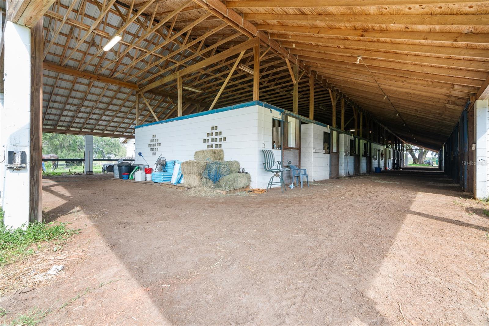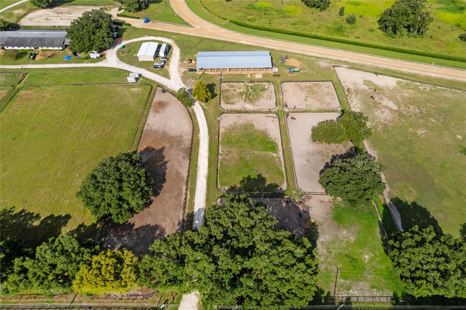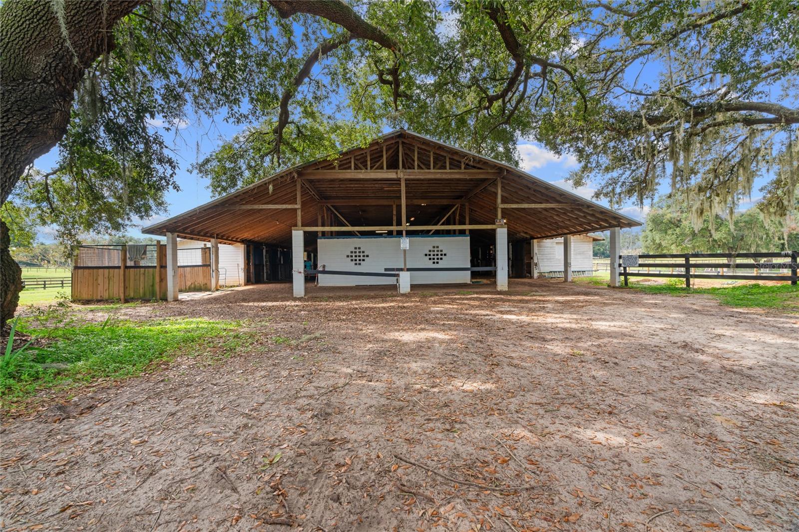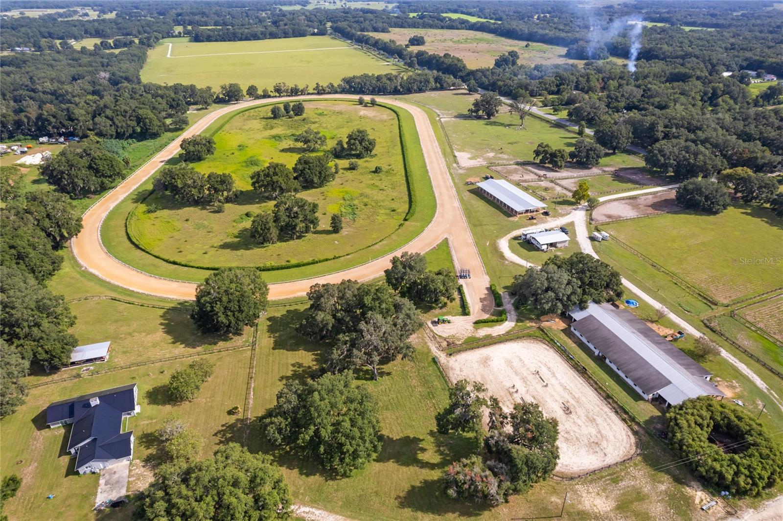 Discover a premier, income-generating Thoroughbred Training Facility on 41.41 stunning acres in Marion County, Florida. This property features three barns with a total of 60 spacious 12x12 stalls, all currently leased, ensuring steady income. Equestrian amenities include a hot walker nestled among bottle brush trees, a shaded round pen, an irrigated 5/8-mile dirt track with a clay base, and a ½-mile turf track. The track, recently graded by JD Wright and designed by Kentucky’s renowned firm for pioneering female jockey Remi Gunn, is authorized by Equibase for official Daily Works. Esteemed trainers such as Steve Gaffalione, Monte Thomas, and Janet Del Castillo have trained here, and it has been a site where Eclipse Award-winning jockey Tyler Gaffalione honed his skills. Additional features include a refurbished 3-place starting gate, a 2023 Custom Carolina Arena track drag, two wells, a Keystone Super-Lift “Outback” trailer with full hookups (water, septic, and electricity), four RV hookups, and a 600 sq. ft. shed with extra covered space for vehicles and equipment. The property also includes a 2020 Can-Am ATV and a 2023 Can-Am 6-Wheel UTV. A newly graded 3-acre parcel is ready for your custom home with a separate gated entrance, surrounded by fenced paddocks and a hacking alley. The track's infield offers the potential for a cross-country schooling field or covered arena. Ideally located near I-75/441 and close to top venues like WEC, HITS, and the New Jockey Club, this property combines scenic beauty with high income potential, making it a rare opportunity in Marion County's rolling hills.