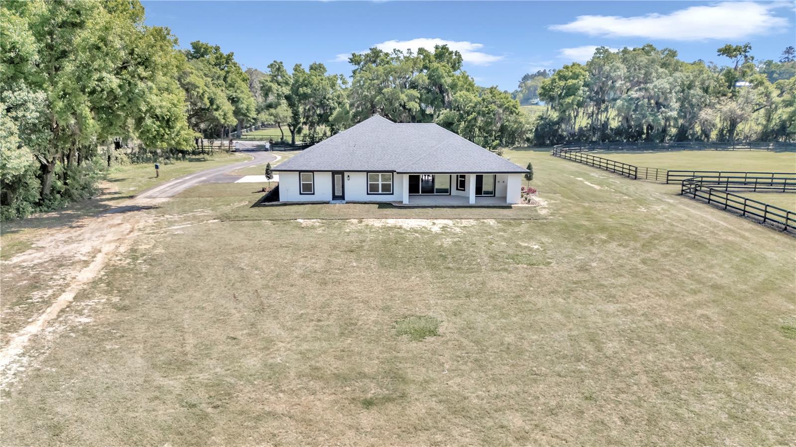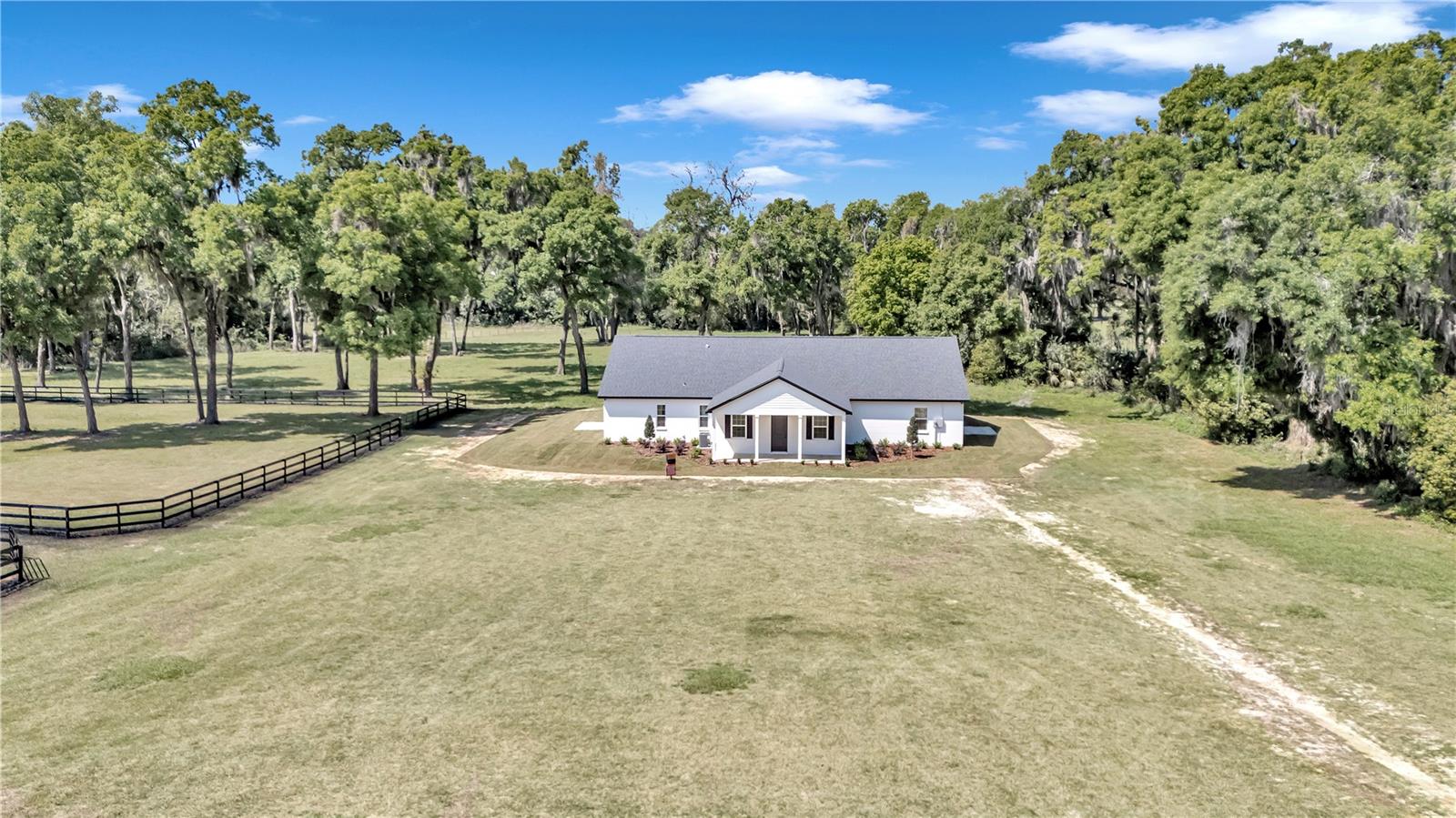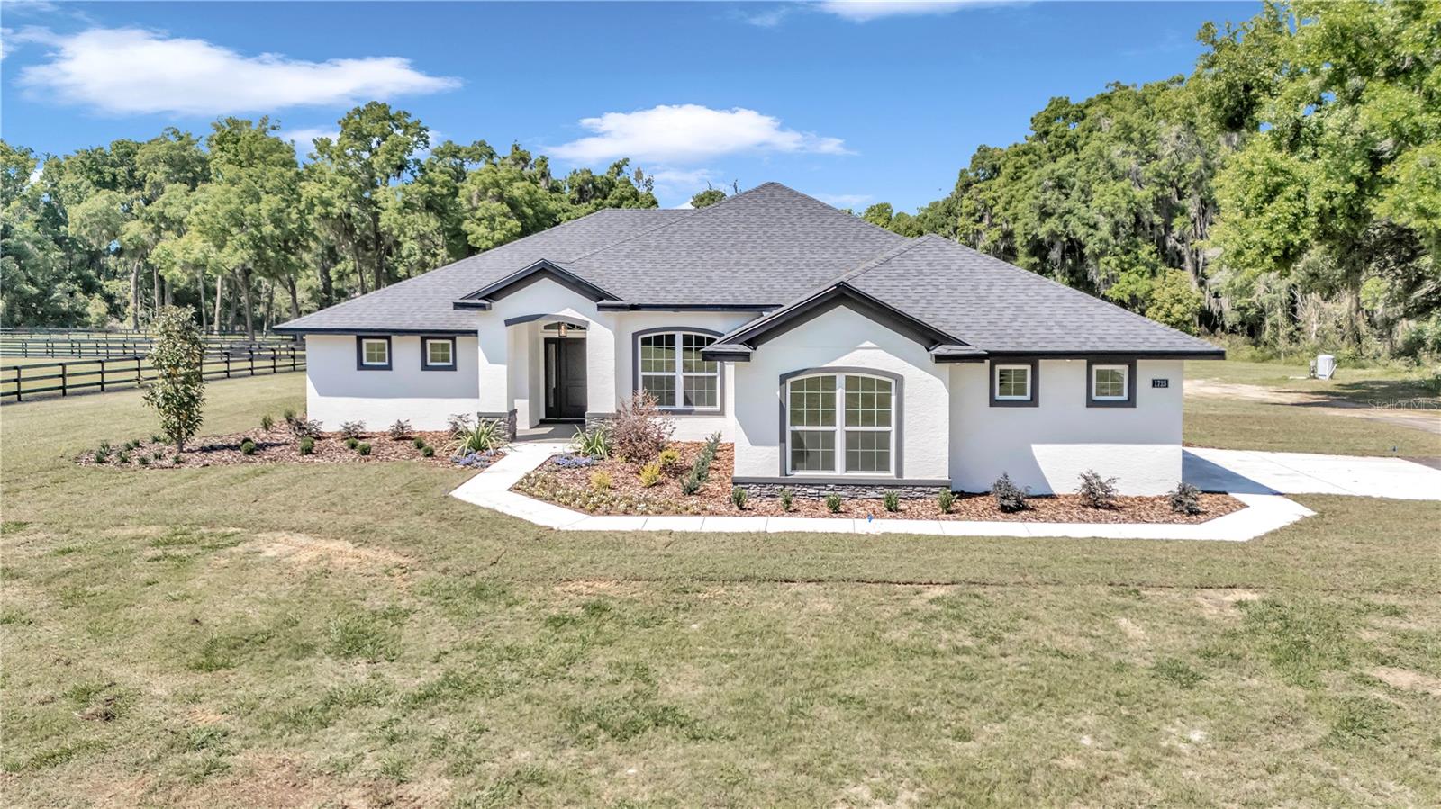 One or more photo(s) has been virtually staged. Just over the Reddick and Ocala lines on the west side of U.S. 301, this new farm is a dream for upper-level riders and amateurs alike, with its convenient accessibility to various venues. The property, spanning 10 acres with more acreage available, is meticulously designed by top equestrian professionals, featuring a stunning yet functional triple-split home. Upon entering through the lighted electric gated entry, visitors are greeted by a paved driveway leading to the custom-built home and barn, all landscaped with irrigation. The four-bedroom, 2.5-bath home boasts high-end fixtures, flooring, cabinetry and lighting throughout, curated by a top interior designer. The open floor plan, soaring ceilings and spacious kitchen with quartz countertops make it ideal for entertaining. The adjacent barn, matching the home’s design, offers six large stalls with custom grills, a rider lounge, full bath, laundry room, feed room, tack room and an indoor wash stall. With ample paddocks and the remaining property suitable for turnout or future arena development, this property is a must-see for any discerning equestrian. Conveniently near various equestrian venues, including the World Equestrian Center and HITS, this turnkey farm is a rare find in the area, offering an opportunity for horse enthusiasts to move right in and start enjoying the equestrian lifestyle.
