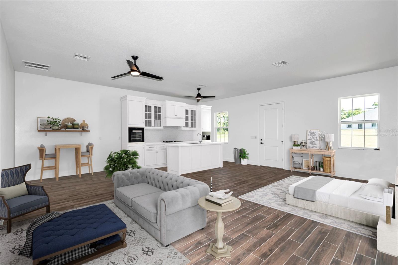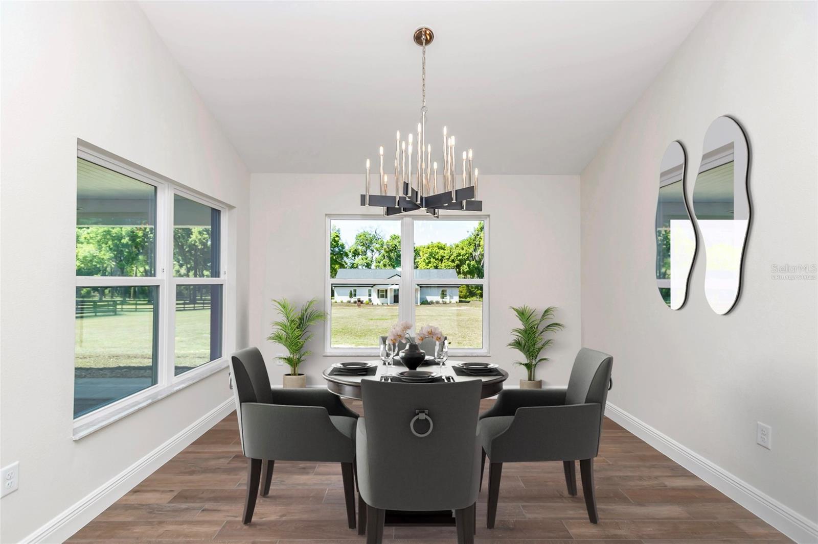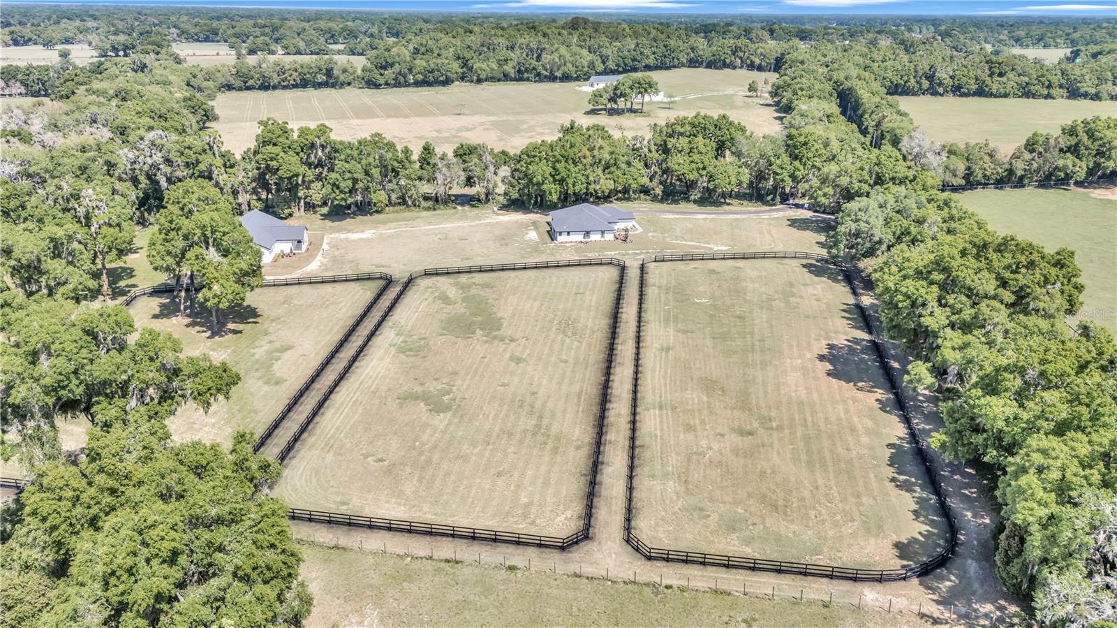 One or more photo(s) has been virtually staged. Just over the Reddick and Ocala lines on the west side of U.S. 301, this new farm is a dream for upper-level riders and amateurs alike, with its convenient accessibility to various venues. The property, spanning 10 acres with more acreage available, is meticulously designed by top equestrian professionals, featuring a stunning yet functional triple-split home. Upon entering through the lighted electric gated entry, visitors are greeted by a paved driveway leading to the custom-built home and barn, all landscaped with irrigation. The four-bedroom, 2.5-bath home boasts high-end fixtures, flooring, cabinetry and lighting throughout, curated by a top interior designer. The open floor plan, soaring ceilings and spacious kitchen with quartz countertops make it ideal for entertaining. The adjacent barn, matching the home’s design, offers six large stalls with custom grills, a rider lounge, full bath, laundry room, feed room, tack room and an indoor wash stall. With ample paddocks and the remaining property suitable for turnout or future arena development, this property is a must-see for any discerning equestrian. Conveniently near various equestrian venues, including the World Equestrian Center and HITS, this turnkey farm is a rare find in the area, offering an opportunity for horse enthusiasts to move right in and start enjoying the equestrian lifestyle.