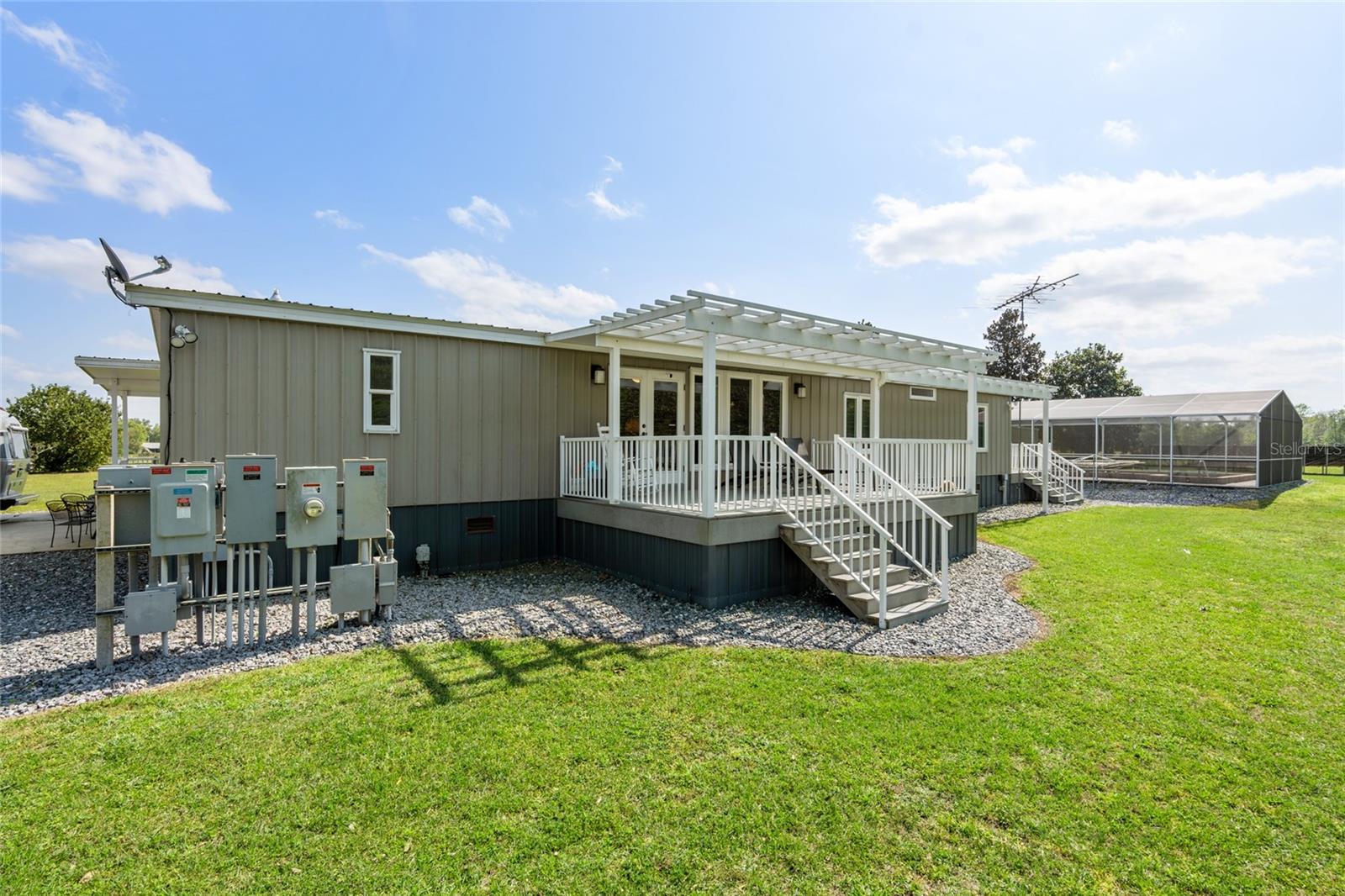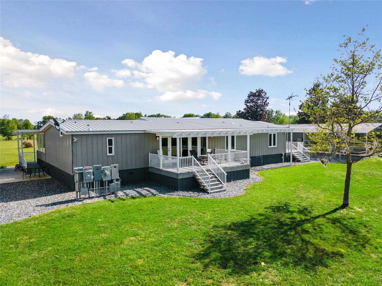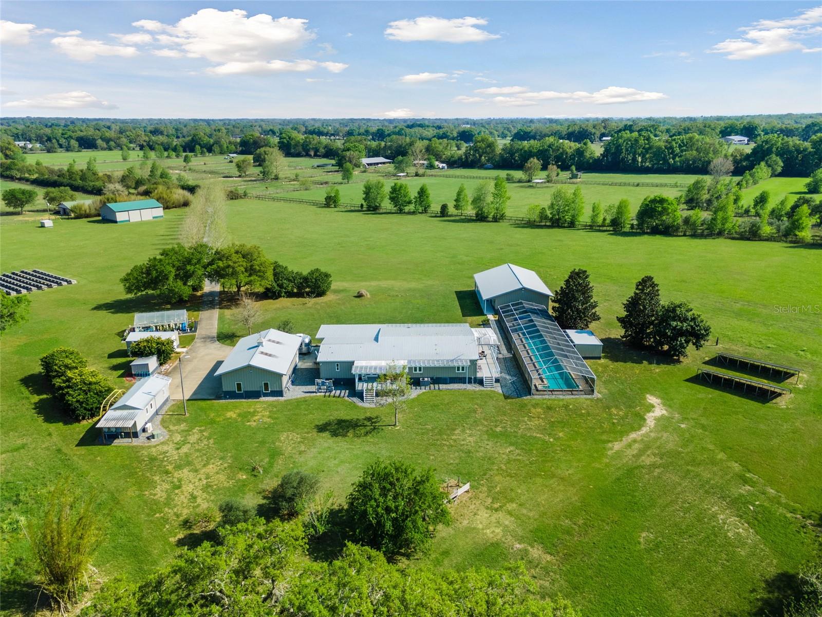 Stunning 67 acre farm located in Northern Marion County. Zoned Agricultural, perfect for farming, hay production, cattle or could easily be transformed into a horse farm that could accommodate 10 or more stalls in one of the existing barns. There is a total of 9 buildings on 67 acres. Situated in Beautiful Northern Marion County, Florida, land is High & Dry and just a short drive to Gainesville or Ocala. Main Home is a Spacious 4 Bedroom 3 Bath, customized Jacobson Modular that has Handicap accessibility to every room. This farm has a unique feature of a 25KW Solar power and a Teslas Wall Battery Back Up System! The Chef's Kitchen will amaze you with its, Wolf Stove, Gas Cooktop, Sub-Zero Refrigerator and abundance of counter and cabinet space! The Home itself offers a well designed Floor-plan and allows plenty of natural light from the Casement Windows. Hard wood flooring and Porcelain Tile throughout this immaculately maintained Home. Lets not forget you may want to head over to the 1,500 sq ft of Gym/Office space to work-out, its just steps away from Main home and also has access to a Chemical Free, Salt Water, Screen enclosed Lap Pool. This amazing property continues to surprise you with a Man Cave & She Shed/Craft Room plus a Greenhouse & 2,500 sq ft Morton Storage Building. Just to add a few more perks, Reverse Osmosis System, 50 amp Rv Hook-up w/ septic, Bi-Yearly Hay Crop, Private Gated entrance, Paved Driveway, 3 car Garage. All Buildings are covered with Morton Steel & Metal Roofs. virtually Maintenance free. There many more things to mention, this is a must see. Welcome Home!!