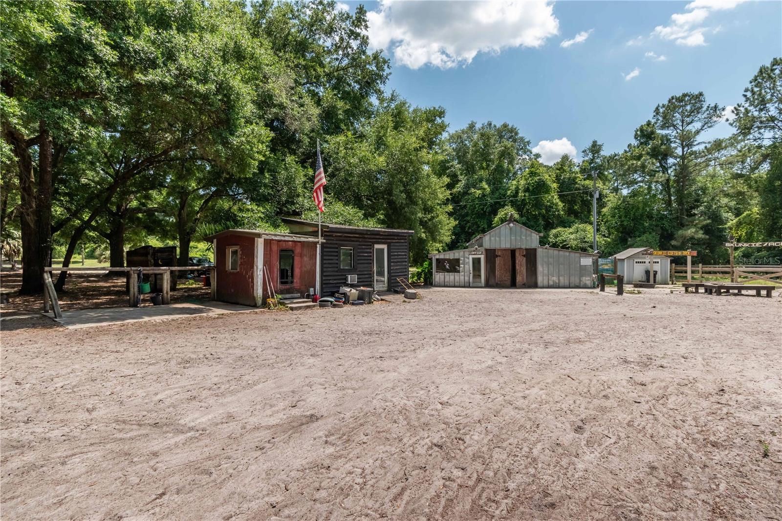 Perfectly situated between both Ocala and Gainesville, this unique horse farm in Citra provides a quiet, private landscape loaded with potential. Overlooking a total of 37+ acres, the property is fenced and shaded by mature oaks– an idyllic setting for horses. Primarily zoned A-1, the property offers ample opportunity for a variety of disciplines and skill levels to thrive and grow, or for those looking to be more diverse in their agricultural goals. A barn and several outbuildings are in place, which offers a massive tack room with two doors, tool room, and additional storage space. Four horse pens are established, as well as thirteen pens / cages for smaller livestock, many of which are equipped with water lickers for added ease of care. Electricity is available throughout the property including two 220 amp outlets. Additional amenities include a wash rack, one septic, multiple wells and water spigots throughout the main areas, man-made ponds, and much more. A 2-bedroom, 2-bath mobile is currently in place on the property, though is in need of repairs. Additionally, the property includes a 1-bedroom, 1-bath apartment with full kitchen, living room, laundry room, and additional office. This property is well suited for those who want to run a rescue, hobby farm, or fully transform the property into a horse farm. Citra is highly convenient for those looking to explore other nearby areas as well, with both Ocala and Gainesville a scenic drive away for a variety of shopping, dining, entertainment, and medical options. Located just minutes from Orange Lake, Majestic Oaks Ocala, and the Ocala Jockey Club which was recently acquired by the World Equestrian Center, there is plenty to explore in the area and beyond!