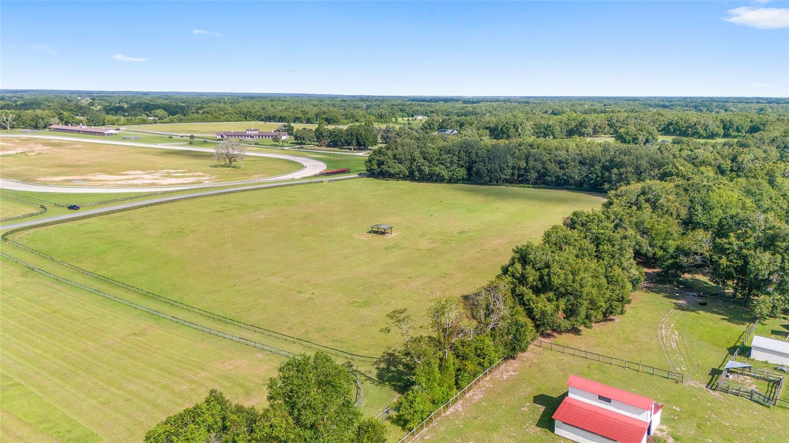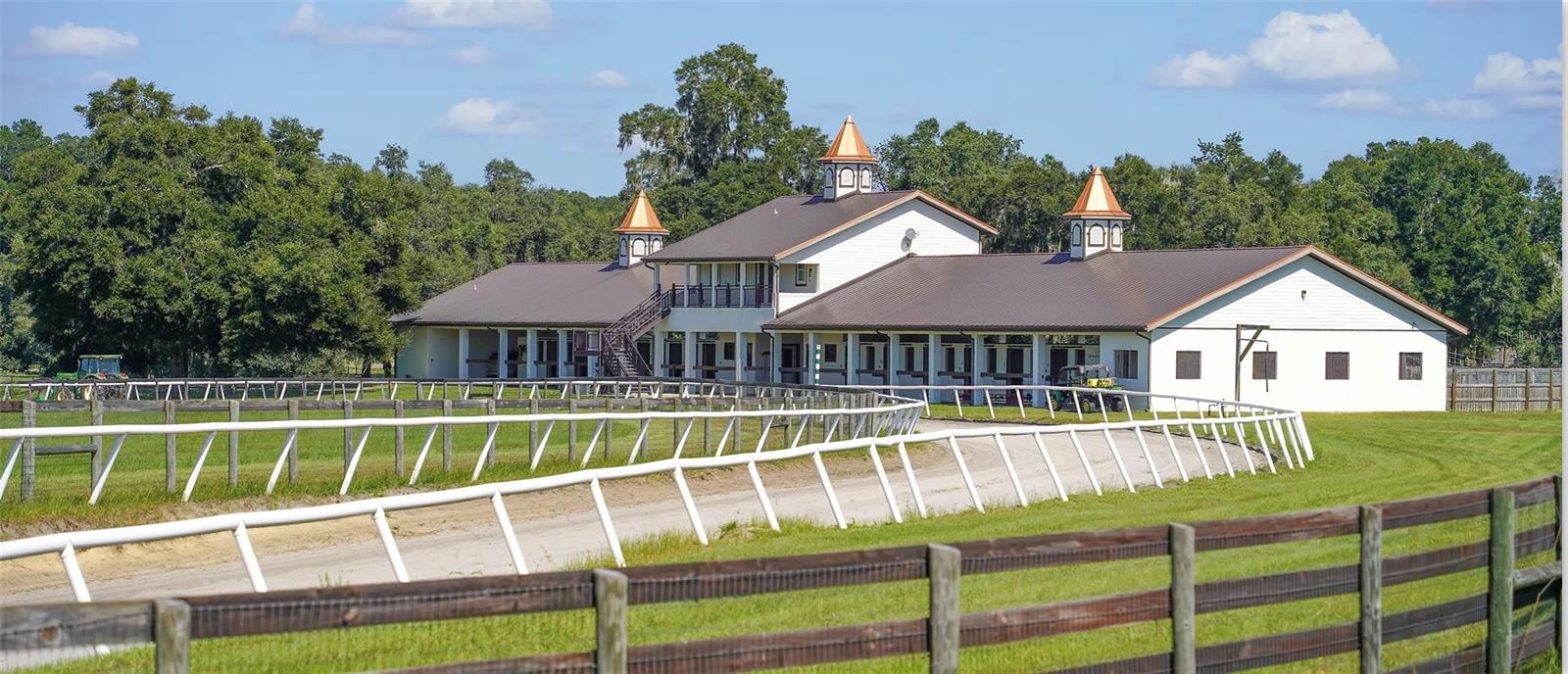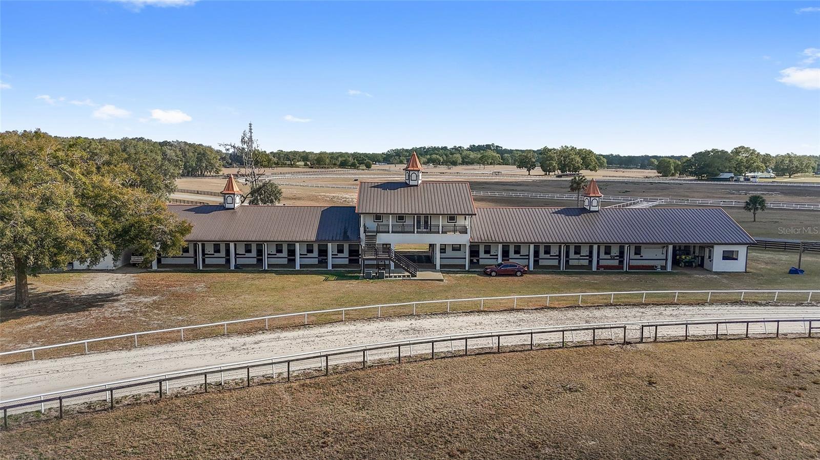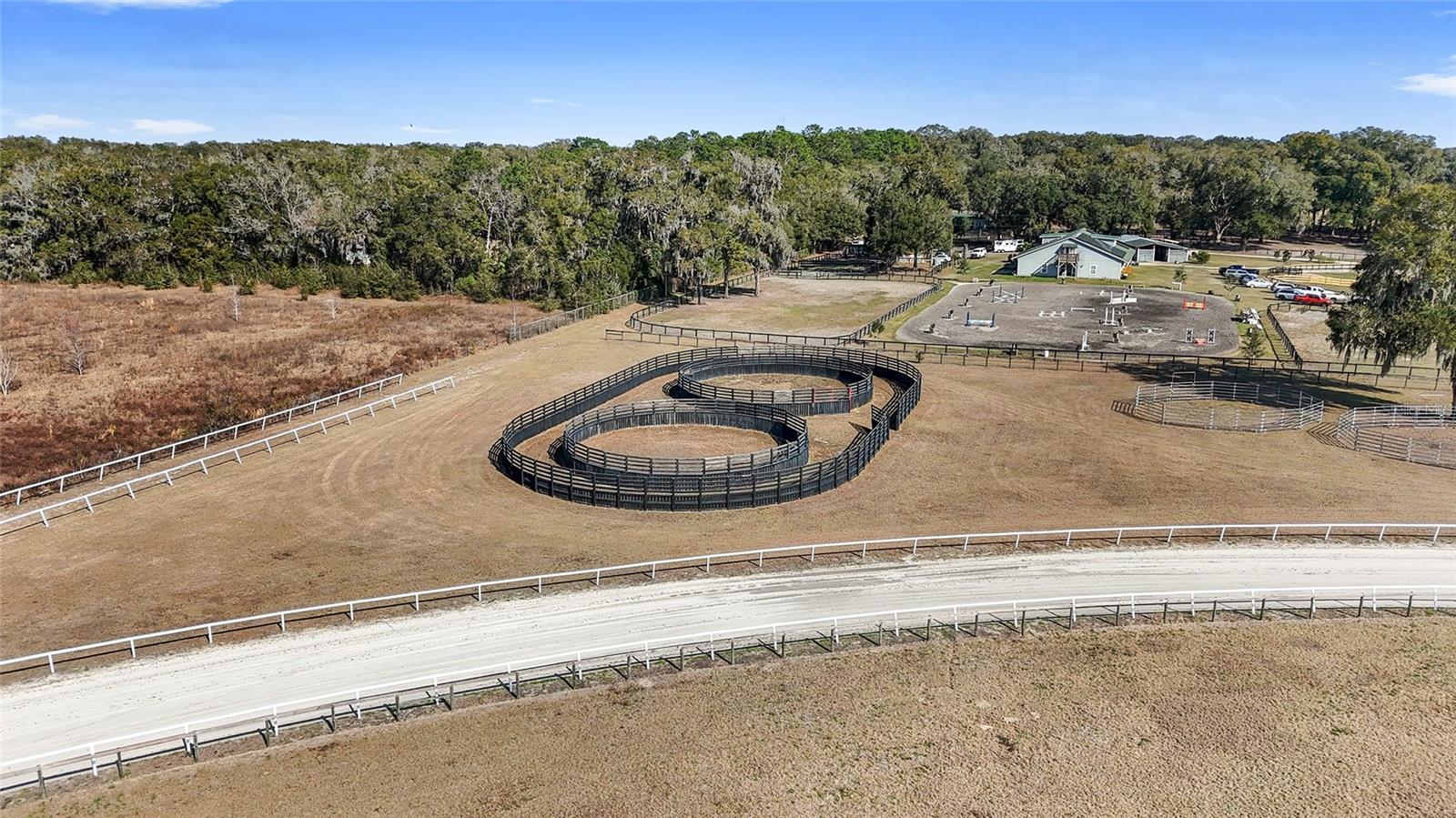 OWNER FINANCING OPTIONS AVAILABLE. Discover a rare opportunity to create your own premier equestrian community on 102 acres of high and dry land. This exceptional luxury development offers multiple purchase options, including nine 10-acre lots perfect for designing a custom equestrian neighborhood with a shared or revampable track. Turn-Key Training Facility: Enter through a striking double iron electric gate with keypad access. Enjoy expansive space ready for personalized landscaping, with irrigation already in place. Drive along smooth, winding, paved, and lighted roads that enhance the property's natural beauty. Benefit from underground utilities (cable, internet, phone) available throughout the facility. Impressive Barns and Living Quarters: Barn One: A grand custom barn featuring 28 stalls. An upstairs 3-bedroom, 2-bath apartment (1,150 sq. ft.) boasting a full kitchen, upgraded stainless steel appliances, granite countertops, porcelain tile, a full-size washer and dryer, and a breathtaking balcony view overlooking the north track. Second Private Home- A first-floor 2-bedroom, 1-bath apartment with granite counters and porcelain tile- amazing kitchen and living room. Additional ground-level facilities include barn office, stalls separated by block partitions, hot/cold wash racks, two offices (each with a half bath), and a combined kitchen/laundry area with a full bath. Additional Barn: 52 stalls- this over 22,000 sq. ft. barn. Including 4 efficiency barn apartments 1/1 with full bathroom. Ready to move your horses right in. Extensive Equestrian Amenities: Two race tracks on site—a five furlong track to the north and a six furlong track. Rolling, fenced green pastures with water access throughout. Complete with an additional: 9-stall feeding barns and six brood mare shelters with attached paddocks. A spacious 24' x 80' hay barn. Three hot-walkers to support daily training routines. Enjoy miles of trail riding throughout the community. Development Potential: Multiple residential and apartment options available, with lot sizes ranging from 10 to 30 acres—ideal for custom builds or exploring innovative business opportunities. Ownership rights include majority voting in the HOA, ensuring a voice in community decisions. This thoughtfully designed, gated development is perfectly situated and ready to support an active equestrian lifestyle. More photos and videos will available—contact us today for further details and to explore the many possibilities this property offers!
