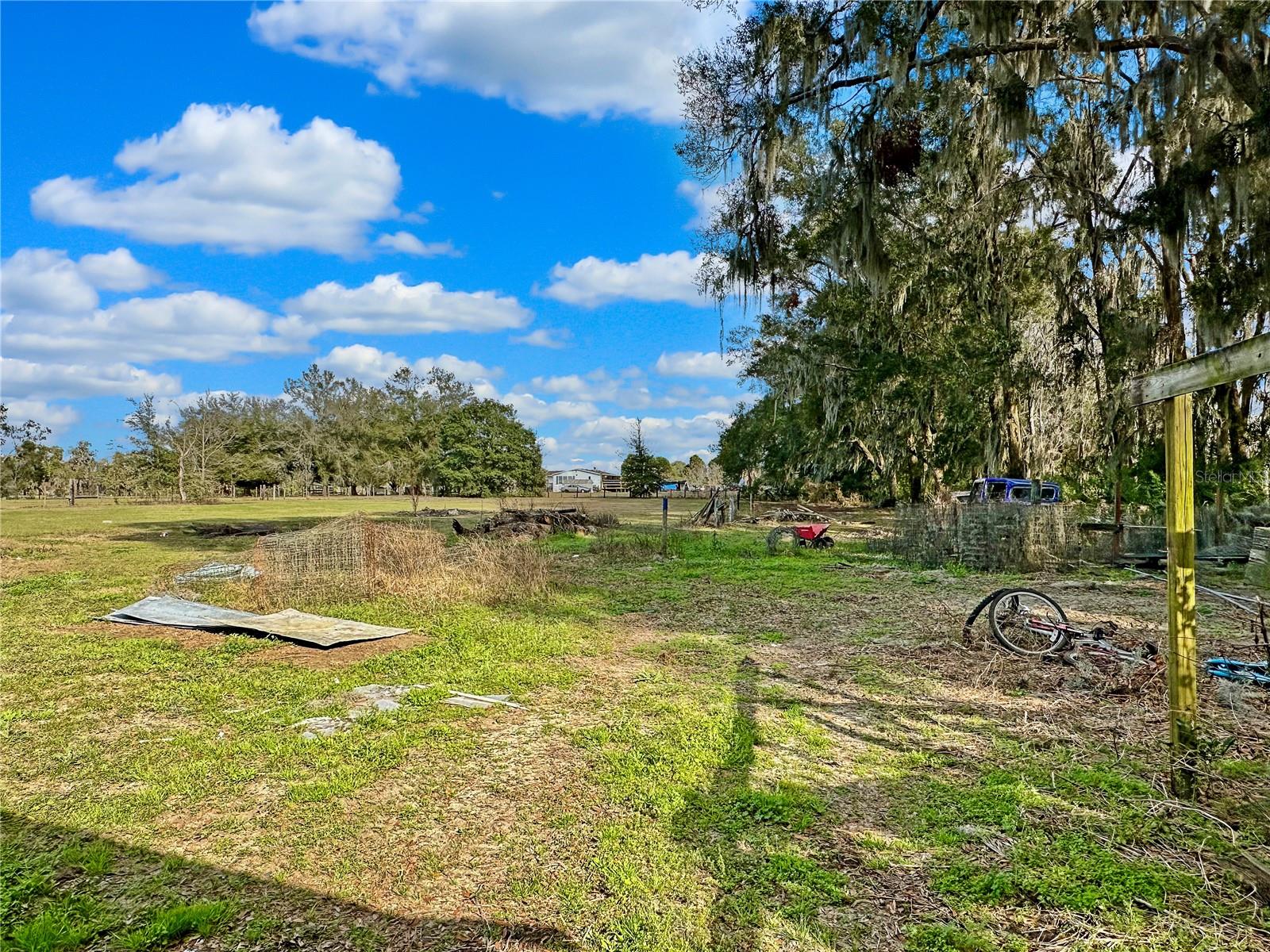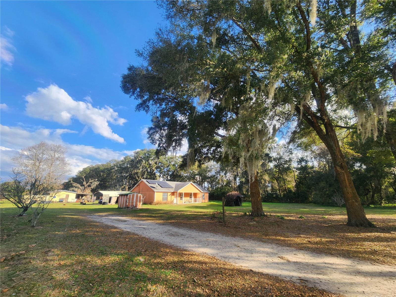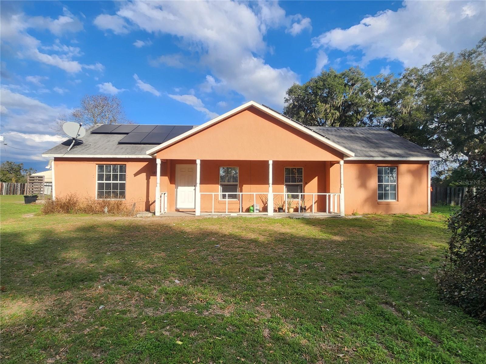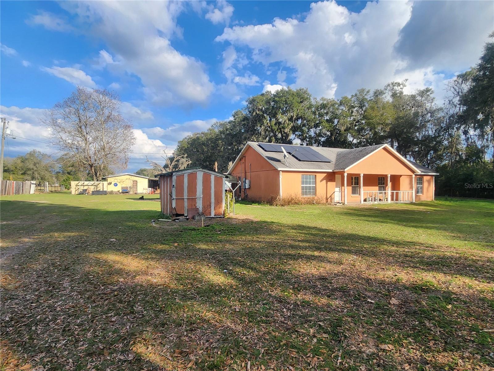 Two words – opportunity and price. THREE ACRES, Agriculturally A-1 ZONED, Fully FENCED, with multiple OUT-BUILDINGS and bonus rooms on a PAVED road. This SPLIT FLOOR PLAN CBS home has 3 bedrooms, 2 bathrooms, and 2 BONUS ROOMS with a 2018 ROOF. LARGE KITCHEN and dining room with TONS OF STORAGE. Bonus rooms are off the kitchen, both are partially finished, one is being used as a bedroom, the other used for storage. Outbuildings include a BARN / WORKSHOP that has an enclosed storage area and raised-bed work area (which could work for hay and tack storage), a DOUBLE CARPORT used for tractor storage, a SINGLE CARPORT off the covered back patio of the home, one FINISHED SHED, an ADDITIONAL SHED, and multiple CHICKEN COOPS. You’ll find water and power all over the place supporting the out-buildings, abundant MATURE FRUIT TREES and flowering plants. Sitting well back from a paved country road, the COVERED FRONT PORCH faces West for beautiful sunset views of open cleared acreage, nearby pastures, and scattered MATURE OAK TREES. This fenced agricultural property is ready for you to bring your toys, animals, ideas, and your suitcase - with an eye for opportunity this property could fit YOUR DREAMS of country living without a huge price tag. Put in some cross fence and you have plenty of room for horses, just like the neighbors – in fact you’ll often see equine enthusiasts riding down the street and there are million dollar horse and cattle farms a few houses down. The feed and hardware store is less than 5 minutes away, as well as Dollar General, a pizza place, and a grocery store – or in about a 15 minutes you can find just about anything else you need. Convenient to Ocala, Gainesville, and major roadways. Come have a look before someone else decides this is the one and takes advantage of the opportunity and price.