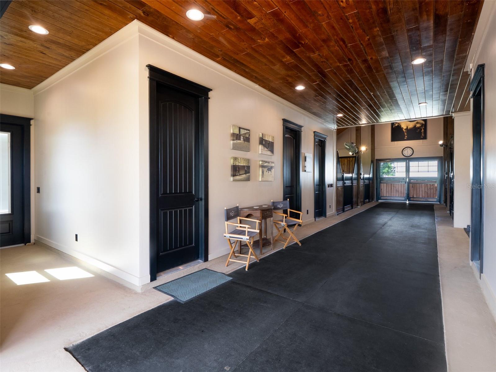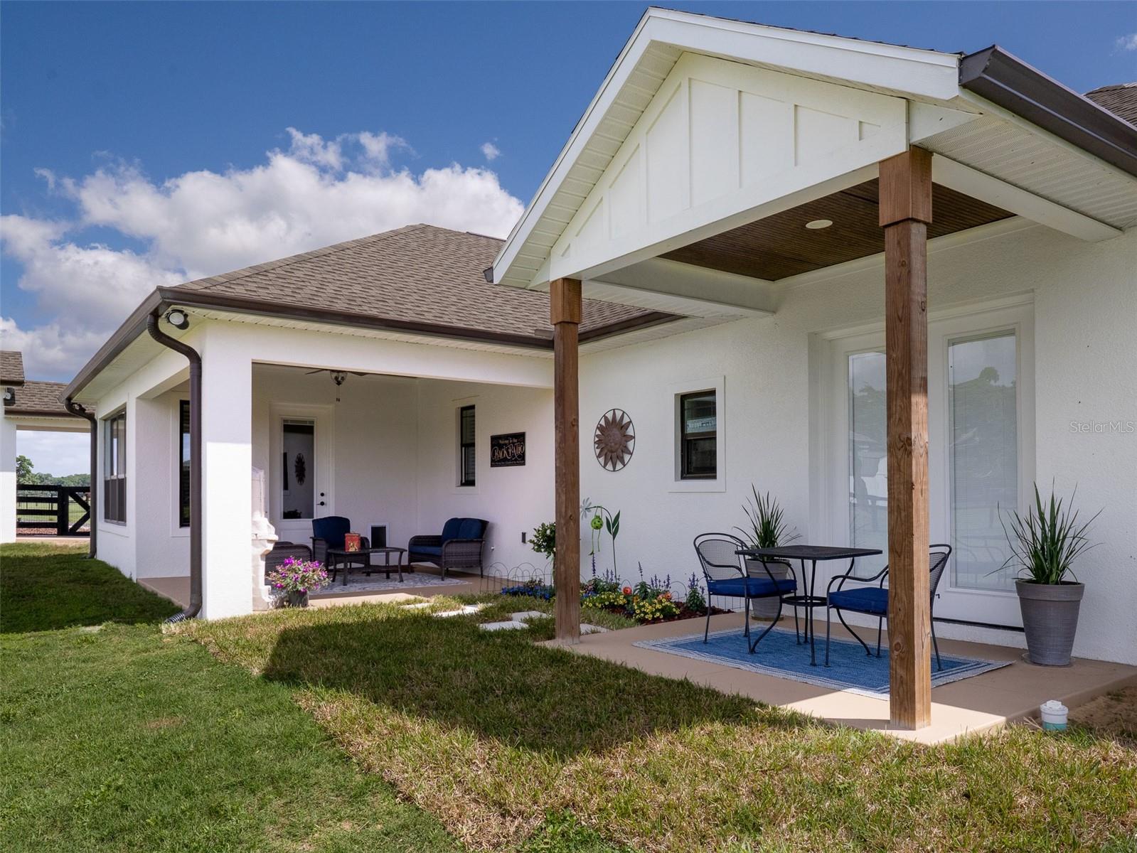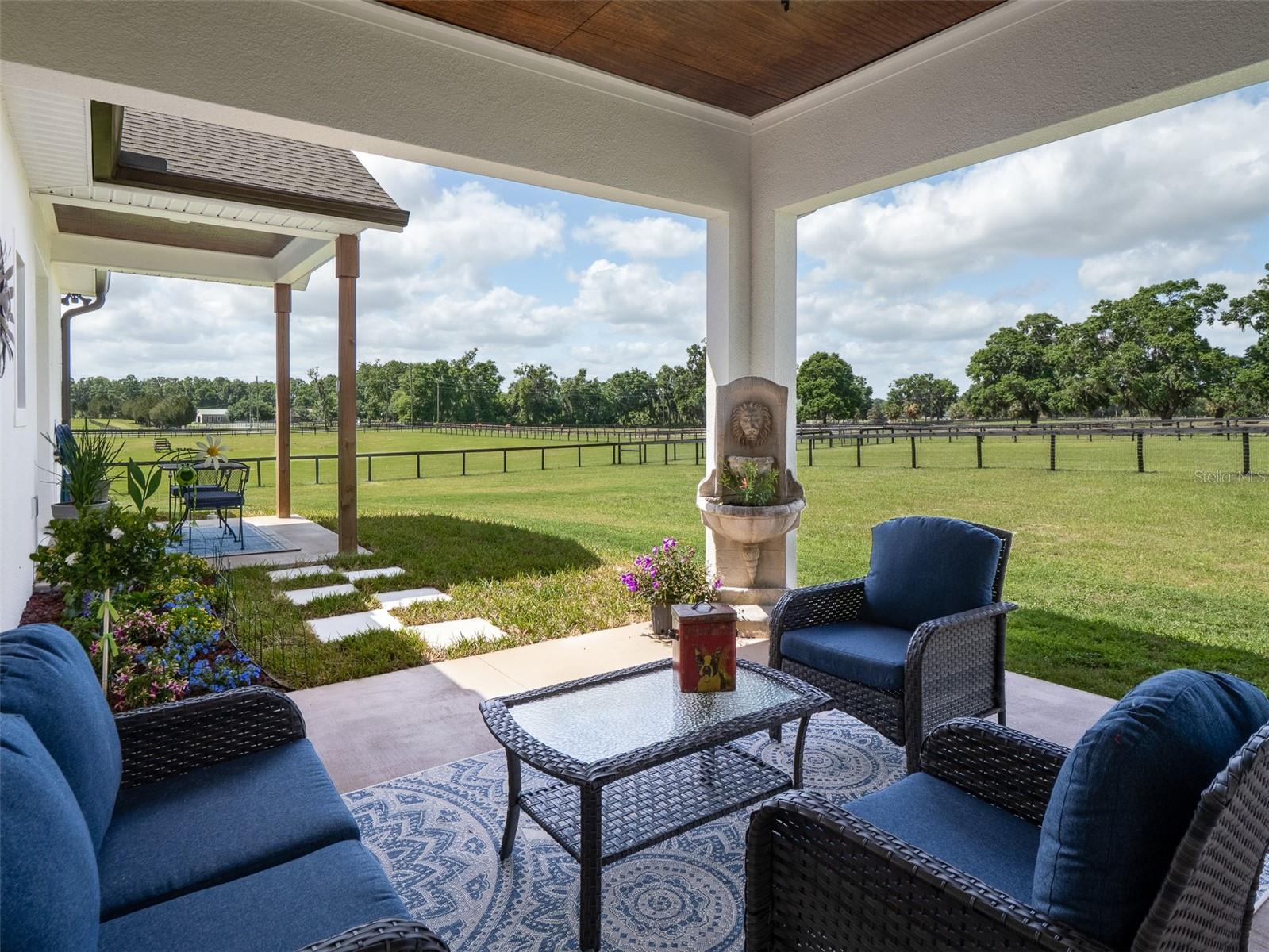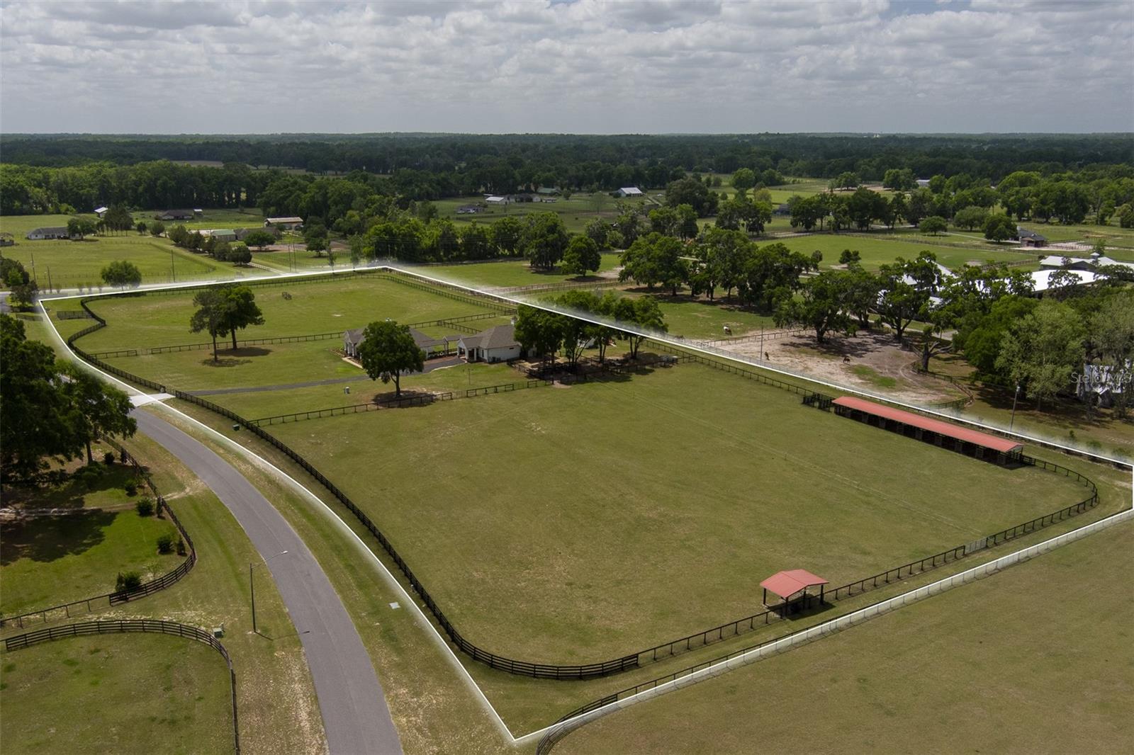 Located just 20 minutes from the World Equestrian Center, this 9.90-acre farm is set within the gated equestrian community of Bellemont Farms. Designed with attention to both form and function, the property is fully fenced and thoughtfully laid out for equestrian living. The well-equipped 4-stall center-aisle barn features custom European stall fronts with Dutch doors, stall mattresses, and spacious overhangs outside each stall. Additional barn features include a temperature-controlled tack room, feed room, bathroom/laundry area, and a separate storage room. A whole-house fan installed in the cupola, equipped with a timer, provides added ventilation. The wash rack is outfitted with hot and cold water and heaters for added convenience. For additional practicality, the barn includes an RV hookup, and a covered walkway connects the barn to the main residence, offering sheltered access regardless of the weather. Four manicured paddocks provide generous space for turnout, and residents enjoy direct access to the community bridle path for riding within the subdivision. The 3-bedroom, 3-bathroom home showcases attention to detail throughout, featuring an open-concept design with engineered hardwood and porcelain tile flooring. High ceilings further enhance the sense of space, with 10-foot ceilings throughout and 11-foot ceilings in the family room and master bedroom. The chef’s kitchen boasts custom cabinetry with quartz countertops, a farmhouse sink, a Viking professional series gas range, Bosch appliances, a large walk-in pantry, and a spacious kitchen island that is topped with hickory wood and equipped with a sink for preparing meals for guests or entertaining. The master bathroom offers a spa-like retreat, complete with a standing air jet tub, a large walk-in shower, and dual designer vanities. The rear patio includes stub-outs ready for an outdoor kitchen sink and gas cooking, offering the opportunity to create a customized outdoor entertaining space. Completing the property is a 3-car garage with an electric vehicle charging station and a generator that powers both the home and barn, all set in a peaceful, upscale equestrian setting.
