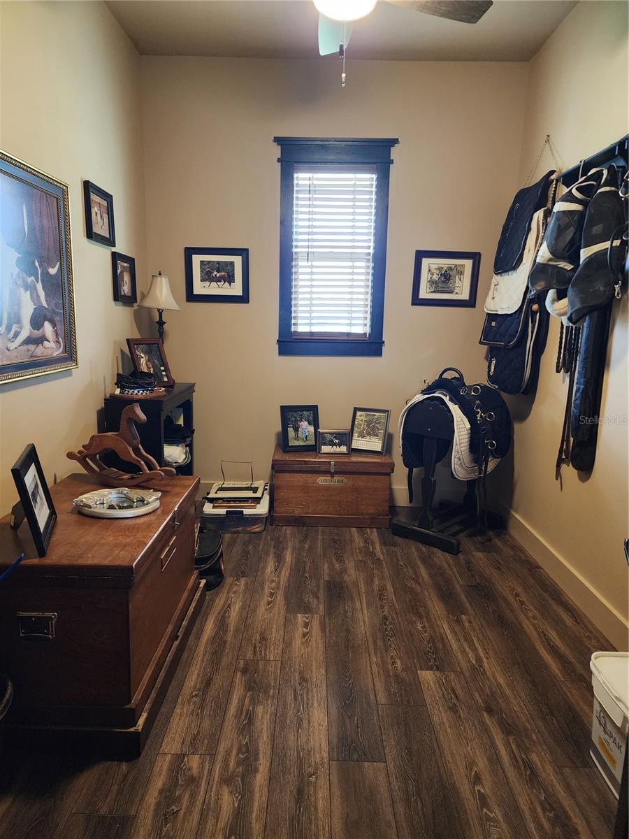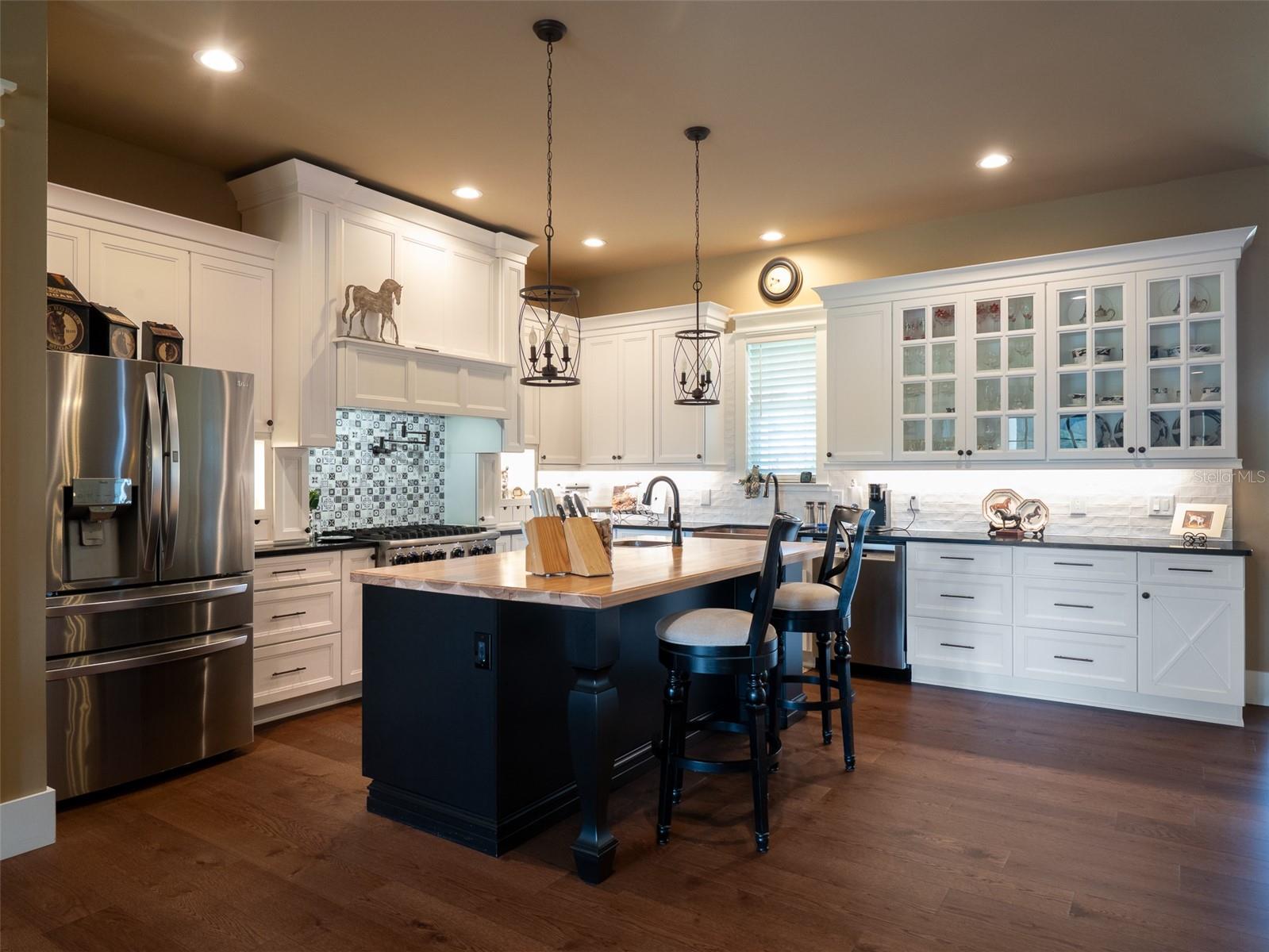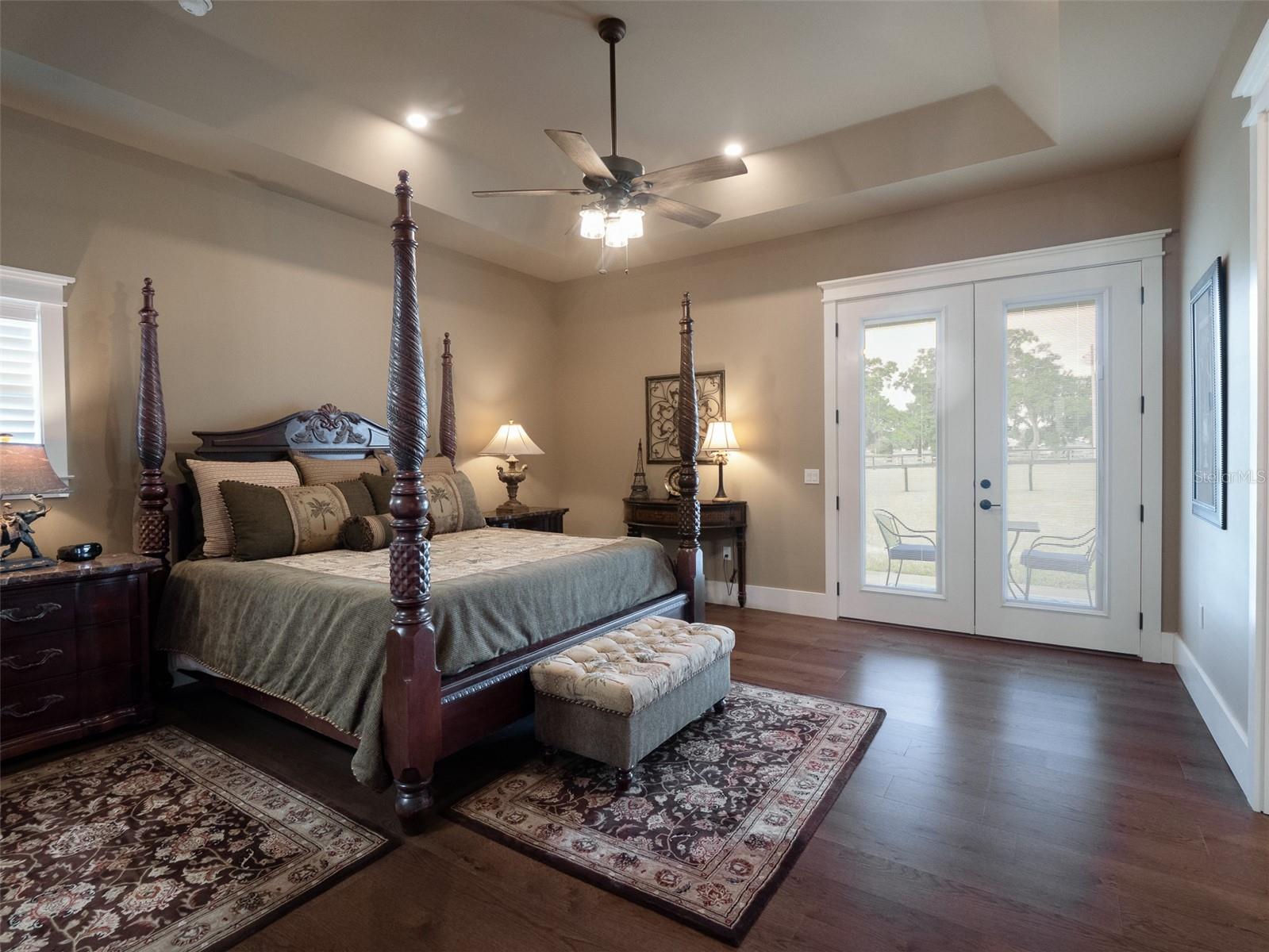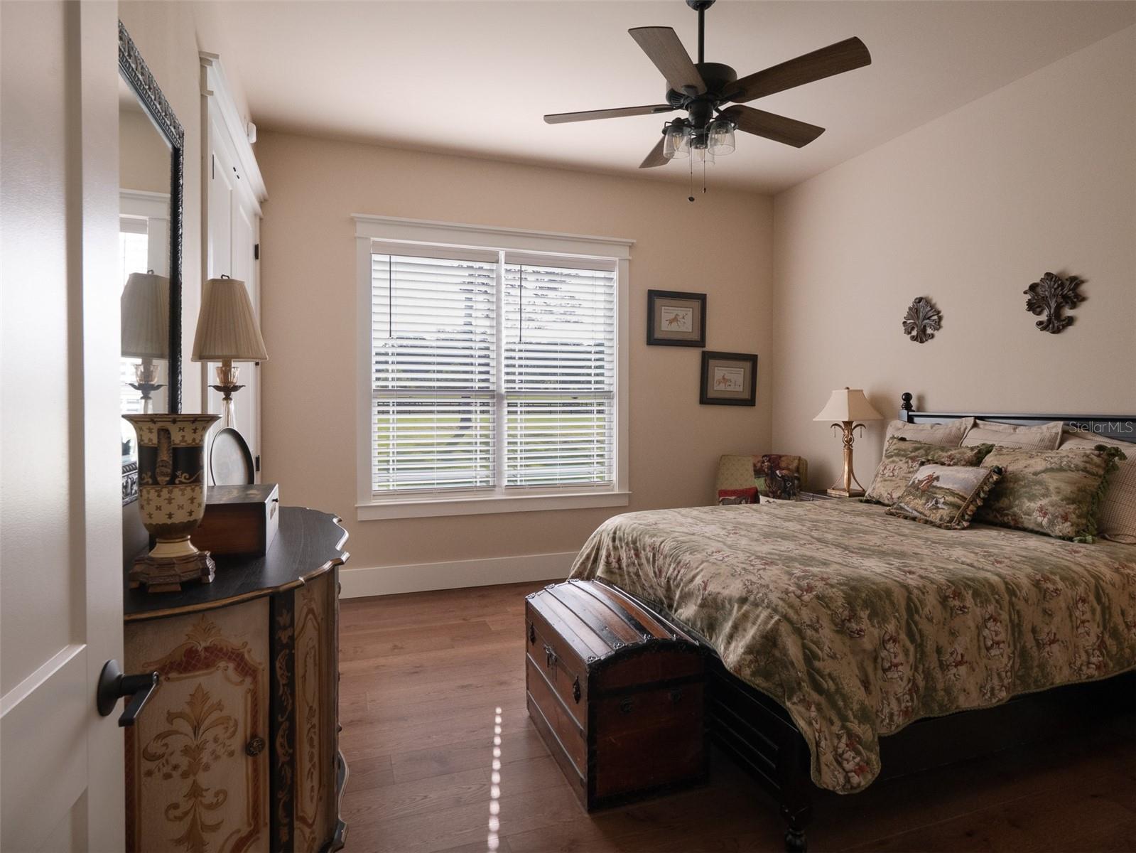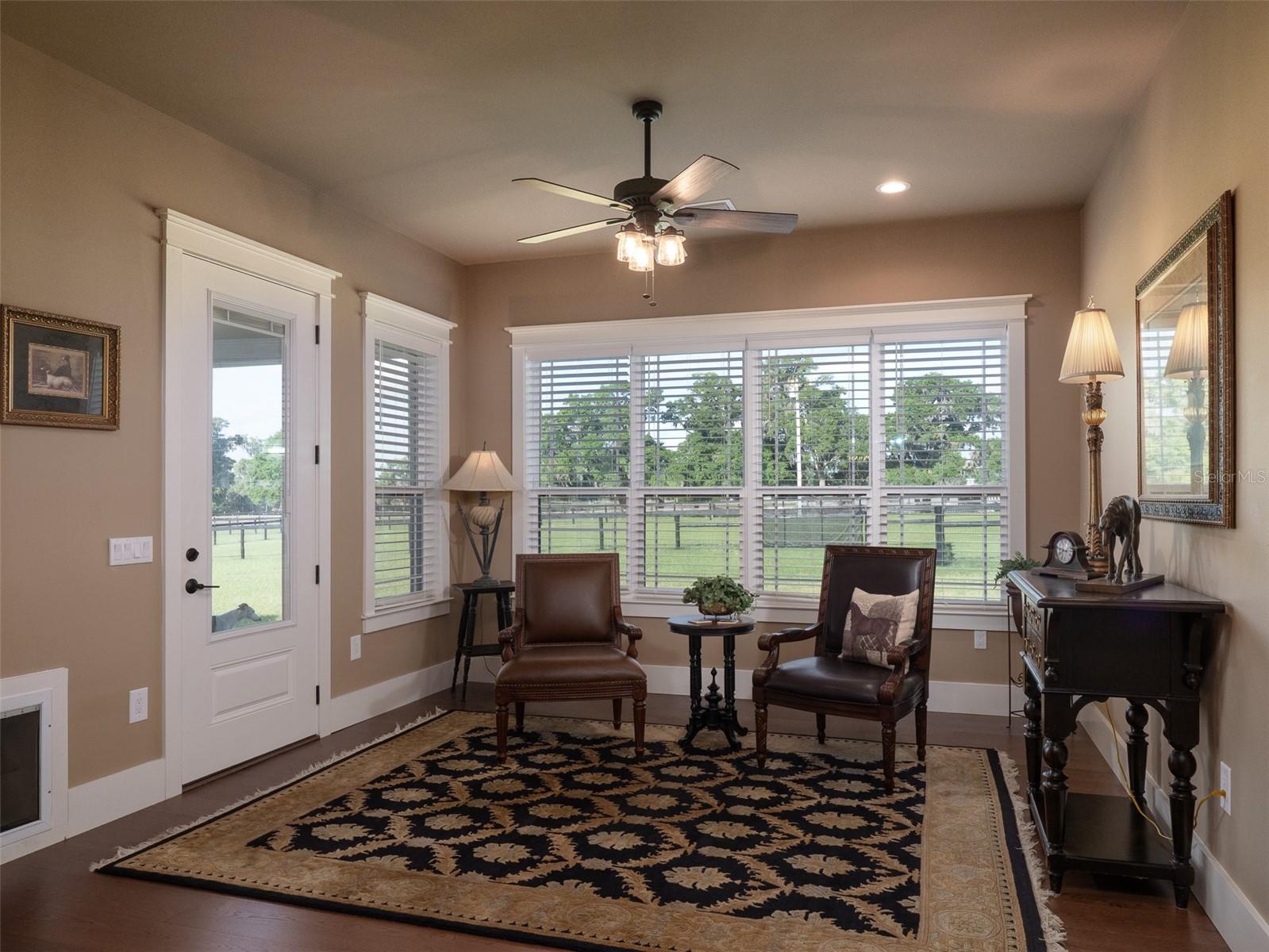 Located just 20 minutes from the World Equestrian Center, this 9.90-acre farm is set within the gated equestrian community of Bellemont Farms. Designed with attention to both form and function, the property is fully fenced and thoughtfully laid out for equestrian living. The well-equipped 4-stall center-aisle barn features custom European stall fronts with Dutch doors, stall mattresses, and spacious overhangs outside each stall. Additional barn features include a temperature-controlled tack room, feed room, bathroom/laundry area, and a separate storage room. A whole-house fan installed in the cupola, equipped with a timer, provides added ventilation. The wash rack is outfitted with hot and cold water and heaters for added convenience. For additional practicality, the barn includes an RV hookup, and a covered walkway connects the barn to the main residence, offering sheltered access regardless of the weather. Four manicured paddocks provide generous space for turnout, and residents enjoy direct access to the community bridle path for riding within the subdivision. The 3-bedroom, 3-bathroom home showcases attention to detail throughout, featuring an open-concept design with engineered hardwood and porcelain tile flooring. High ceilings further enhance the sense of space, with 10-foot ceilings throughout and 11-foot ceilings in the family room and master bedroom. The chef’s kitchen boasts custom cabinetry with quartz countertops, a farmhouse sink, a Viking professional series gas range, Bosch appliances, a large walk-in pantry, and a spacious kitchen island that is topped with hickory wood and equipped with a sink for preparing meals for guests or entertaining. The master bathroom offers a spa-like retreat, complete with a standing air jet tub, a large walk-in shower, and dual designer vanities. The rear patio includes stub-outs ready for an outdoor kitchen sink and gas cooking, offering the opportunity to create a customized outdoor entertaining space. Completing the property is a 3-car garage with an electric vehicle charging station and a generator that powers both the home and barn, all set in a peaceful, upscale equestrian setting.