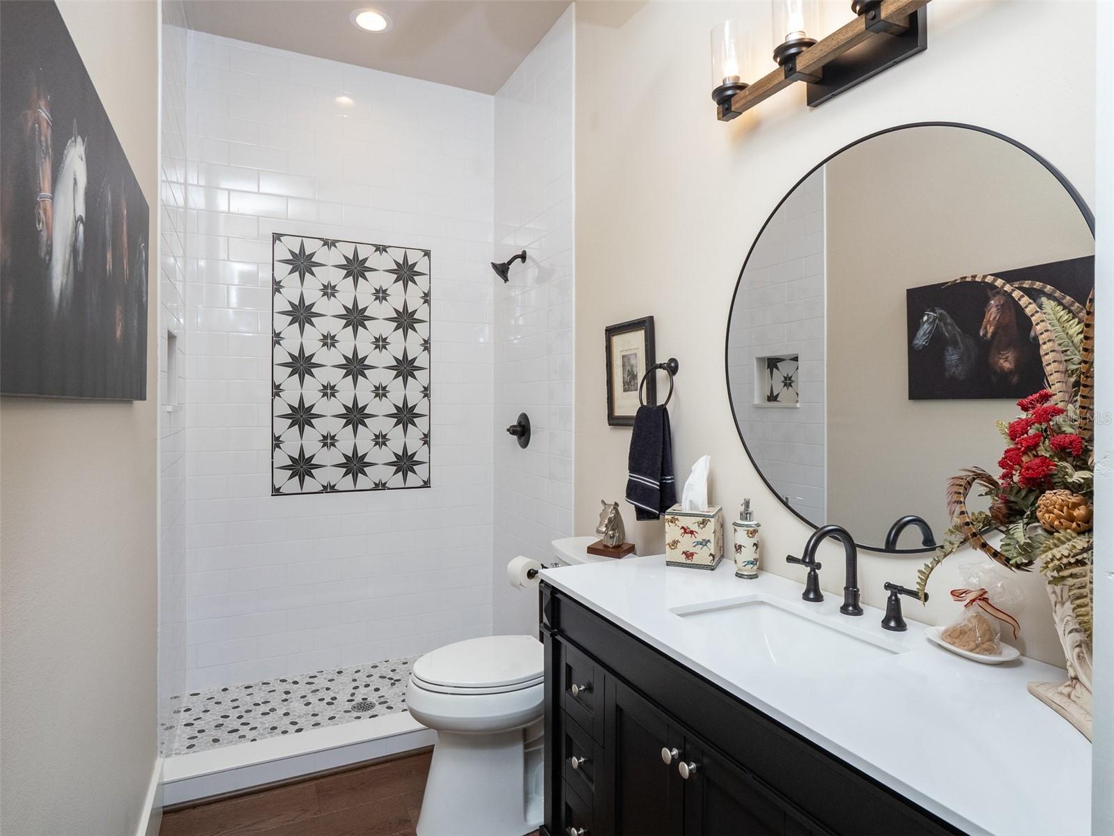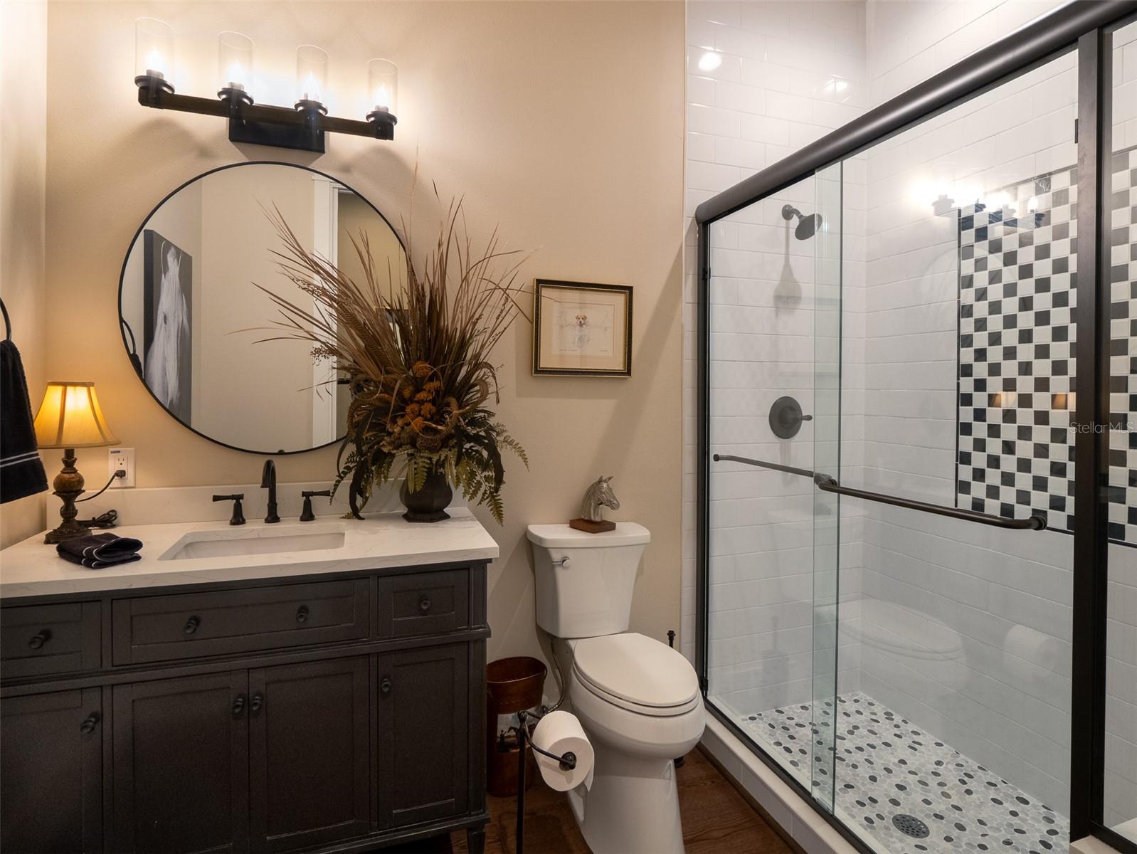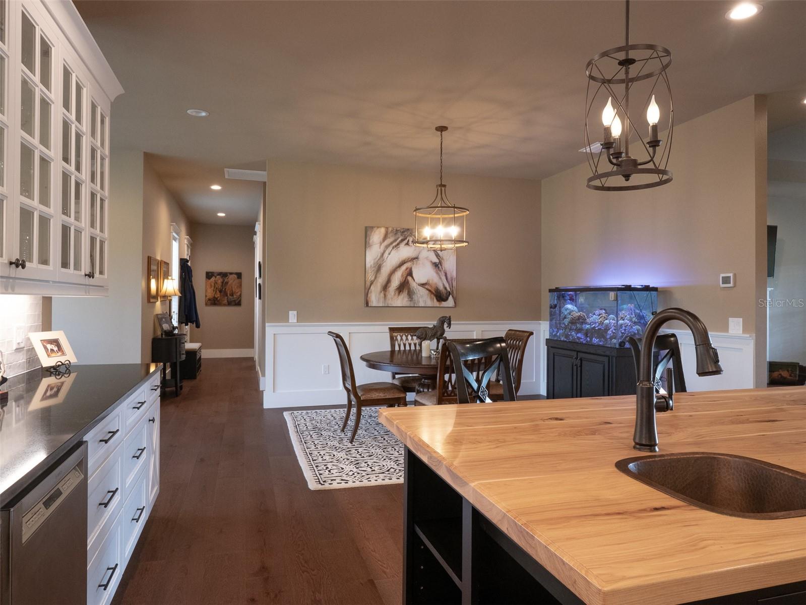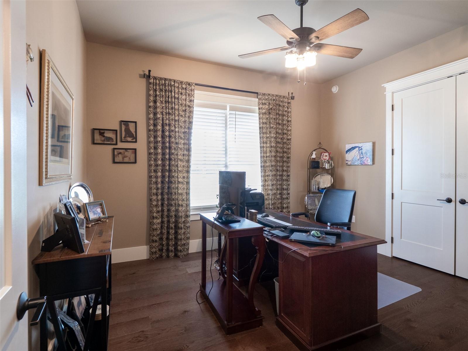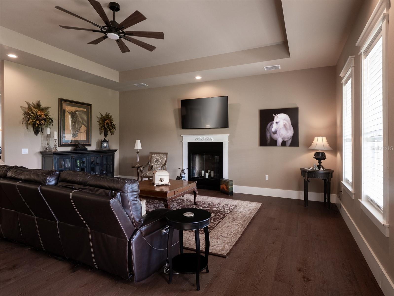 Located just 20 minutes from the World Equestrian Center, this 9.90-acre farm is set within the gated equestrian community of Bellemont Farms. Designed with attention to both form and function, the property is fully fenced and thoughtfully laid out for equestrian living. The well-equipped 4-stall center-aisle barn features custom European stall fronts with Dutch doors, stall mattresses, and spacious overhangs outside each stall. Additional barn features include a temperature-controlled tack room, feed room, bathroom/laundry area, and a separate storage room. A whole-house fan installed in the cupola, equipped with a timer, provides added ventilation. The wash rack is outfitted with hot and cold water and heaters for added convenience. For additional practicality, the barn includes an RV hookup, and a covered walkway connects the barn to the main residence, offering sheltered access regardless of the weather. Four manicured paddocks provide generous space for turnout, and residents enjoy direct access to the community bridle path for riding within the subdivision. The 3-bedroom, 3-bathroom home showcases attention to detail throughout, featuring an open-concept design with engineered hardwood and porcelain tile flooring. High ceilings further enhance the sense of space, with 10-foot ceilings throughout and 11-foot ceilings in the family room and master bedroom. The chef’s kitchen boasts custom cabinetry with quartz countertops, a farmhouse sink, a Viking professional series gas range, Bosch appliances, a large walk-in pantry, and a spacious kitchen island that is topped with hickory wood and equipped with a sink for preparing meals for guests or entertaining. The master bathroom offers a spa-like retreat, complete with a standing air jet tub, a large walk-in shower, and dual designer vanities. The rear patio includes stub-outs ready for an outdoor kitchen sink and gas cooking, offering the opportunity to create a customized outdoor entertaining space. Completing the property is a 3-car garage with an electric vehicle charging station and a generator that powers both the home and barn, all set in a peaceful, upscale equestrian setting.