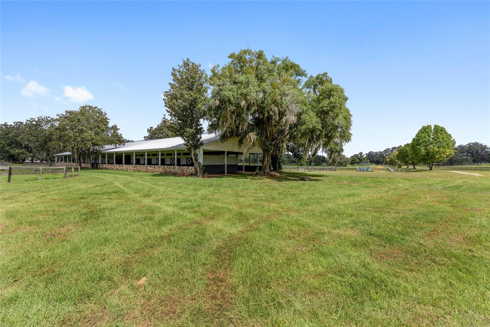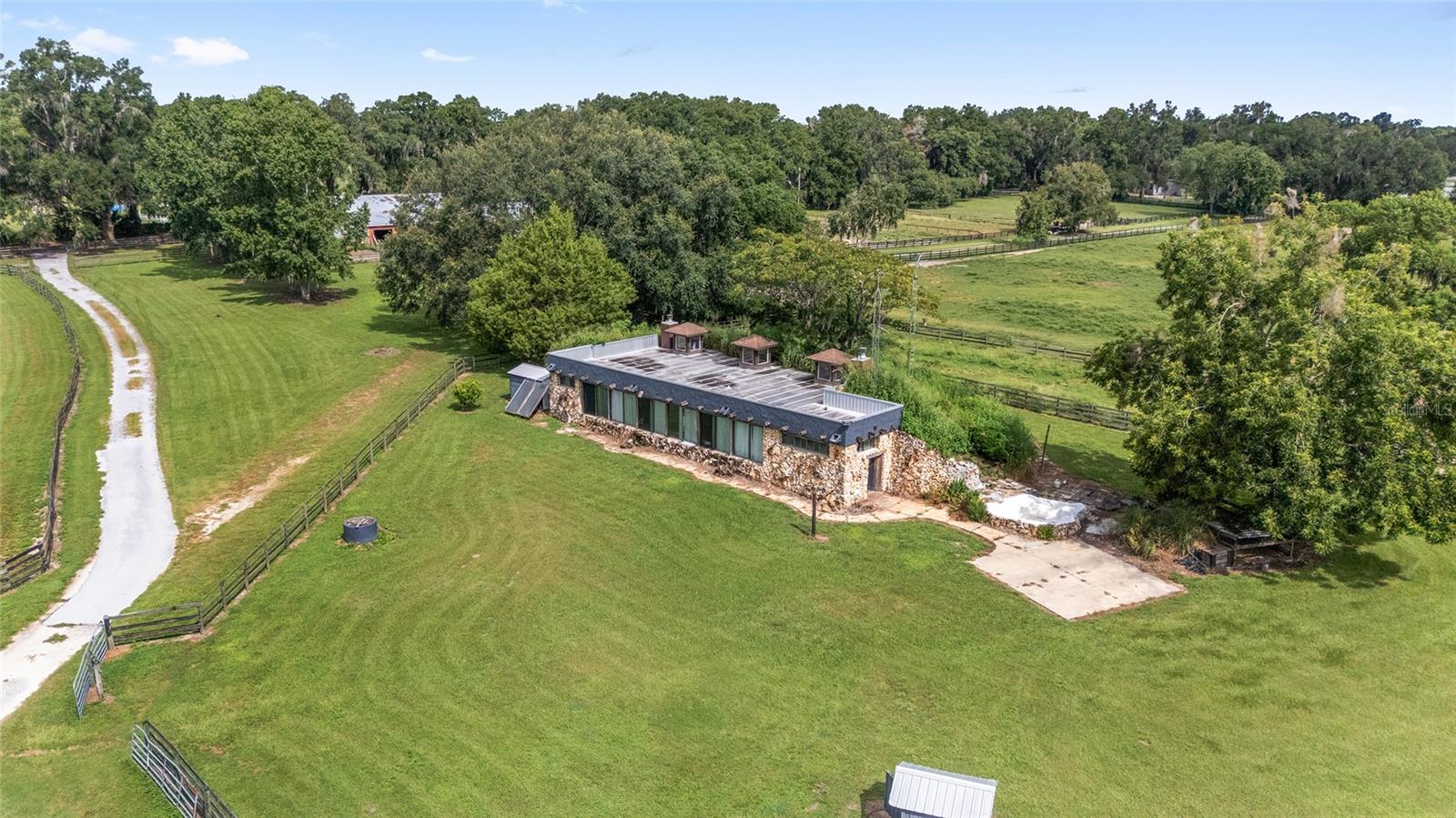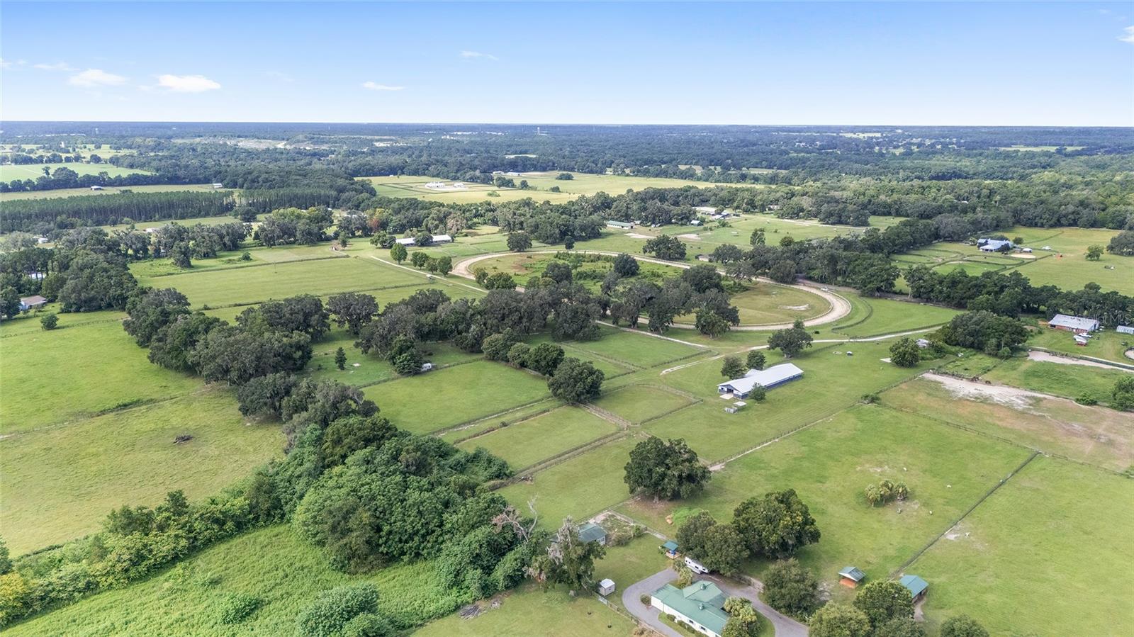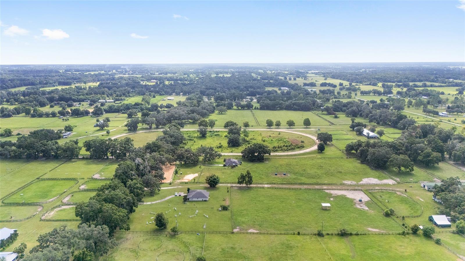 Introducing this remarkable opportunity for equestrian enthusiasts and country lifestyle lovers! 59 acres in 5 lots located just north of OCALA in Reddick ?, Florida, this unique horse farm offers an invaluable blend of functionality and natural beauty. Ideal for those looking to immerse themselves in rural tranquility while still enjoying proximity to essential amenities, including the fabulous World Equestrian Center, ?this property stands as a beacon of potential. If you were to move here you would be joining several other top level and international horse trainers and competitors living in the area. The estate proudly features a modest residence ingeniously constructed with concrete blocks and integrated into a grassy berm, providing a distinctive aesthetic and enhanced stability. Equestrian facilities on this 59 acre plot are meticulously designed to cater to all aspects of horse care and training. The crown jewel is the half-mile dirt training track, surrounded by PVC railing, offering an expansive area for rigorous training sessions. The first of the two barns consists a 20-stall horse barn with a center-isle design, constructed from concrete blocks and topped with a metal gable roof. It features a tack room and an unfinished apartment, providing ample space for storage and potential living quarters. Secondly, the 18-stall horse barn follows a shed row design, including wash racks and additional tack room space, mirroring the quality and functional design of its larger counterpart. Both barns received new steel roofs in 2021. Strategically positioned fencing encompasses 4-board perimeter and 3- and 4-board cross fencing, creating secure and well-organized paddocks. Small paddocks and feeding stations are thoughtfully placed near the barns for efficient operation. The larger paddocks lie in the eastern portion of the farm, offering spacious areas for grazing and exercise. Further enhancing the value of the property are practical features such as three wells and three septic systems, ensuring self-sufficiency and ease of maintenance. This property is a perfect canvas, awaiting a visionary with a passion for equestrian lifestyle to transform it into a personal paradise or a professional facility. Embrace the promise of serene countryside living combined with functional equestrian facilities at this charming Reddick horse farm.