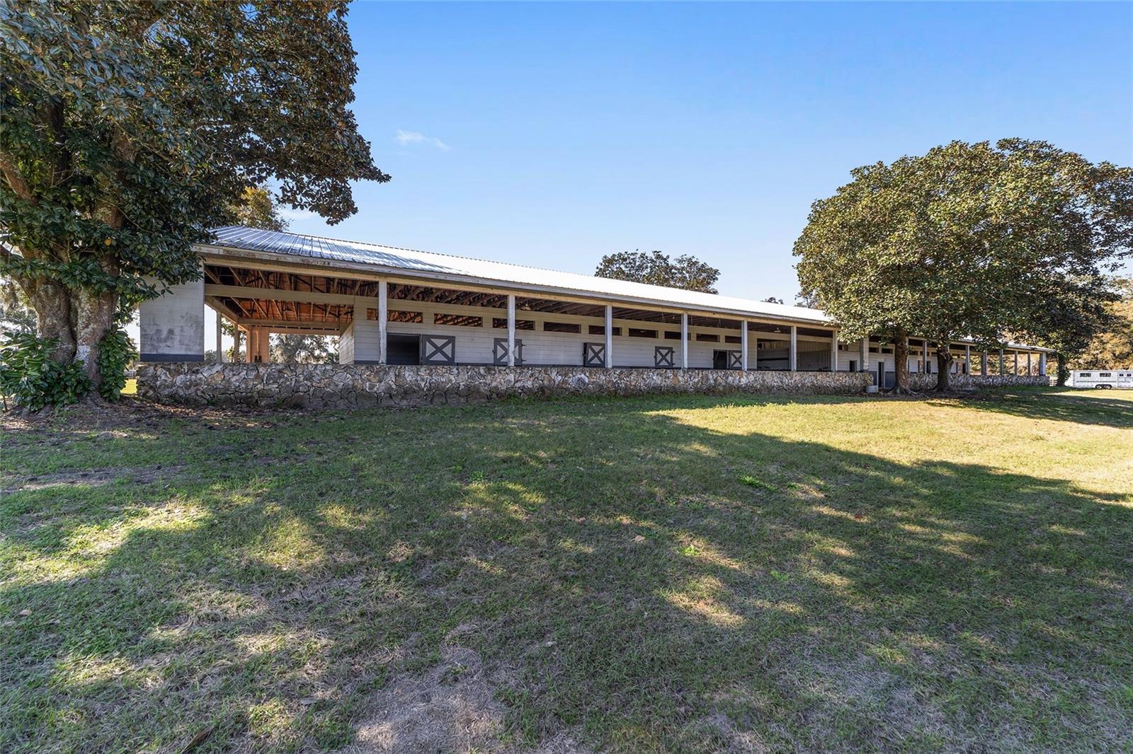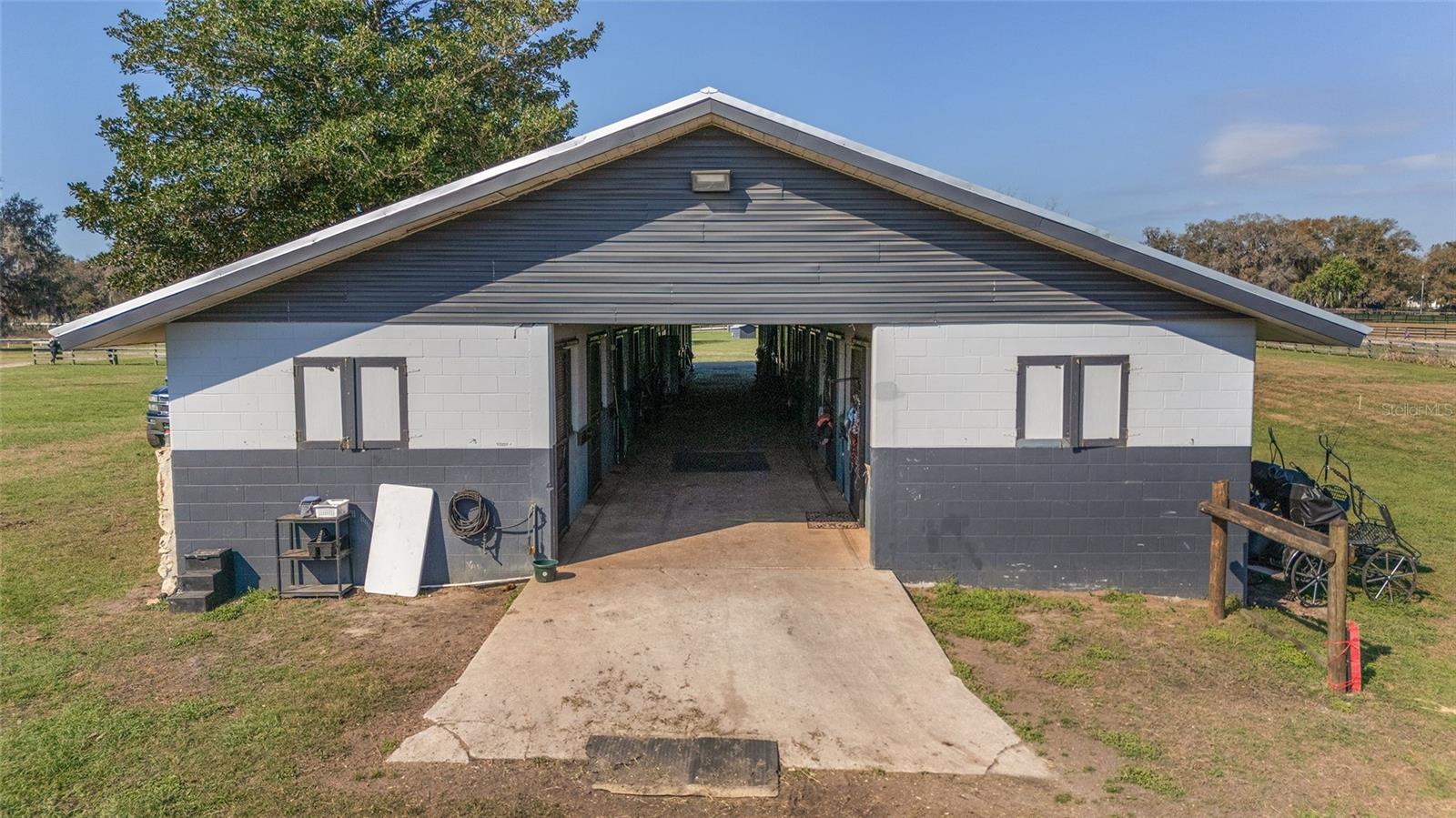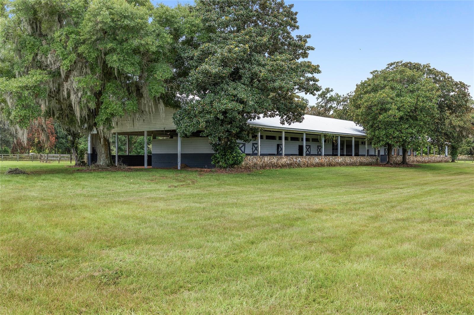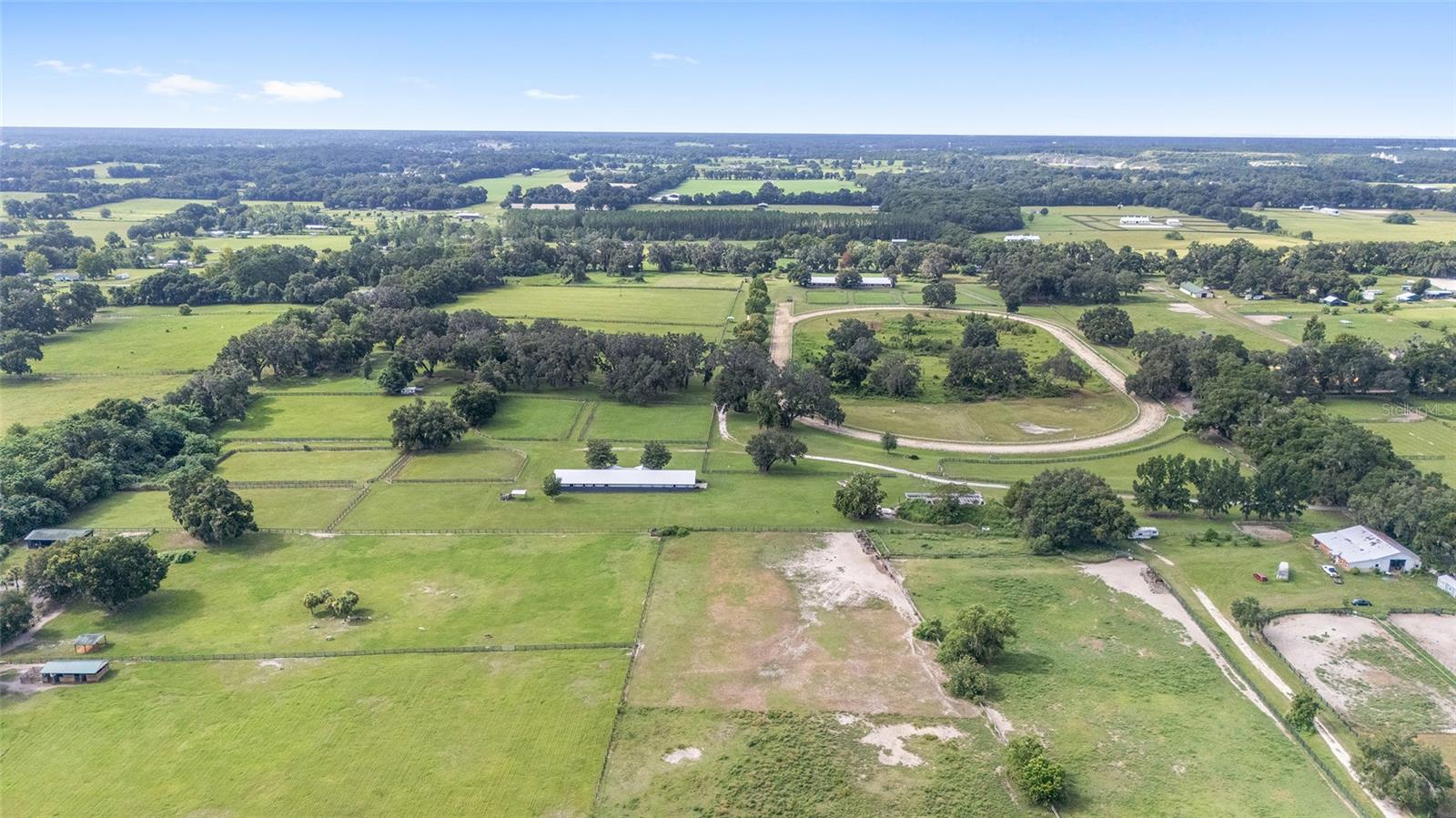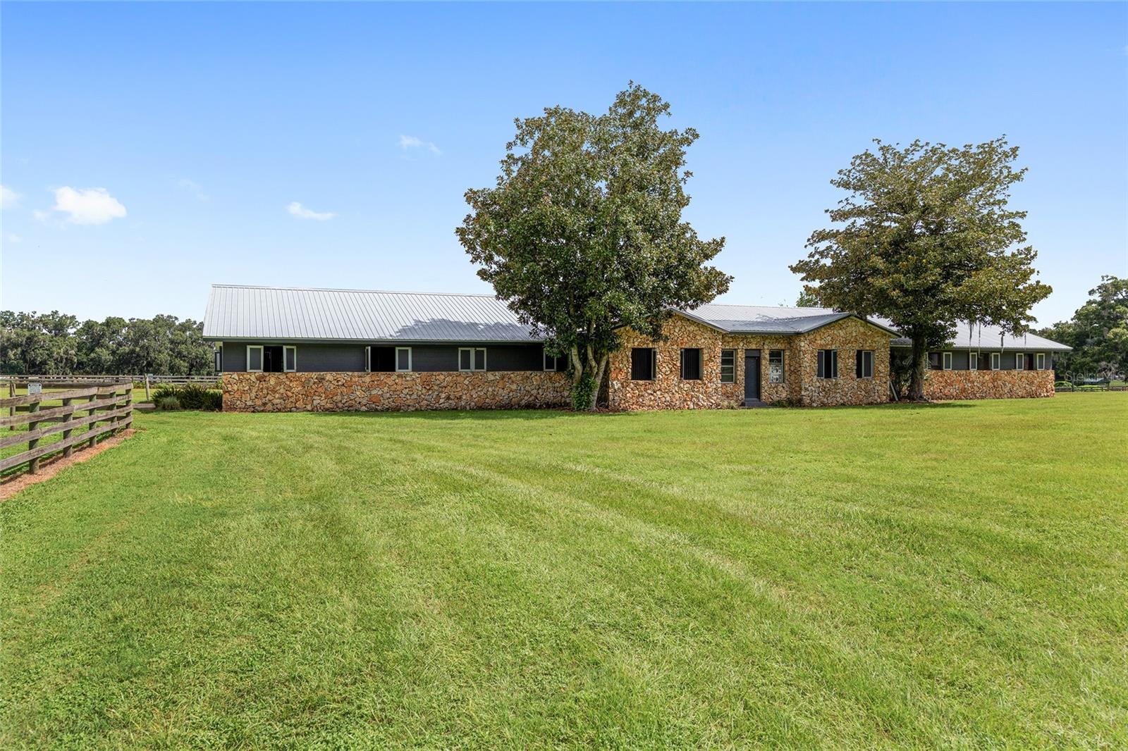 Introducing this remarkable opportunity for equestrian enthusiasts and country lifestyle lovers! 59 acres in 5 lots located just north of OCALA in Reddick ?, Florida, this unique horse farm offers an invaluable blend of functionality and natural beauty. Ideal for those looking to immerse themselves in rural tranquility while still enjoying proximity to essential amenities, including the fabulous World Equestrian Center, ?this property stands as a beacon of potential. If you were to move here you would be joining several other top level and international horse trainers and competitors living in the area. The estate proudly features a modest residence ingeniously constructed with concrete blocks and integrated into a grassy berm, providing a distinctive aesthetic and enhanced stability. Equestrian facilities on this 59 acre plot are meticulously designed to cater to all aspects of horse care and training. The crown jewel is the half-mile dirt training track, surrounded by PVC railing, offering an expansive area for rigorous training sessions. The first of the two barns consists a 20-stall horse barn with a center-isle design, constructed from concrete blocks and topped with a metal gable roof. It features a tack room and an unfinished apartment, providing ample space for storage and potential living quarters. Secondly, the 18-stall horse barn follows a shed row design, including wash racks and additional tack room space, mirroring the quality and functional design of its larger counterpart. Both barns received new steel roofs in 2021. Strategically positioned fencing encompasses 4-board perimeter and 3- and 4-board cross fencing, creating secure and well-organized paddocks. Small paddocks and feeding stations are thoughtfully placed near the barns for efficient operation. The larger paddocks lie in the eastern portion of the farm, offering spacious areas for grazing and exercise. Further enhancing the value of the property are practical features such as three wells and three septic systems, ensuring self-sufficiency and ease of maintenance. This property is a perfect canvas, awaiting a visionary with a passion for equestrian lifestyle to transform it into a personal paradise or a professional facility. Embrace the promise of serene countryside living combined with functional equestrian facilities at this charming Reddick horse farm.