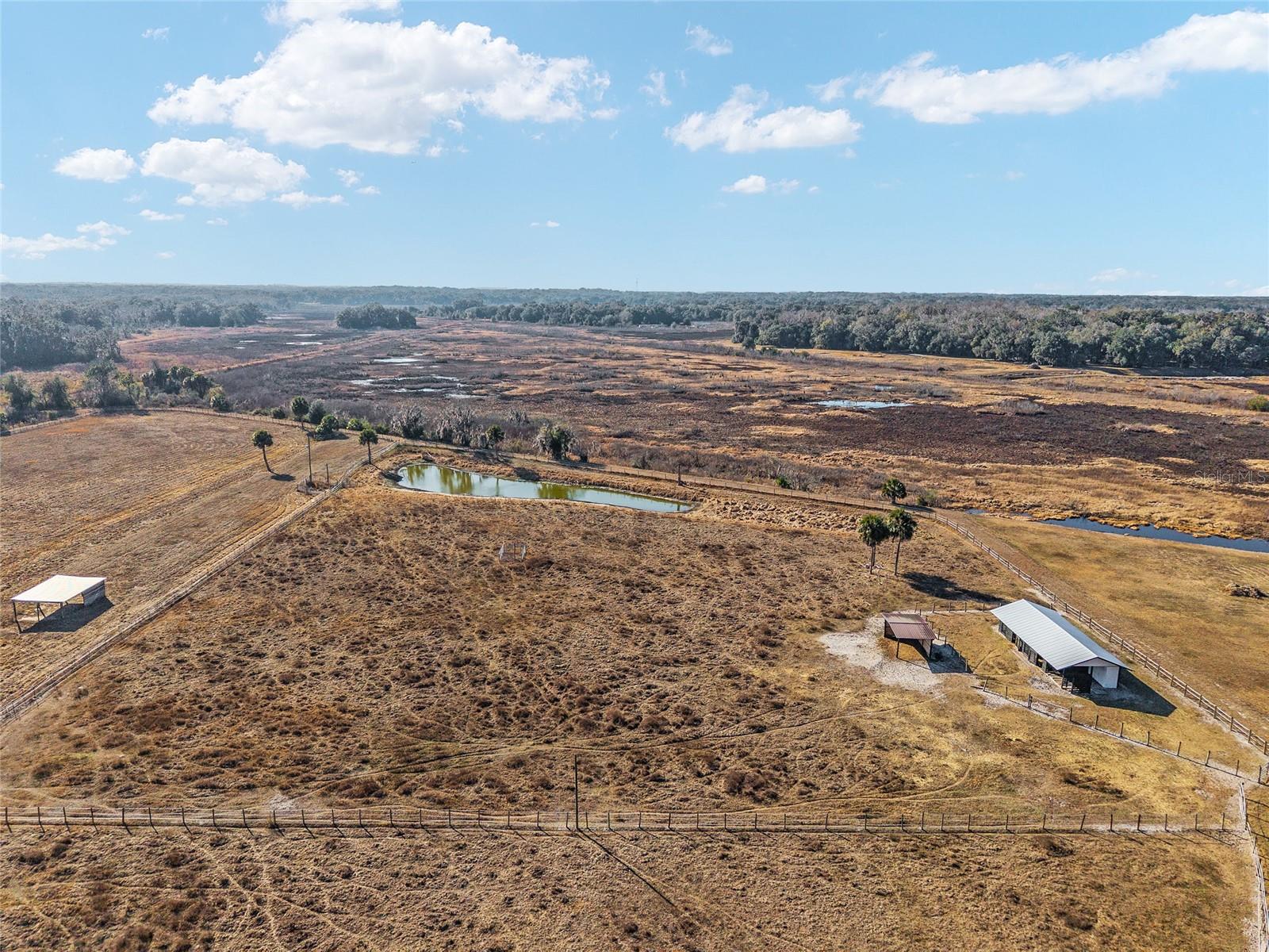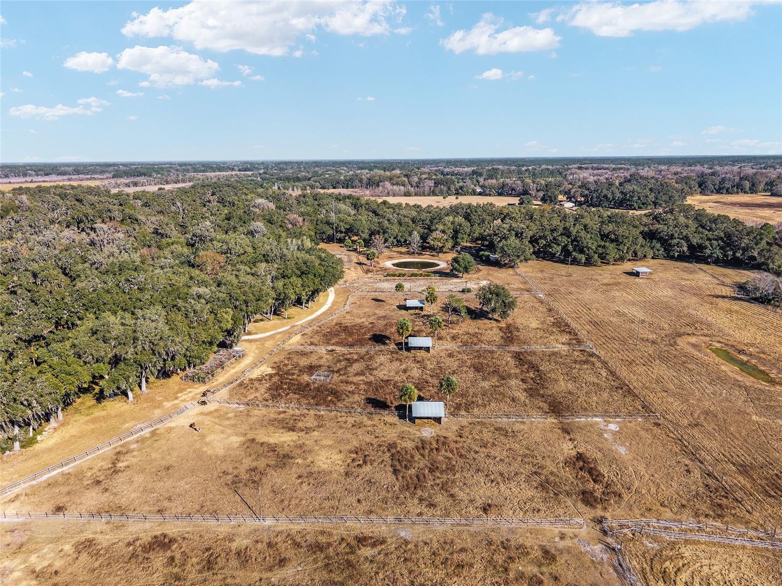 Nestled within the picturesque countryside of Citra, this exceptional 21+ acre horse farm offers the perfect blend of rural tranquility and fully equipped equestrian living. Surrounded by mature oak trees and lush pastures, the property is thoughtfully designed for both comfort and functionality. At the heart of the farm sits a charming three-bedroom, two-bath ranch home offering approximately 1,620 square feet of living space. The residence showcases rustic character with warm wood accents, a beautiful stone fireplace, cathedral ceilings, skylights, and spacious living areas filled with natural light overlooking the surrounding paddocks and countryside. The farm is a true equestrian enthusiast’s dream, featuring multiple barns with tack and feed rooms, a groom’s apartment overlooking the foaling stall, five paddocks each with their own shelter sheds, three round pens, and a regulation-size dressage arena with clay base footing. Additional improvements include a pole barn for equipment, chicken coop, and a large aviary/kennel building with workshop space. A separate two-bedroom, two-bath mobile home located near the prairie provides ideal accommodations for guests, caretakers, or potential rental income and has been updated with new flooring, cabinetry, bathroom improvements, porch, skirting, and a newer roof. The property is well supported by infrastructure including an RV pad with water, electric, and sewer hookups, two wells that can be connected if desired, and three septic systems servicing different areas of the farm. A generator provides backup power to key structures, and many of the roofs throughout the property have been replaced in recent years. A transferable Choice Home Warranty further enhances peace of mind. This versatile and fully improved farm presents a rare opportunity to embrace country living while operating a functional equestrian facility suitable for boarding, breeding, training, or private use.