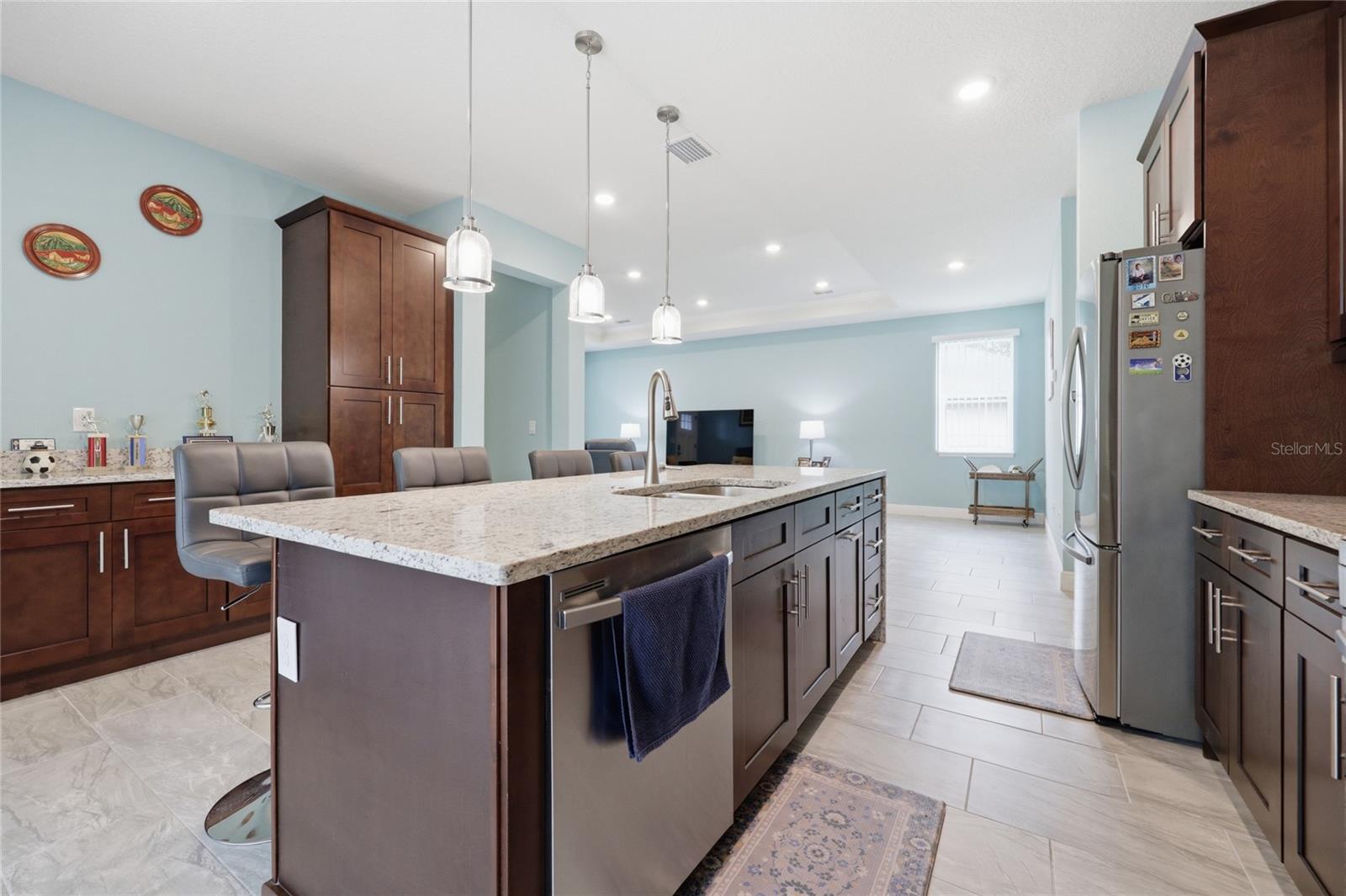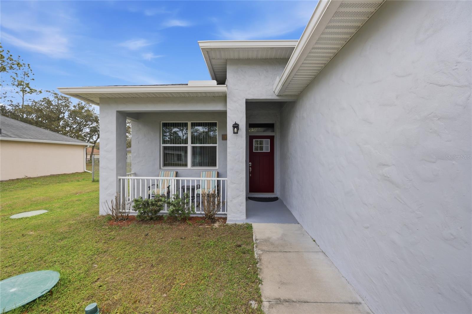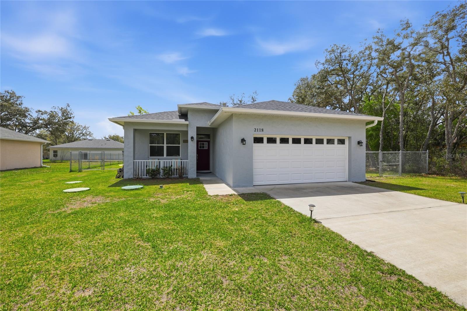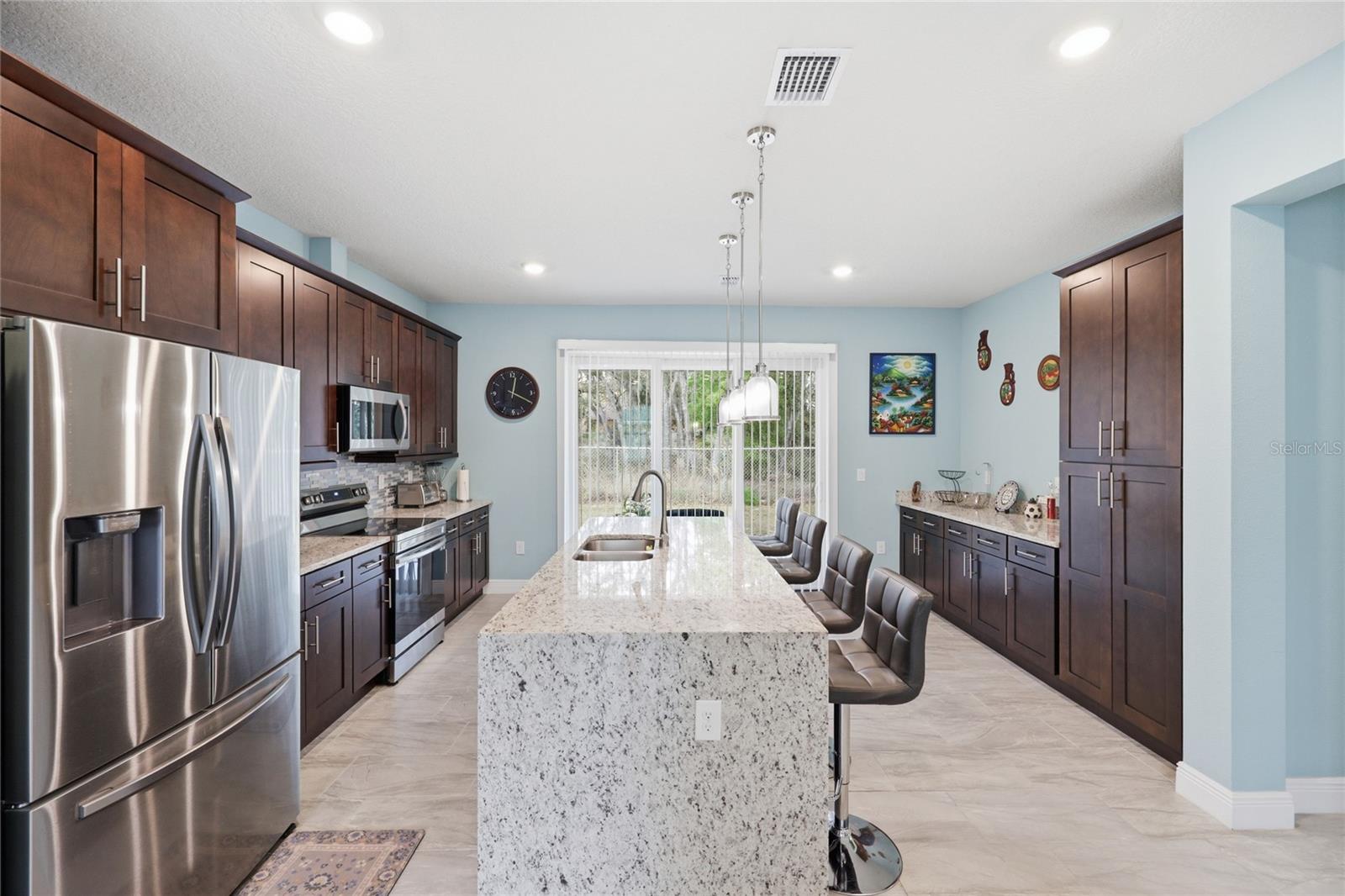Modern elegance meets effortless living in the heart of Citrus Springs. Step into this sleek, nearly new 3-bedroom, 2-bath home offering a perfect blend of style and functionality. Built just three years ago, this home showcases high ceilings and a modern open layout designed for comfortable everyday living and entertaining alike. The kitchen is a true centerpiece, featuring a striking infinity island, rich dark walnut cabinetry, and stainless steel appliances. A built-in dry bar adds an extra touch of sophistication—perfect for hosting guests. The oversized primary suite serves as a private retreat, complete with a spacious walk-in closet and a beautifully designed bathroom featuring a soaking tub, glass-enclosed shower, and contemporary finishes throughout. Additional highlights include cozy carpeted bedrooms, a generously sized laundry room, and a two-car garage. With everything still fresh and modern, this home offers peace of mind and low maintenance for years to come.