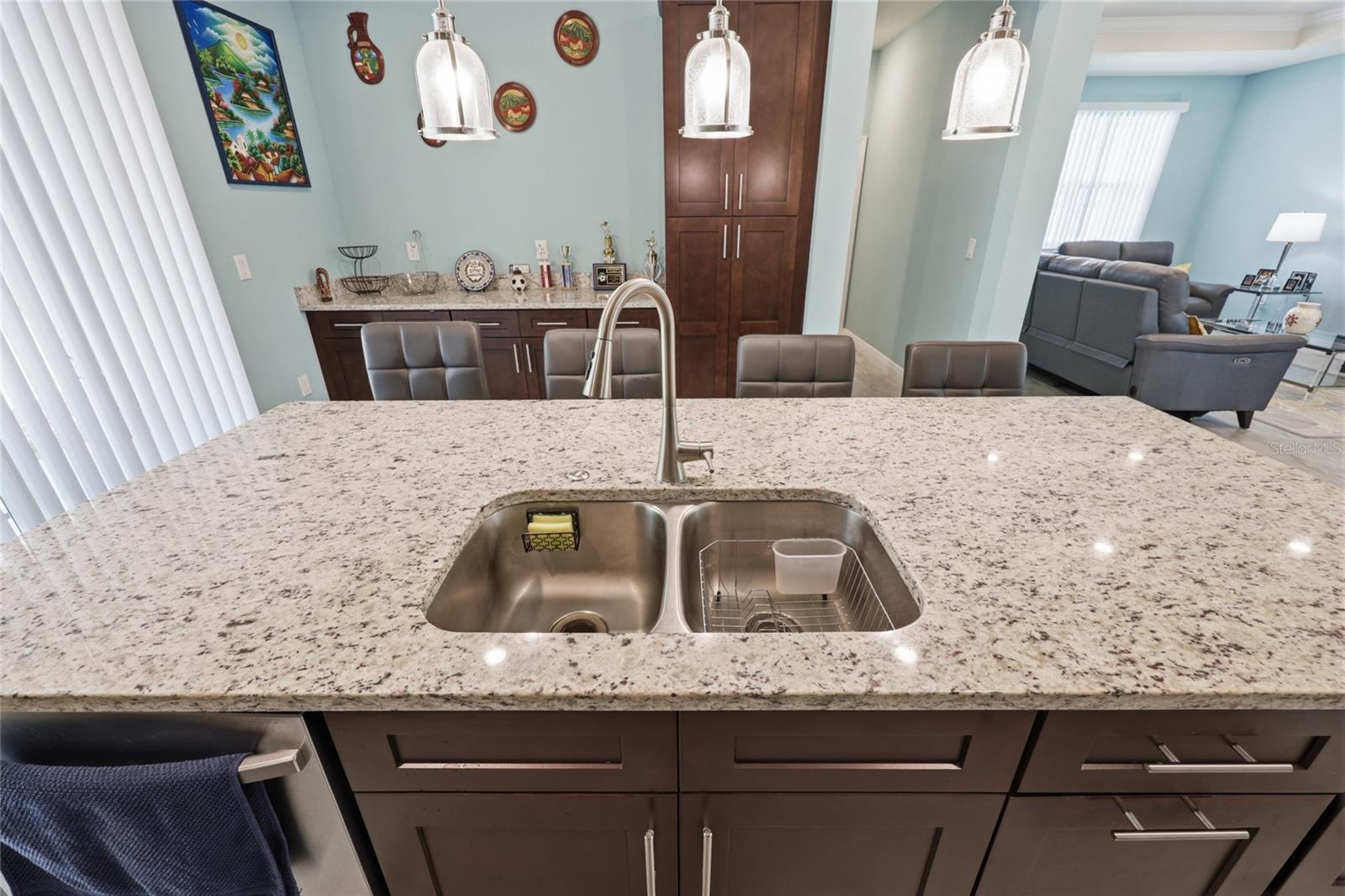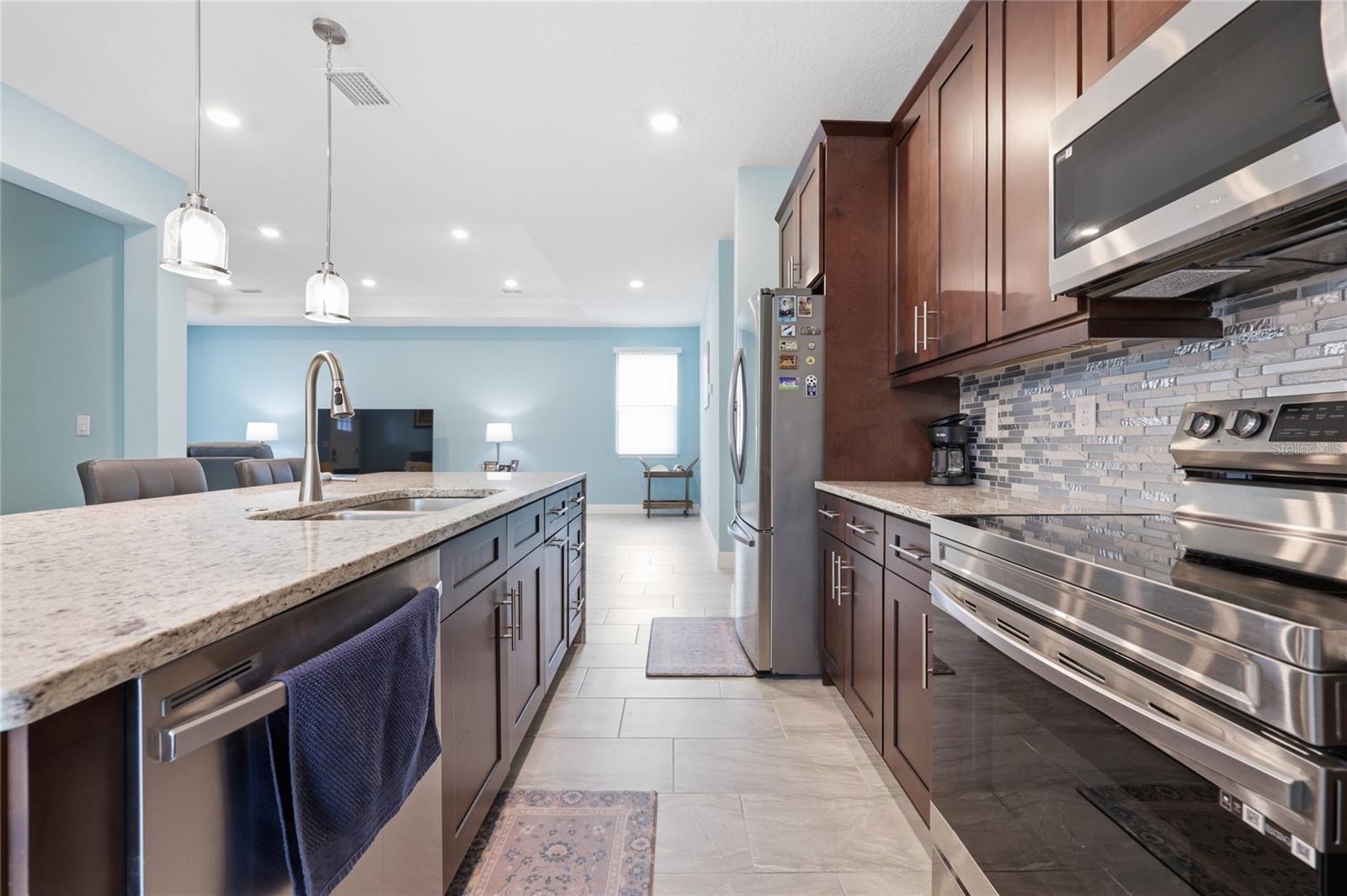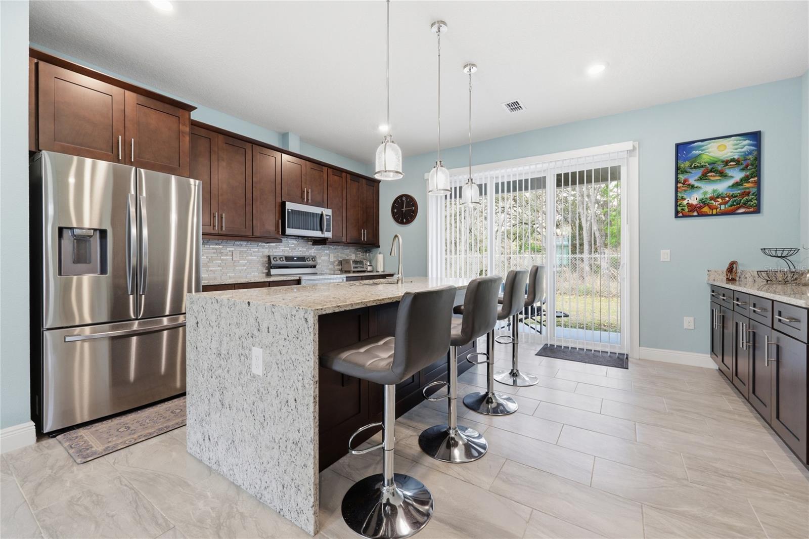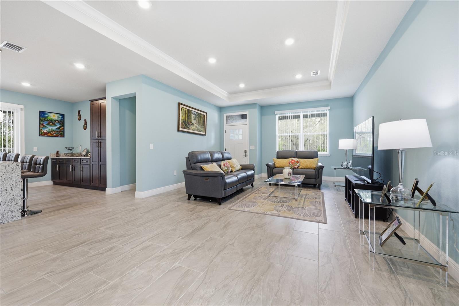 Modern elegance meets effortless living in the heart of Citrus Springs. Step into this sleek, nearly new 3-bedroom, 2-bath home offering a perfect blend of style and functionality. Built just three years ago, this home showcases high ceilings and a modern open layout designed for comfortable everyday living and entertaining alike. The kitchen is a true centerpiece, featuring a striking infinity island, rich dark walnut cabinetry, and stainless steel appliances. A built-in dry bar adds an extra touch of sophistication—perfect for hosting guests. The oversized primary suite serves as a private retreat, complete with a spacious walk-in closet and a beautifully designed bathroom featuring a soaking tub, glass-enclosed shower, and contemporary finishes throughout. Additional highlights include cozy carpeted bedrooms, a generously sized laundry room, and a two-car garage. With everything still fresh and modern, this home offers peace of mind and low maintenance for years to come.