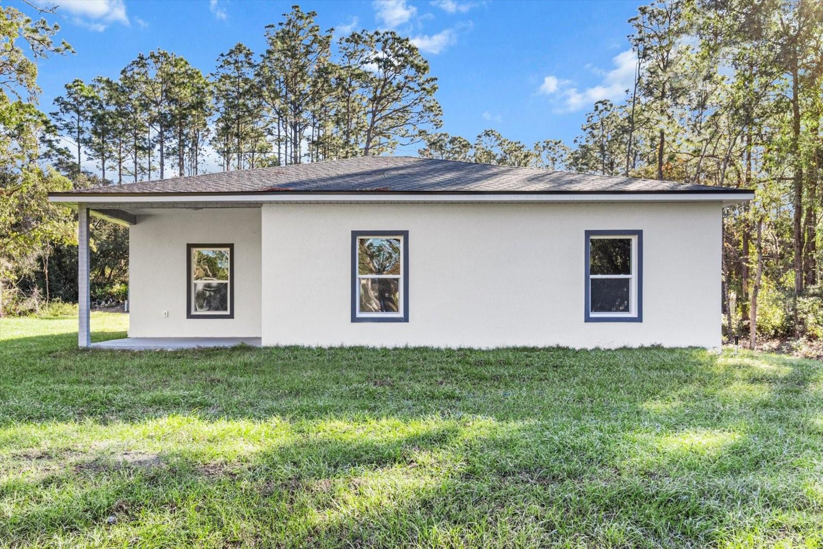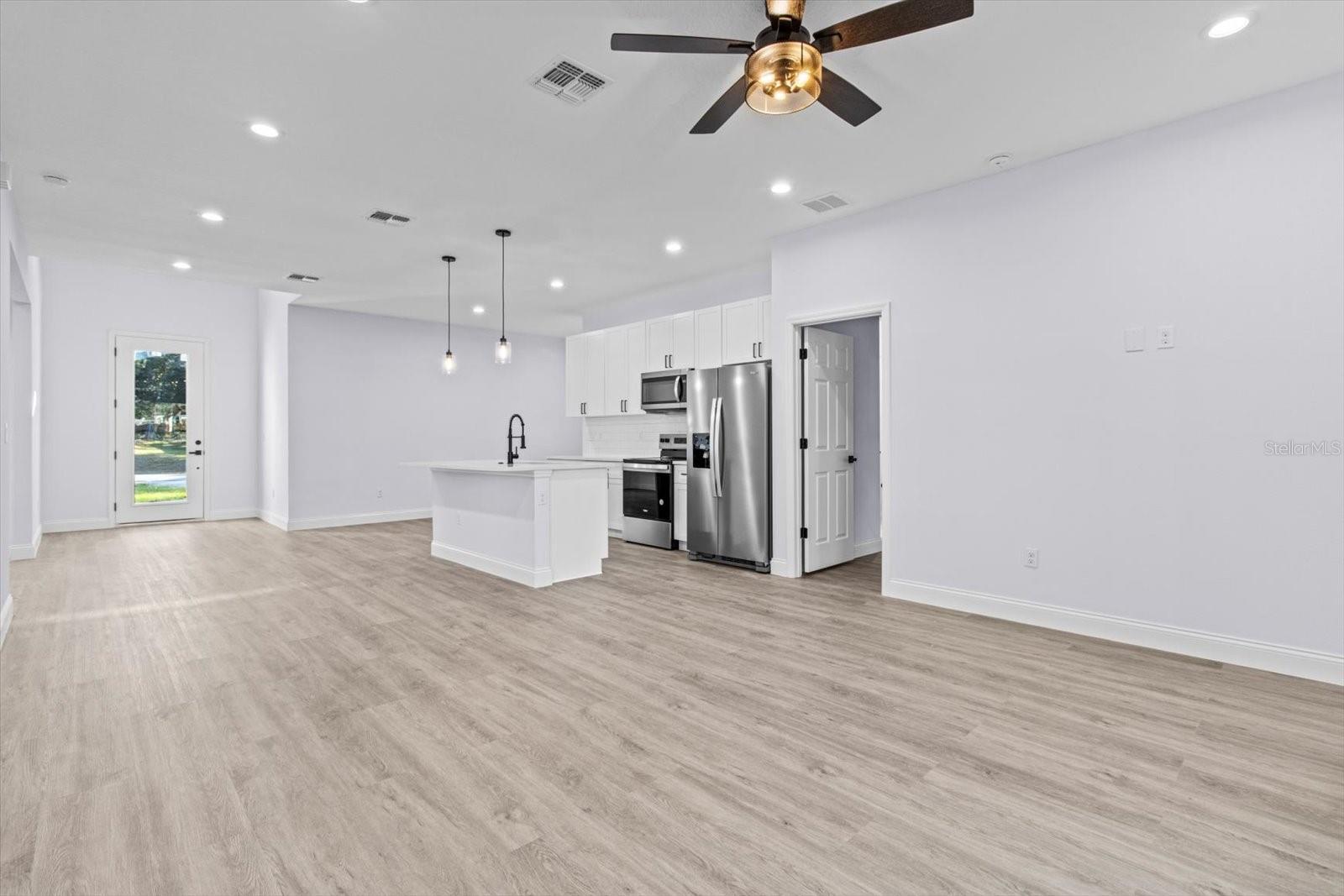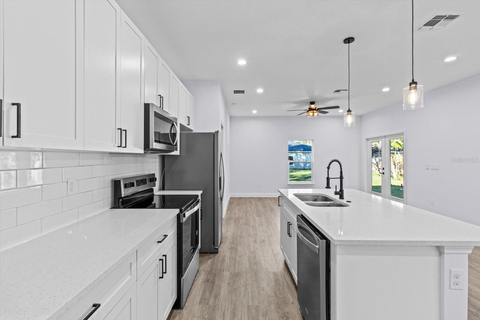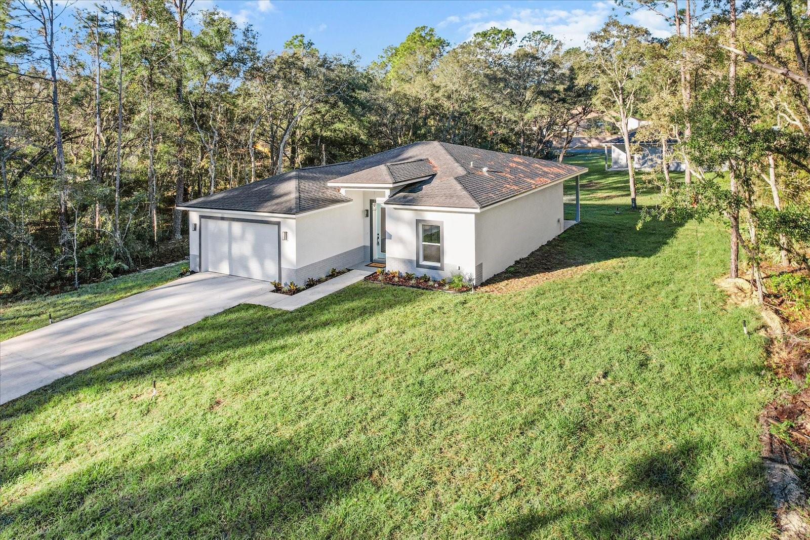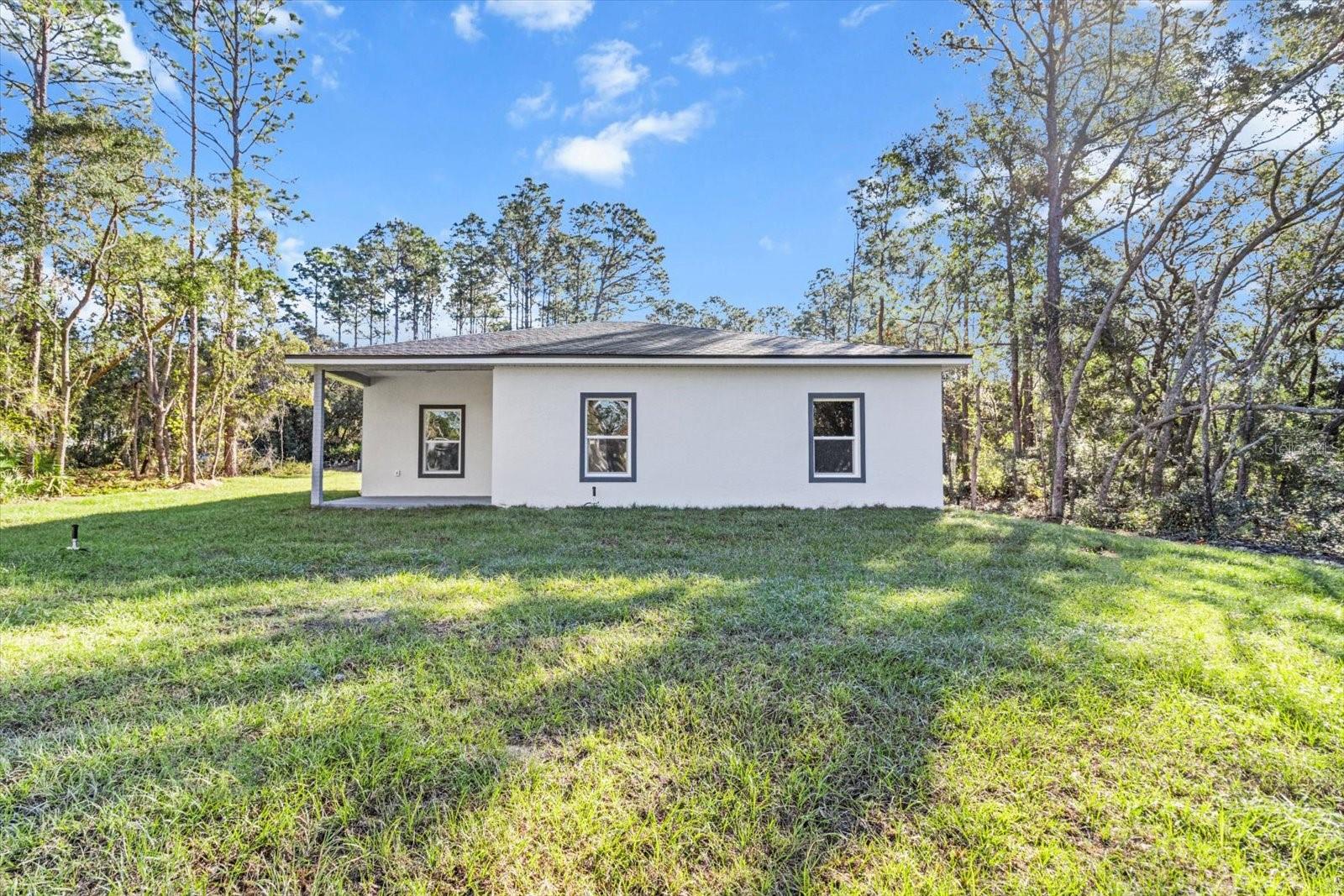 This stunning 3-bedroom, 2-bathroom single-family home offers the perfect blend of modern design and comfort. From the moment you step inside, you’ll be impressed by the meticulous attention to detail and premium finishes throughout. The open-concept living and dining area, featuring soaring 9'4" ceilings and elegant vinyl flooring, creates a bright and inviting space perfect for entertaining. The modern kitchen is both functional and stylish, featuring custom 42” wood cabinets, Quartz countertops, a subway tile backsplash, a spacious island with seating, a generous pantry, and brand-new stainless steel appliances. The luxurious master suite offers views of the backyard and includes a spa-like bathroom with dual sink Quartz vanity tops, a walk-in shower with a soothing rain showerhead, an expansive walk-in closet, and a stylish barn door connecting the primary bedroom to the bathroom. Enjoy Florida living on the covered lanai and expansive backyard, ideal for gatherings. The 2-car garage provides ample storage for vehicles and more. Located in Citrus Springs, you’ll be just minutes from the Withlacoochee State Trail for biking and jogging, Rainbow Springs State Park for kayaking and swimming, and the Citrus Springs Golf & Country Club. Don’t miss this opportunity—schedule a showing today and make this exceptional home yours!
