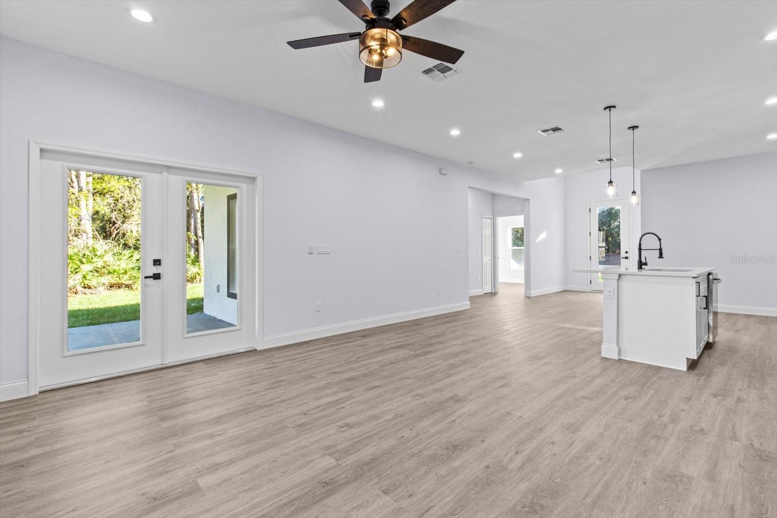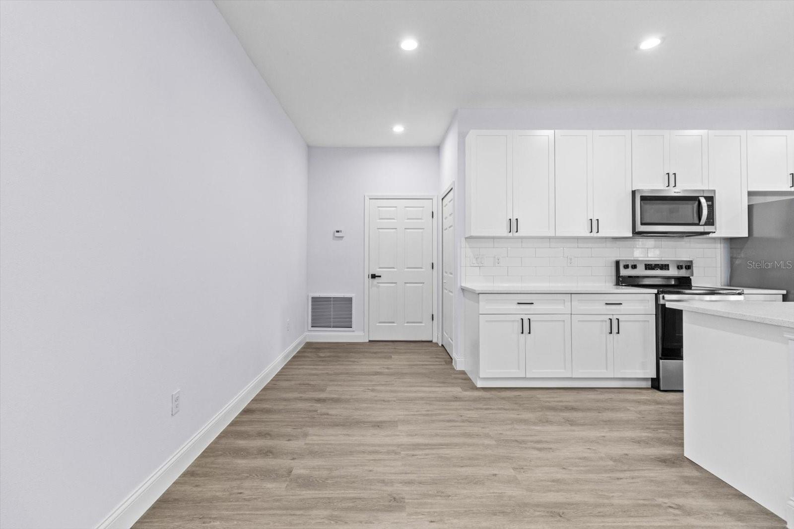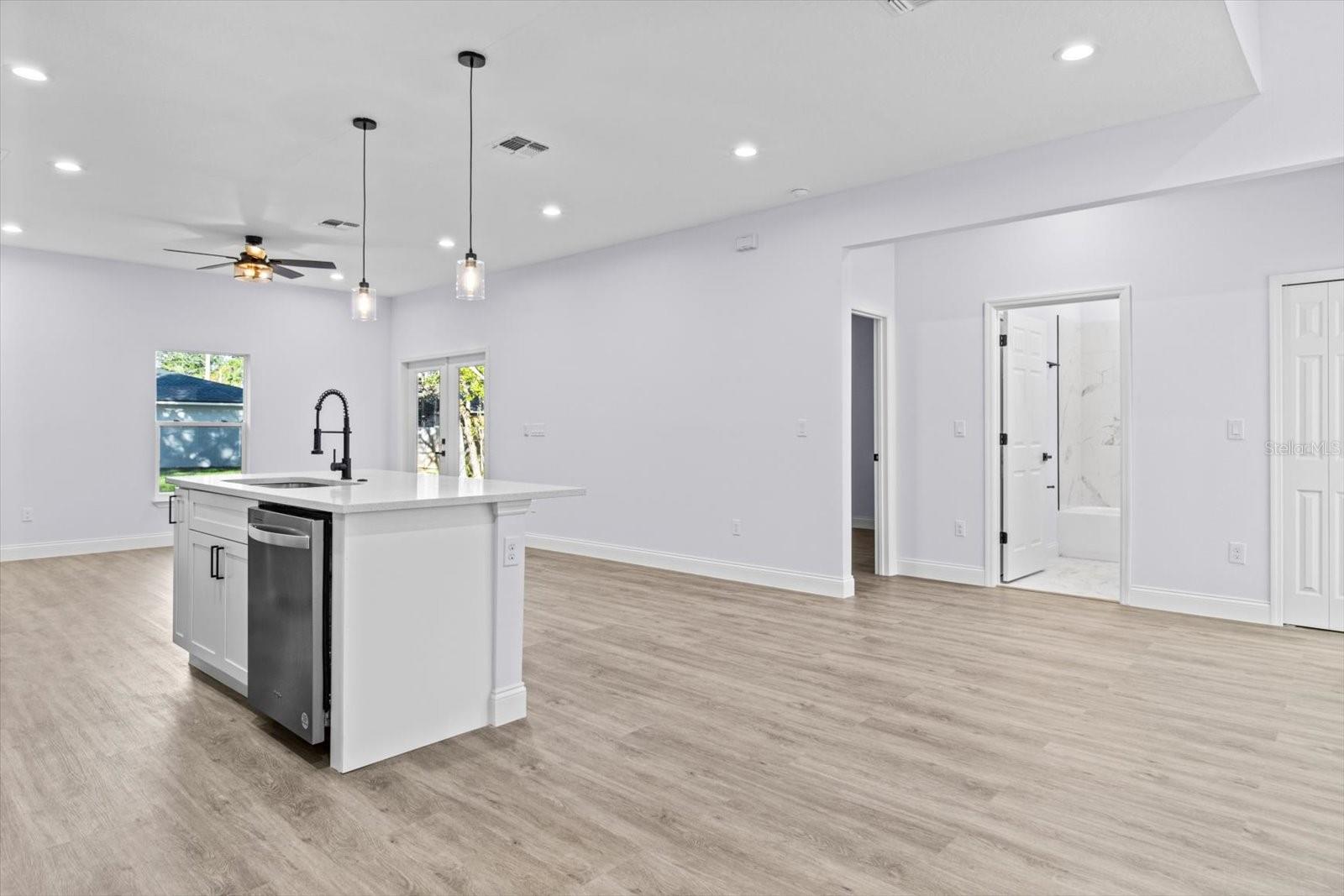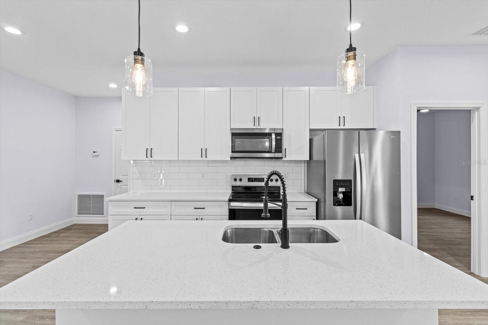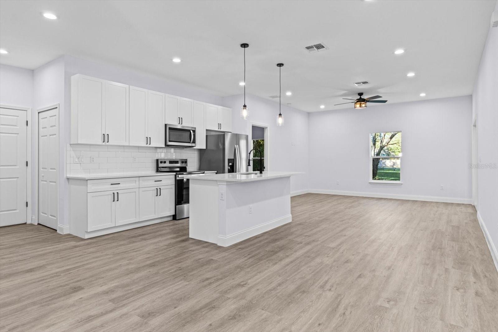 This stunning 3-bedroom, 2-bathroom single-family home offers the perfect blend of modern design and comfort. From the moment you step inside, you’ll be impressed by the meticulous attention to detail and premium finishes throughout. The open-concept living and dining area, featuring soaring 9'4" ceilings and elegant vinyl flooring, creates a bright and inviting space perfect for entertaining. The modern kitchen is both functional and stylish, featuring custom 42” wood cabinets, Quartz countertops, a subway tile backsplash, a spacious island with seating, a generous pantry, and brand-new stainless steel appliances. The luxurious master suite offers views of the backyard and includes a spa-like bathroom with dual sink Quartz vanity tops, a walk-in shower with a soothing rain showerhead, an expansive walk-in closet, and a stylish barn door connecting the primary bedroom to the bathroom. Enjoy Florida living on the covered lanai and expansive backyard, ideal for gatherings. The 2-car garage provides ample storage for vehicles and more. Located in Citrus Springs, you’ll be just minutes from the Withlacoochee State Trail for biking and jogging, Rainbow Springs State Park for kayaking and swimming, and the Citrus Springs Golf & Country Club. Don’t miss this opportunity—schedule a showing today and make this exceptional home yours!