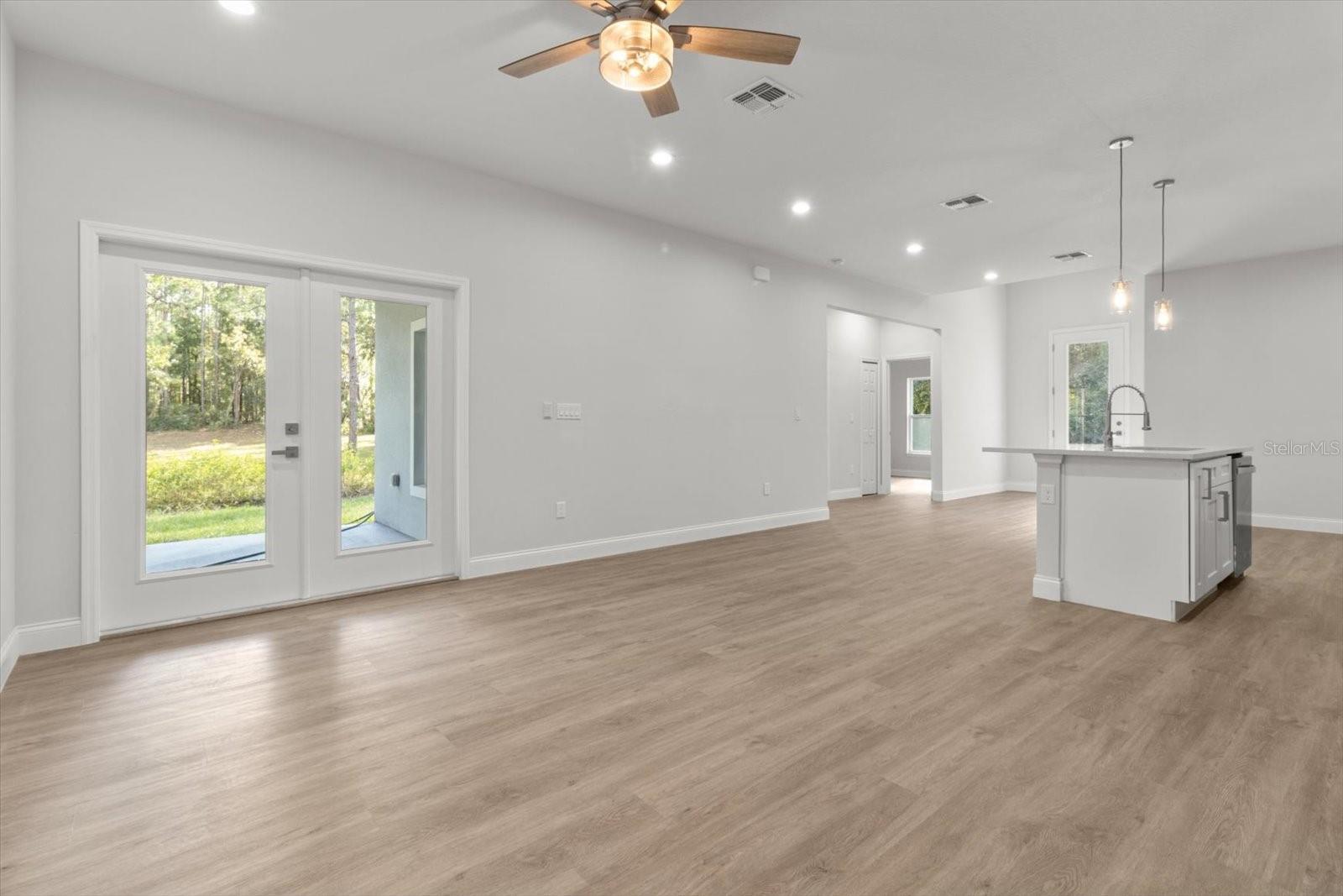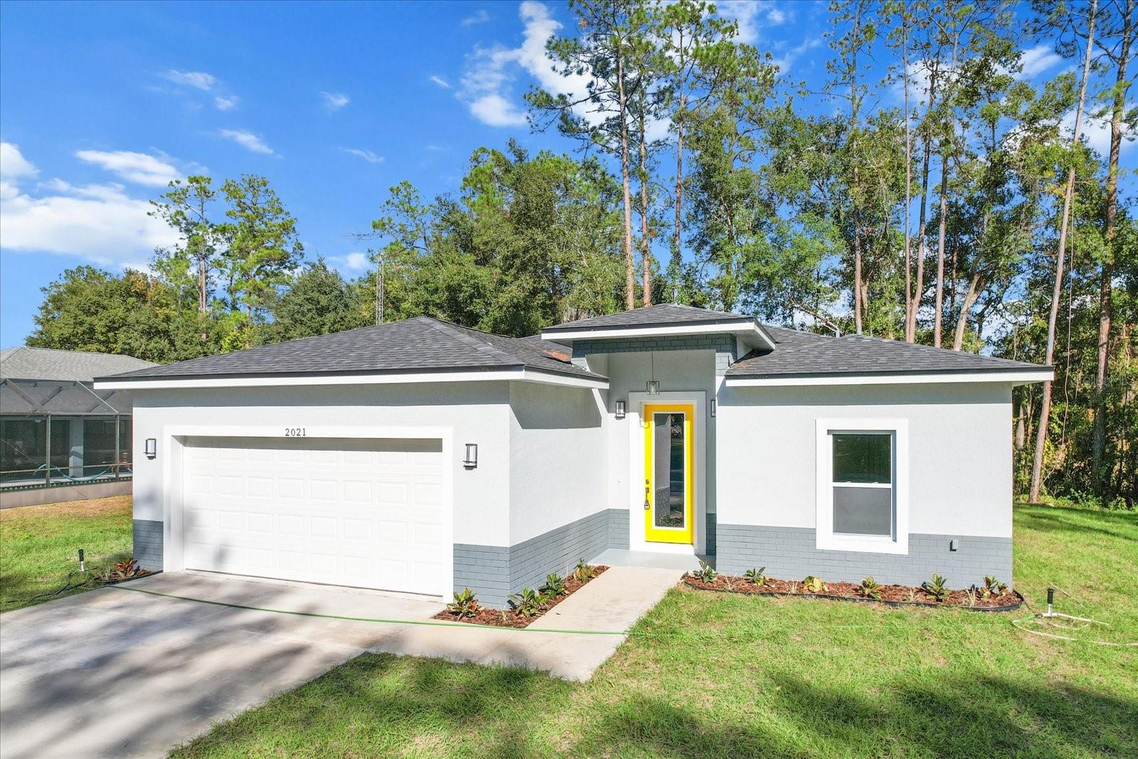 This stunning 3-bedroom, 2-bathroom single-family home offers the perfect blend of modern design and comfort. From the moment you step inside, you’ll be impressed by the meticulous attention to detail and premium finishes throughout. The open-concept living and dining area, featuring soaring 9'4" ceilings and elegant vinyl flooring, creates a bright and inviting space perfect for entertaining. The modern kitchen is both functional and stylish, featuring custom 42” wood cabinets, Quartz countertops, a subway tile backsplash, a spacious island with seating, a generous pantry, and brand-new stainless steel appliances. The luxurious master suite offers views of the backyard and includes a spa-like bathroom with dual sink Quartz vanity tops, a walk-in shower with a soothing rain showerhead, an expansive walk-in closet, and a stylish barn door connecting the primary bedroom to the bathroom. Enjoy Florida living on the covered lanai and expansive backyard, ideal for gatherings. The 2-car garage provides ample storage for vehicles and more. Located in Citrus Springs, you’ll be just minutes from the Withlacoochee State Trail for biking and jogging, Rainbow Springs State Park for kayaking and swimming, and the Citrus Springs Golf & Country Club. Don’t miss this opportunity—schedule a showing today and make this exceptional home yours!