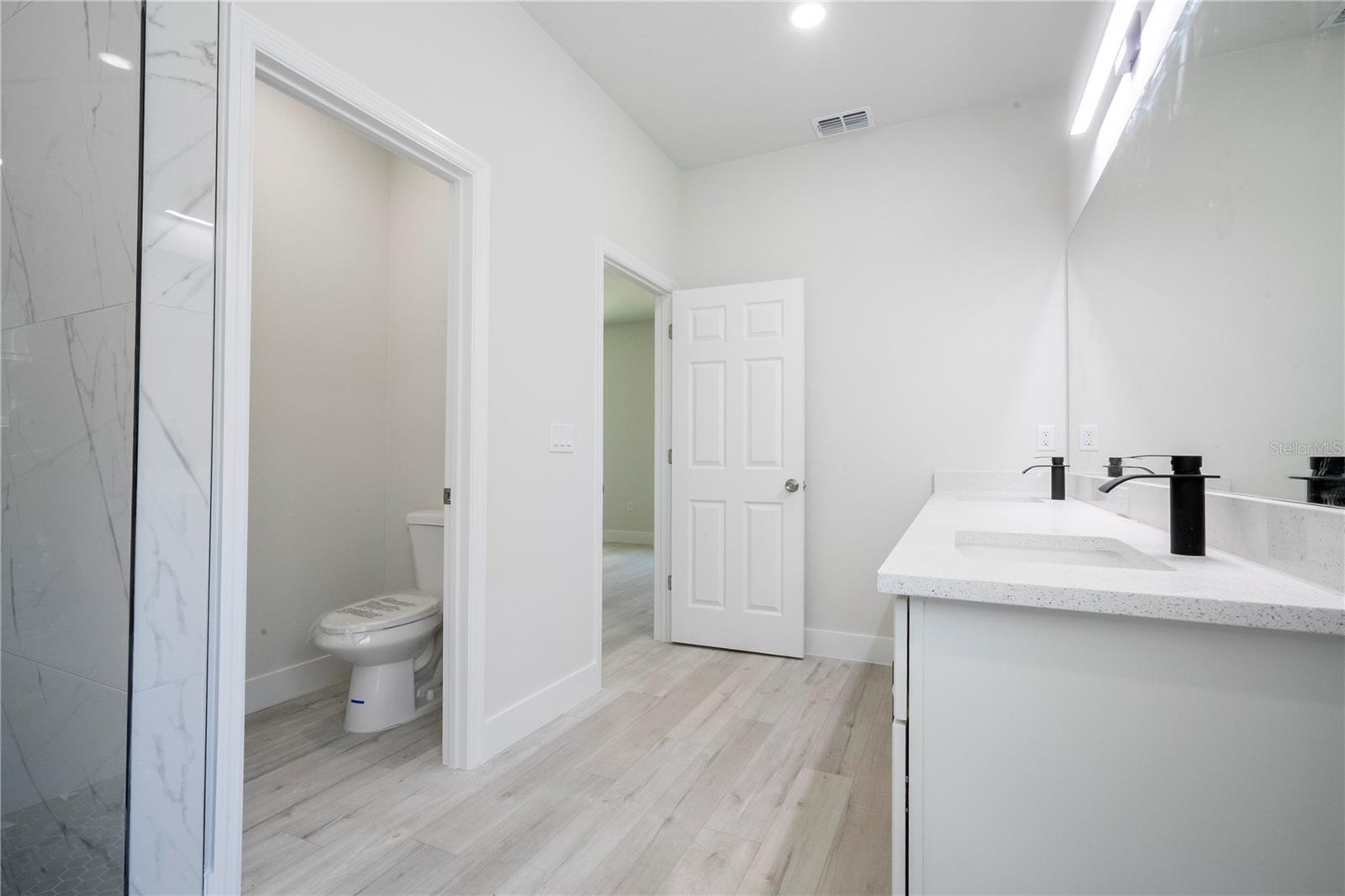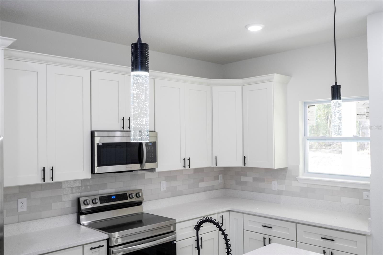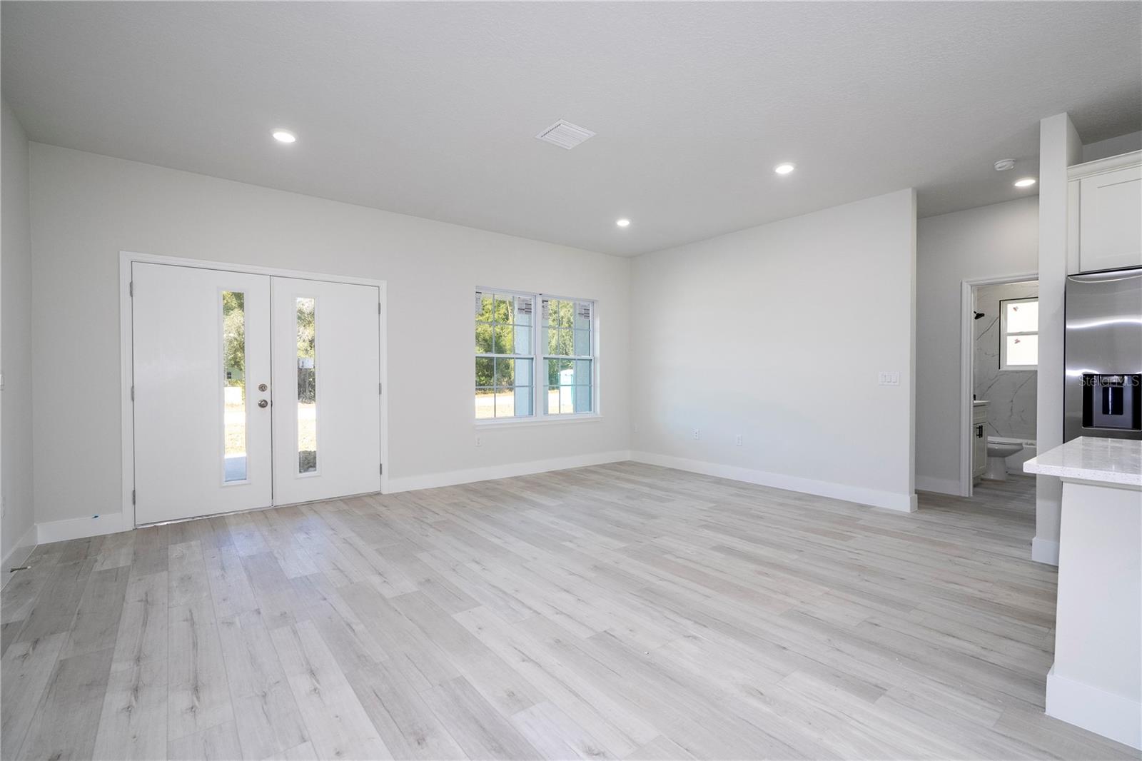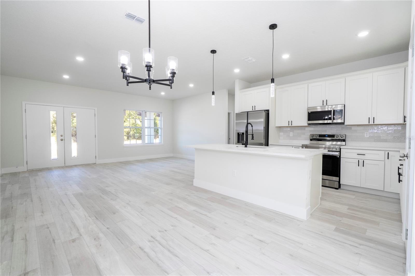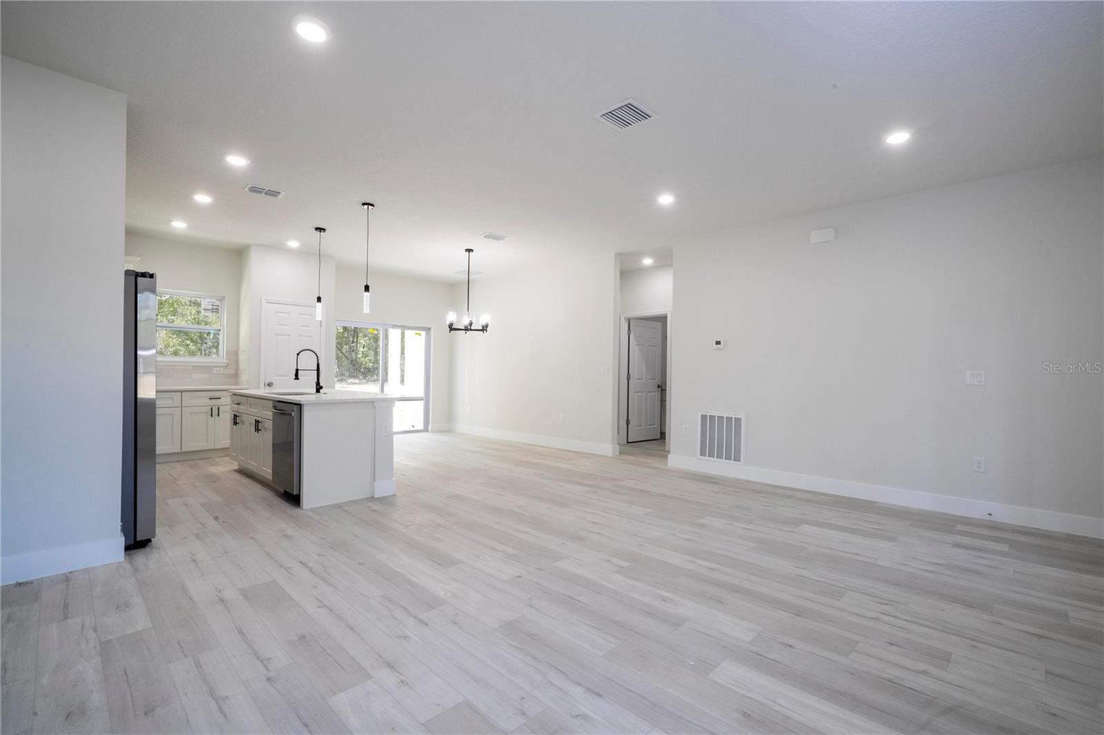 Seller is giving $5,000 in closing costs! BRAND-NEW CONSTRUCTION, MOVE-IN READY! Discover this stunning and spacious 3-bedroom, 2-bath home with a 2-car garage, thoughtfully designed for comfort and modern living. Step onto the inviting covered front porch and through the elegant double entry doors into a bright and open floor plan. The living area is at the front, while the kitchen and dining spaces flow seamlessly toward the back, creating the perfect space for entertaining. This home boasts luxury vinyl plank flooring, quartz countertops, stainless steel appliances, 42" cabinets with crown molding, and a large kitchen sink. The spacious island with a breakfast bar and built-in pantry add both style and functionality. A separate indoor laundry room includes a stainless steel sink, quartz countertop, and an extended shelf for extra storage. The primary suite is a bright and airy retreat, featuring two windows for natural light, a generous walk-in closet, and an ensuite bathroom. The primary bath is designed with dual sinks, a tiled shower, and a private water closet. The second and third bedrooms are situated on the opposite side of the home, with a stylish guest bathroom between them, complete with a quartz countertop and tiled tub surround. Through the sliding glass doors, step onto the expansive covered lanai, spanning over half the width of the home, perfect for outdoor relaxation. Enjoy morning coffee on the front porch and sunsets from your private lanai in the evening. Located near the Withlacoochee Trail, Withlacoochee River, golf courses, and Gulf Coast boat ramps, this home offers the perfect blend of tranquility and adventure. Schedule your showing today, you won't want to miss this one!