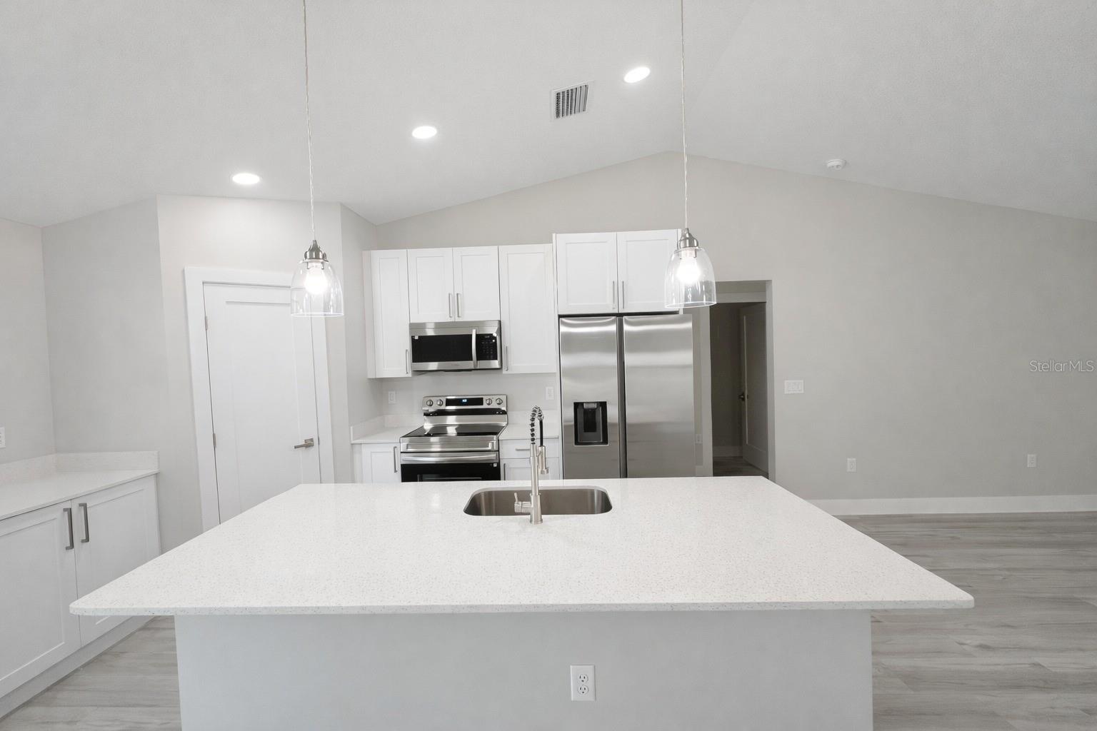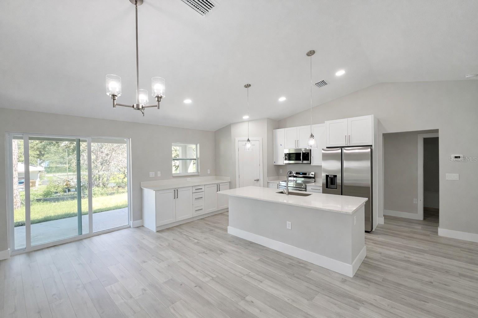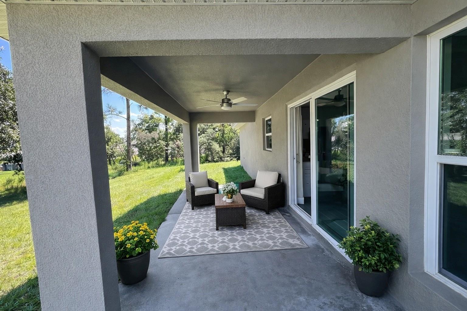 BRAND NEW CONSTRUCTION – MOVE-IN READY! Welcome to this beautifully crafted 3-bedroom, 2-bath home located in the desirable community of Citrus Springs – with NO HOA and NO CDD fees! Built for comfort and style, this home offers a spacious open-concept layout featuring waterproof luxury vinyl plank (LVP) flooring throughout – both stylish and durable. The modern kitchen includes quartz countertops, 42” shaker cabinets, stainless steel appliances, and a large island with breakfast bar – ideal for entertaining or casual family meals. The split-bedroom floor plan ensures privacy, with a generously sized primary suite complete with a walk-in closet and a luxurious ensuite bathroom featuring dual vanities and a tiled walk-in shower. Step outside to an oversized covered lanai and enjoy Florida living year-round. Additional features include a charming front porch and a location on a quiet, fully developed street – just minutes from schools, parks, and the Citrus Springs Community Center. Seller is willing to contribute toward buyer’s closing costs with an acceptable offer. One or more photos may have been virtually staged. Don’t miss your chance to own this brand-new, move-in-ready home in one of Citrus County’s fastest-growing areas. Schedule your showing today!